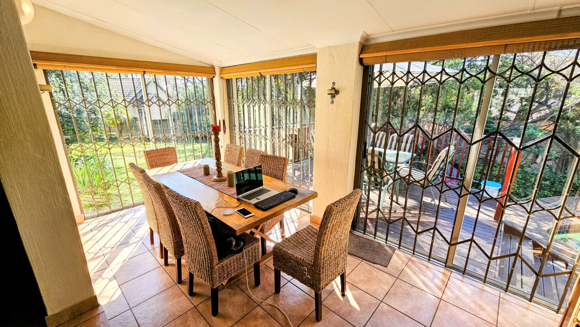Burglar bars on windows and slam-lock gates on all external doors.