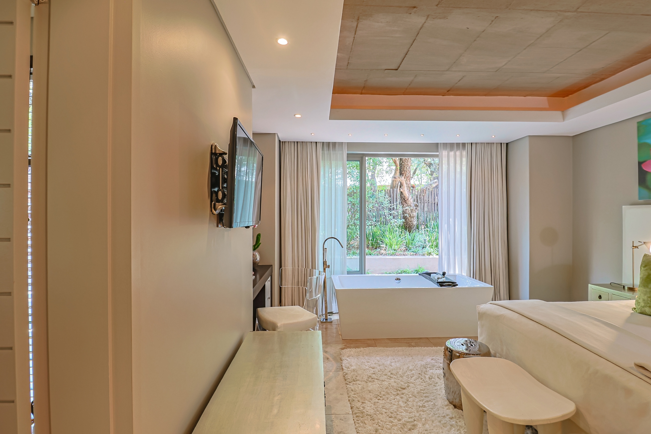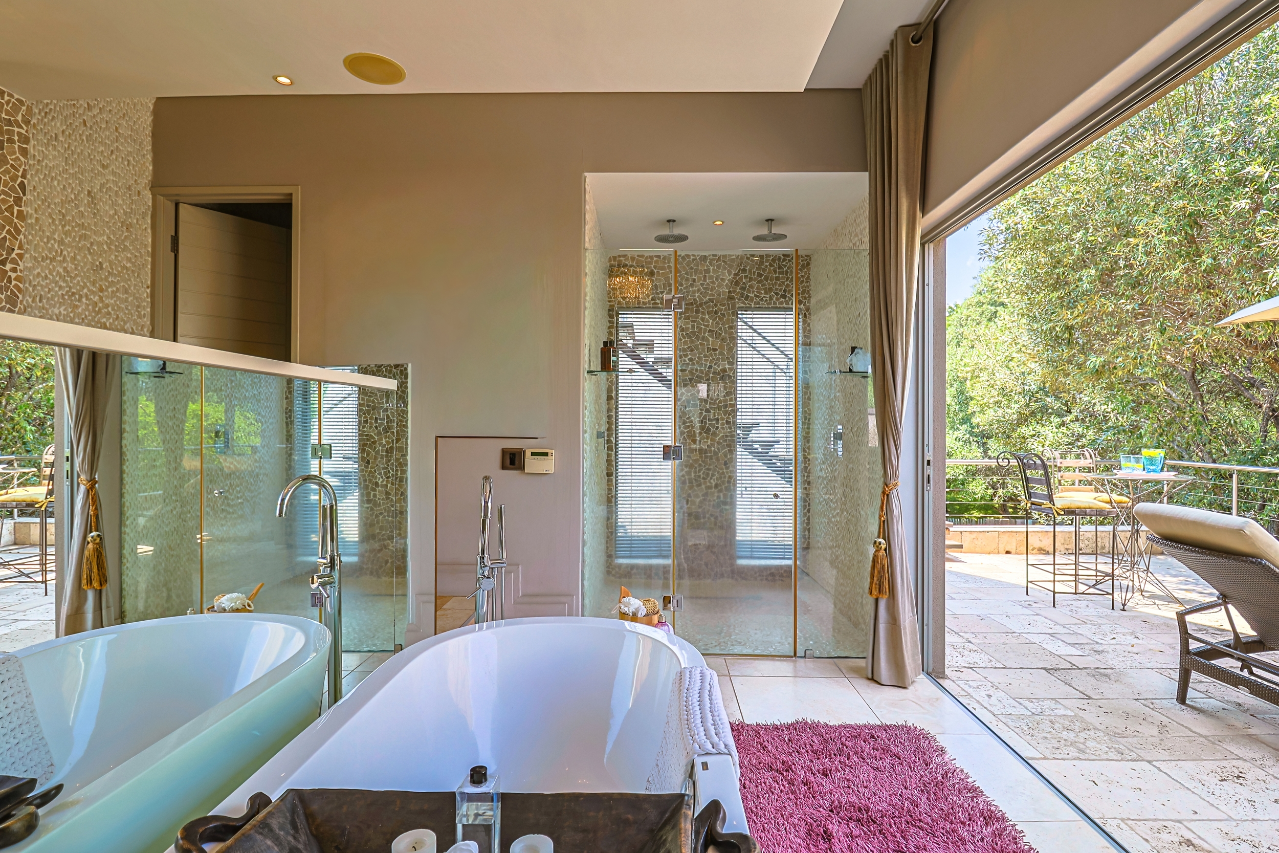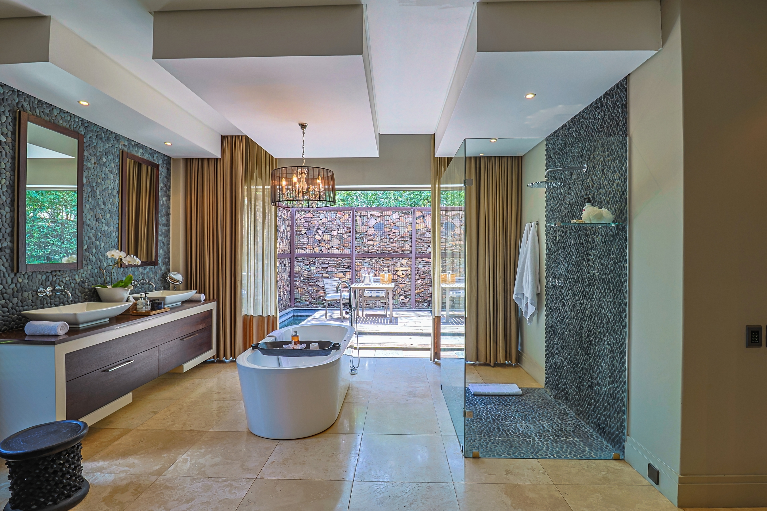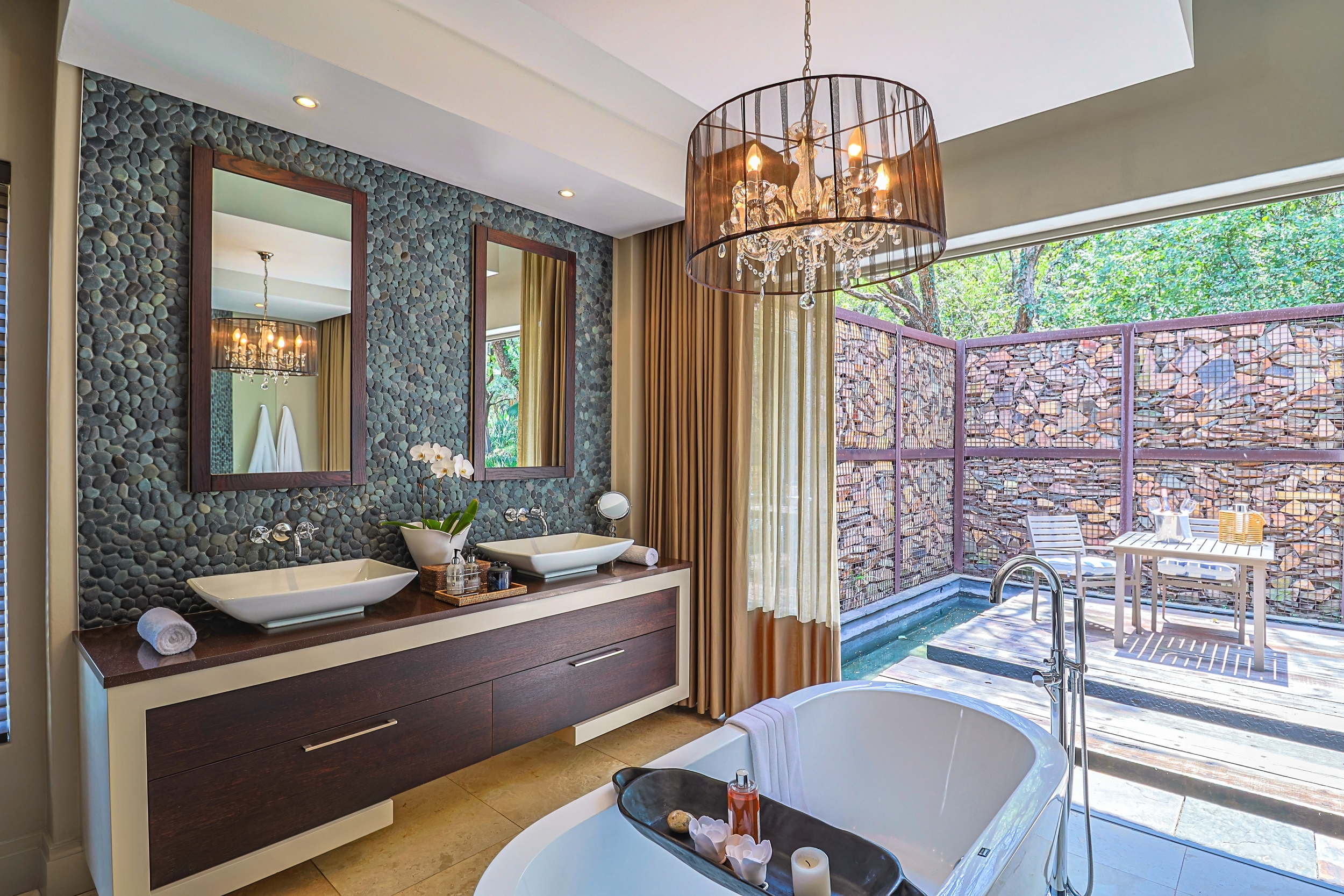 This extraordinary residence in the exclusive K'shane Lake Lodge & Eco Estate stands as a true architectural masterpiece, masterfully designed with interior vision by renowned South African designer Brian Leib. It seamlessly blends opulent African-inspired elegance with serene Balinese tranquility, creating a harmonious sanctuary that has graced the pages of prestigious publications such as OBJECT INTERNATIONAL (coffee table book) Habitat and LUXURY LIVING AROUND THE WORLD (0nly 20 homes featured worldwide, VOL 14 of the ANDREW MARTIN INTERIOR DESIGN REVIEW (coffee table book features the top 100 designers worldwide) “THE OSCARS FOR THE INTERIOR DESIGN WORLD”