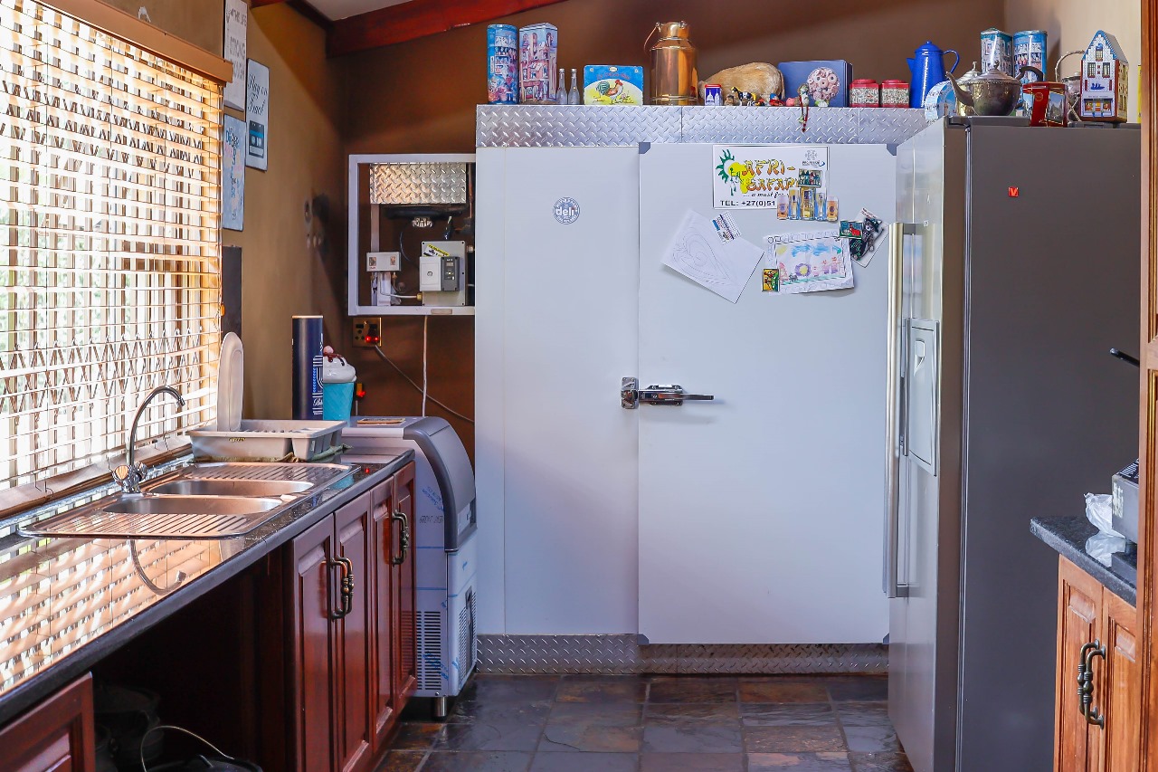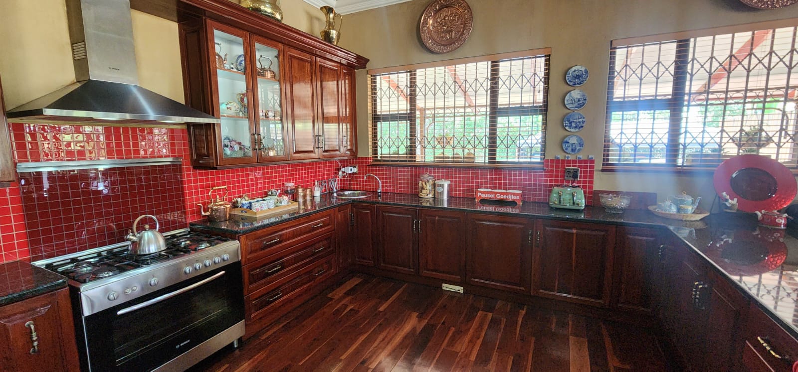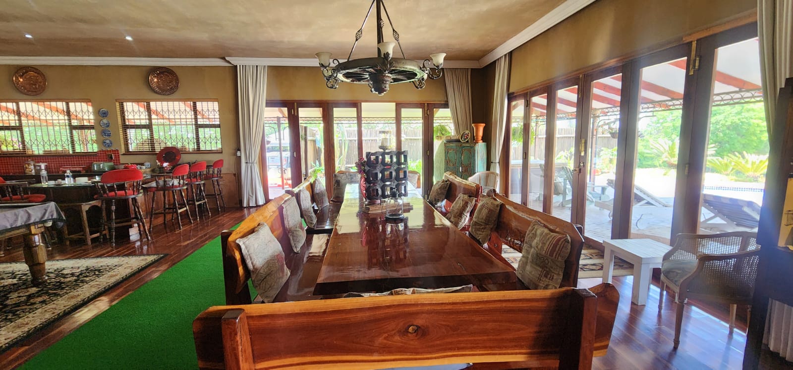 This beautifully designed main house is situated on a spacious plot, offering an open-plan layout that seamlessly blends luxury and comfort. At the heart of the home is a huge fireplace, perfect for cozy gatherings in the expansive kitchen. Enjoy a walk-in cold room and a vibrant living area that serves as a social hub, complete with a cozy TV room and an inviting dining area. All these spaces effortlessly flow onto an entertainment deck, where you’ll find a magnificent sparkling pool and a rejuvenating jacuzzi, accompanied by a well-appointed braai area—ideal for hosting friends and family. The sleeping quarters boast four spacious bedrooms, each featuring its own private bathroom. Three of these bedrooms open directly onto the deck, allowing you to wake up to breathtaking river views every morning. With air conditioning throughout the entire residence and numerous extra features included, this property is designed for both relaxation and entertainment.