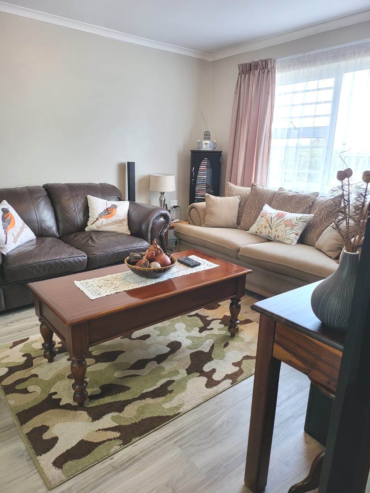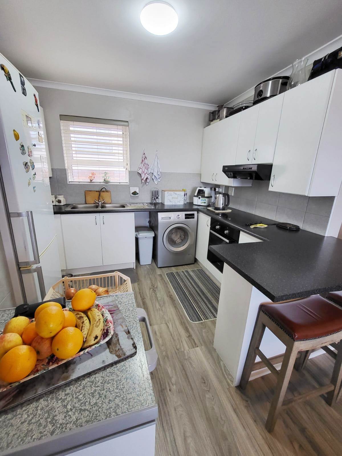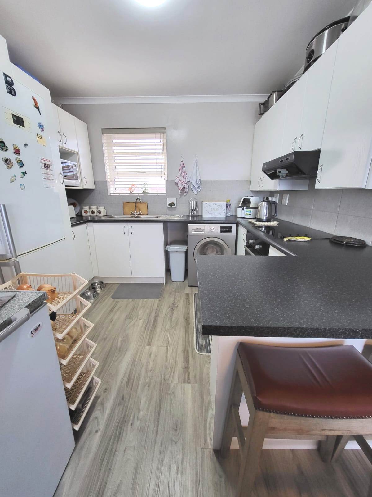 This newly renovated unit offers an open plan lounge and kitchen area. 1 Bedroom, with built-in cupboards and an en-suite bathroom with a shower and a bath. The unit also offers an additional sunroom area and a separate single garage.