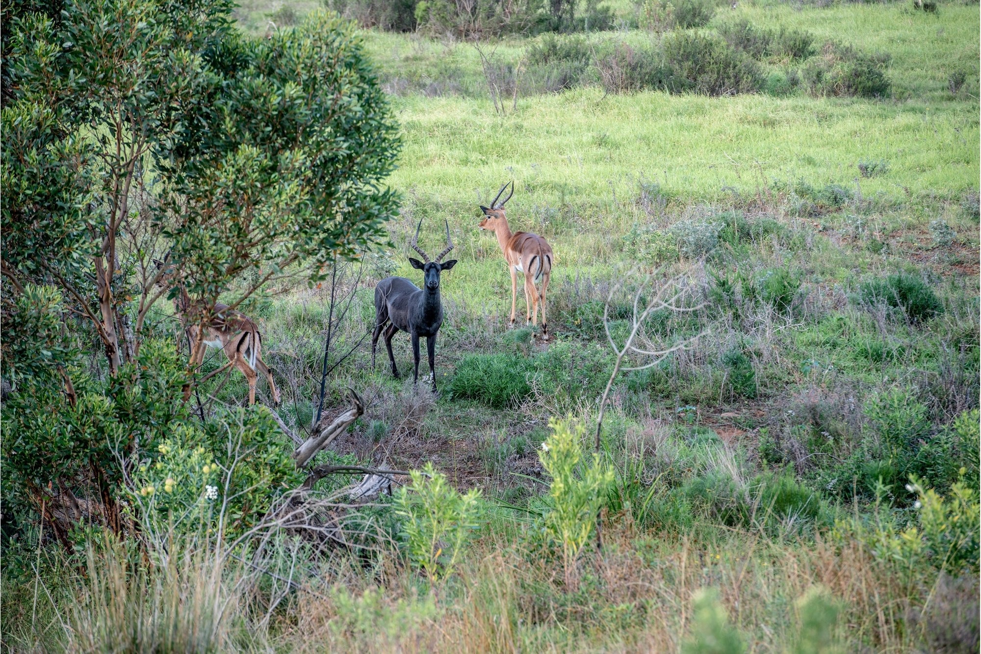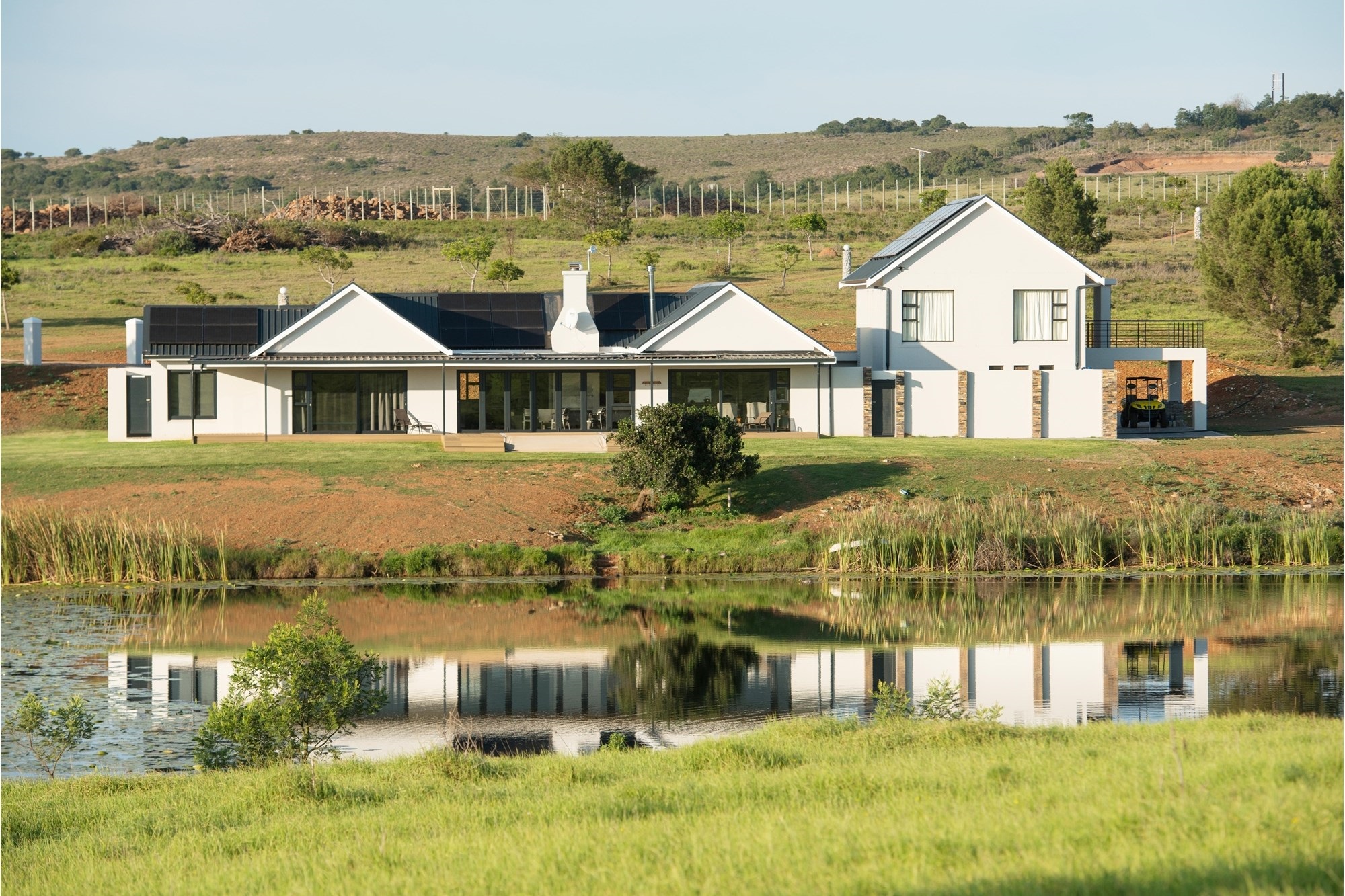 The enormous plots - many exceeding 3 000 m2 - all have paddock fencing and the entire development is in balance with nature through state-of-the-art solar energy, a natural water supply and advanced recycling systems. Kilometres of hiking and mountain biking trails, bird watching hides, indigenous forest and Fynbos, and free roaming wildlife e.g. Nyala, Impala, Bushbuck, Zebra, Sable, Golden Wildebeest, Blue Duiker, and Cape Grysbuck complement the natural surroundings so carefully preserved in the Twin Valley Nature Estate.