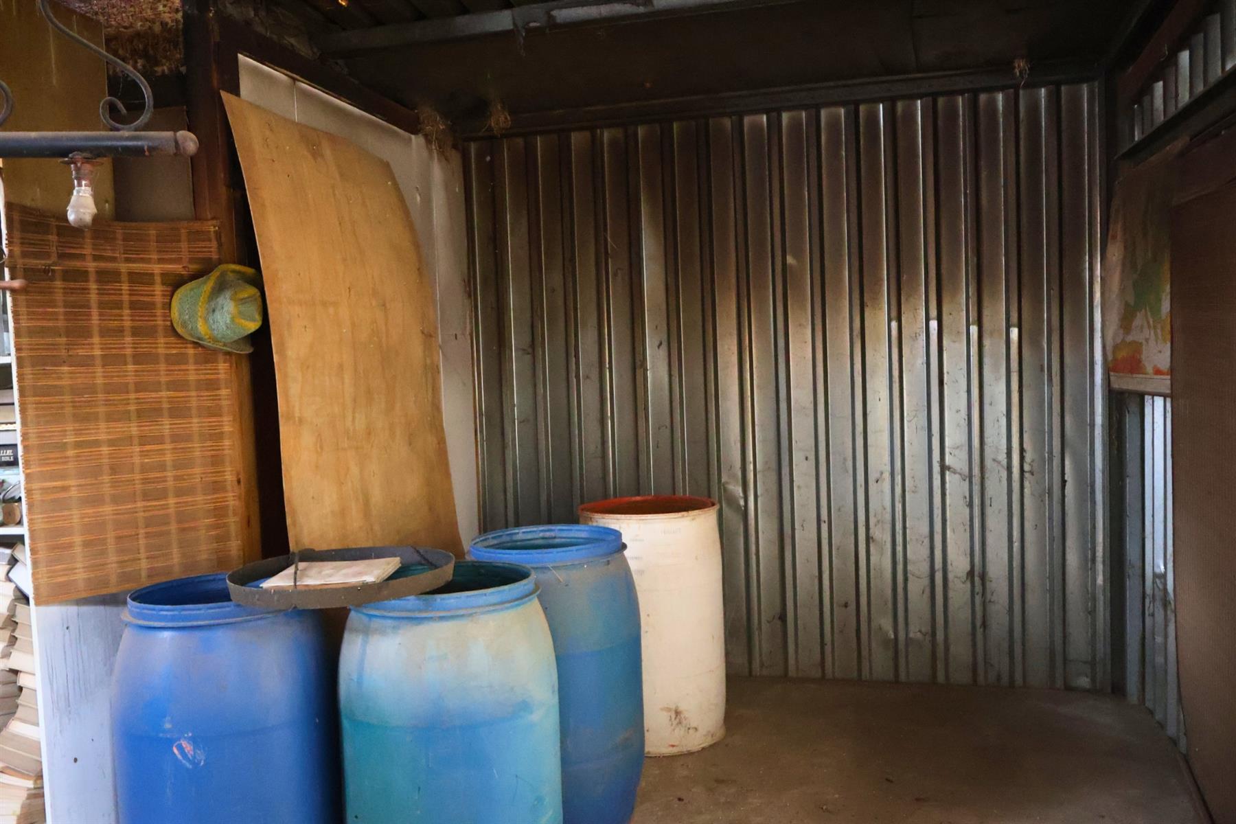 Two separate gated entrances enhance flexibility and privacy, while an external structure currently used for storage or workshop space adds further utility.