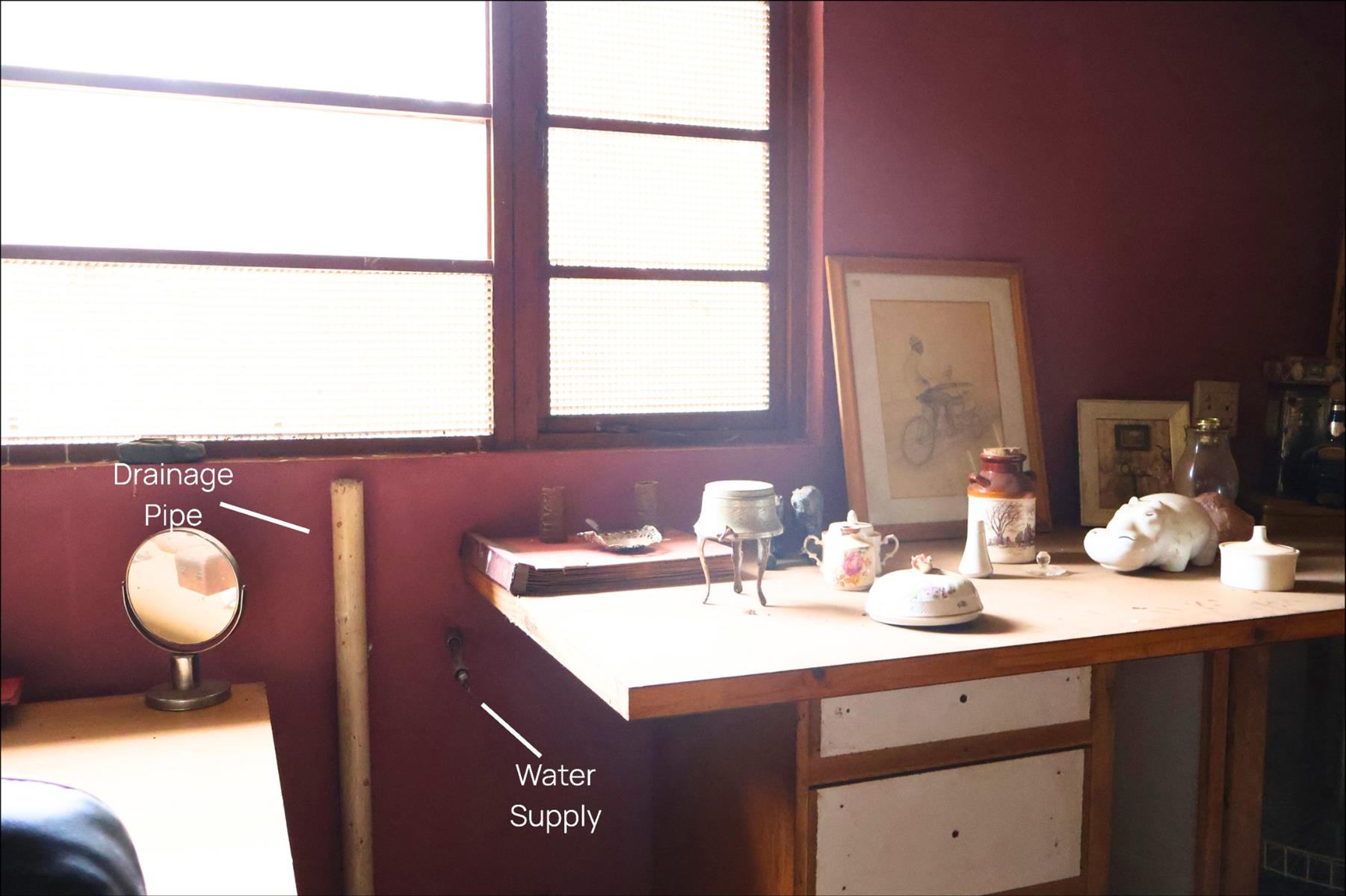 There is currently no fitted kitchen in place, reflecting the owner’s long-time bachelor lifestyle. Plumbing and drainage points are already in place, allowing a buyer to design and install a kitchen that suits their way of life.
