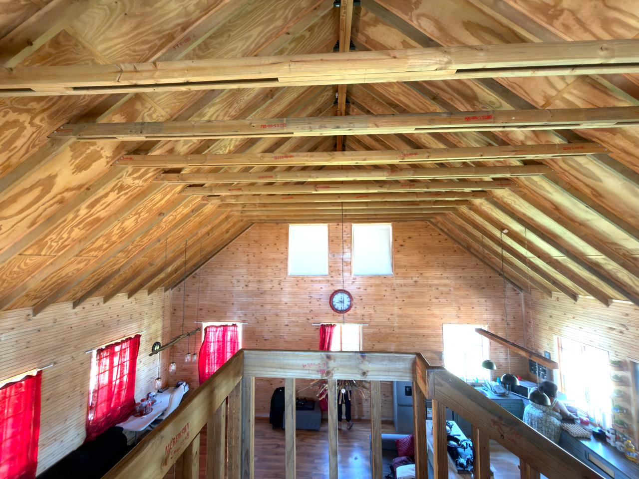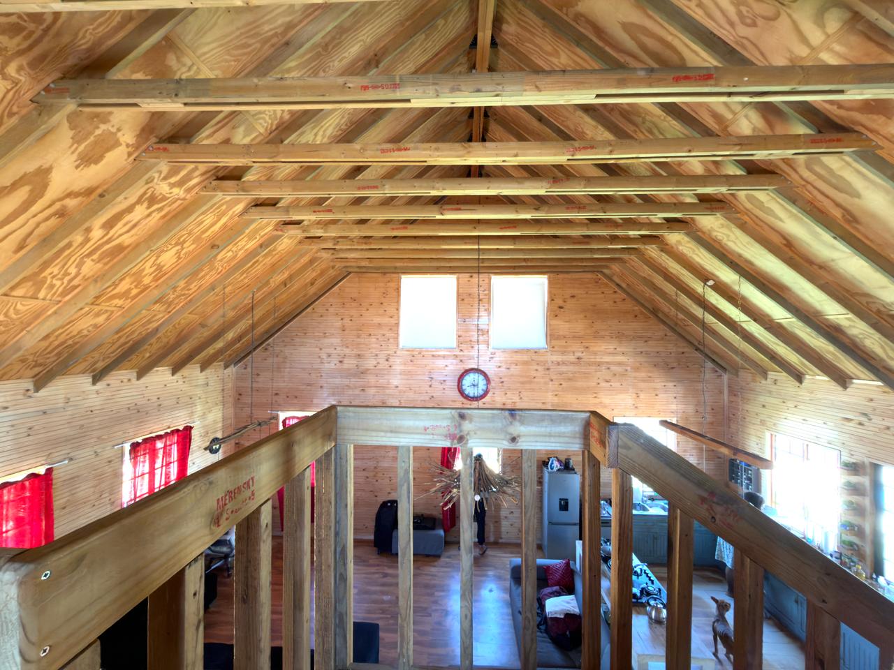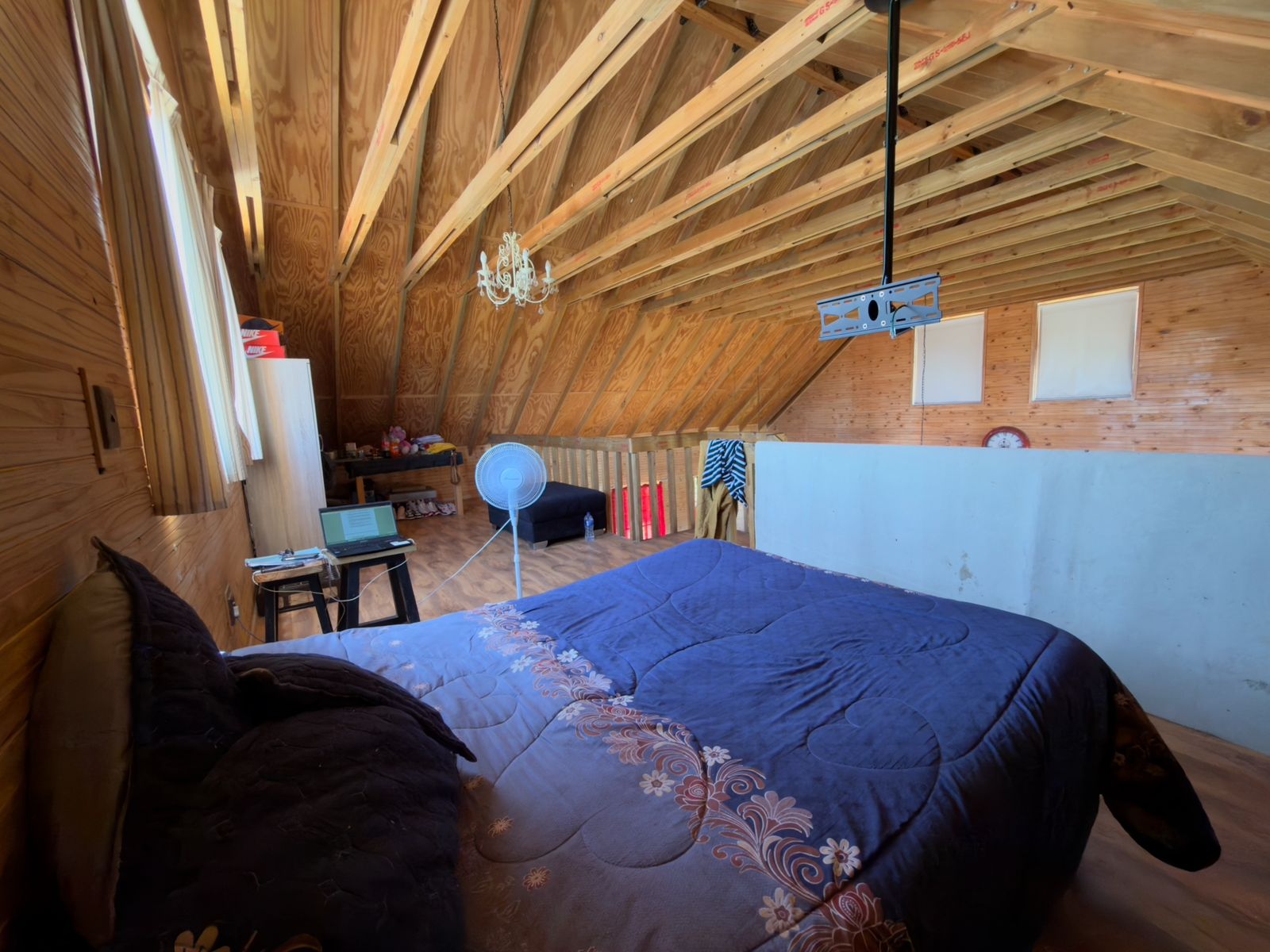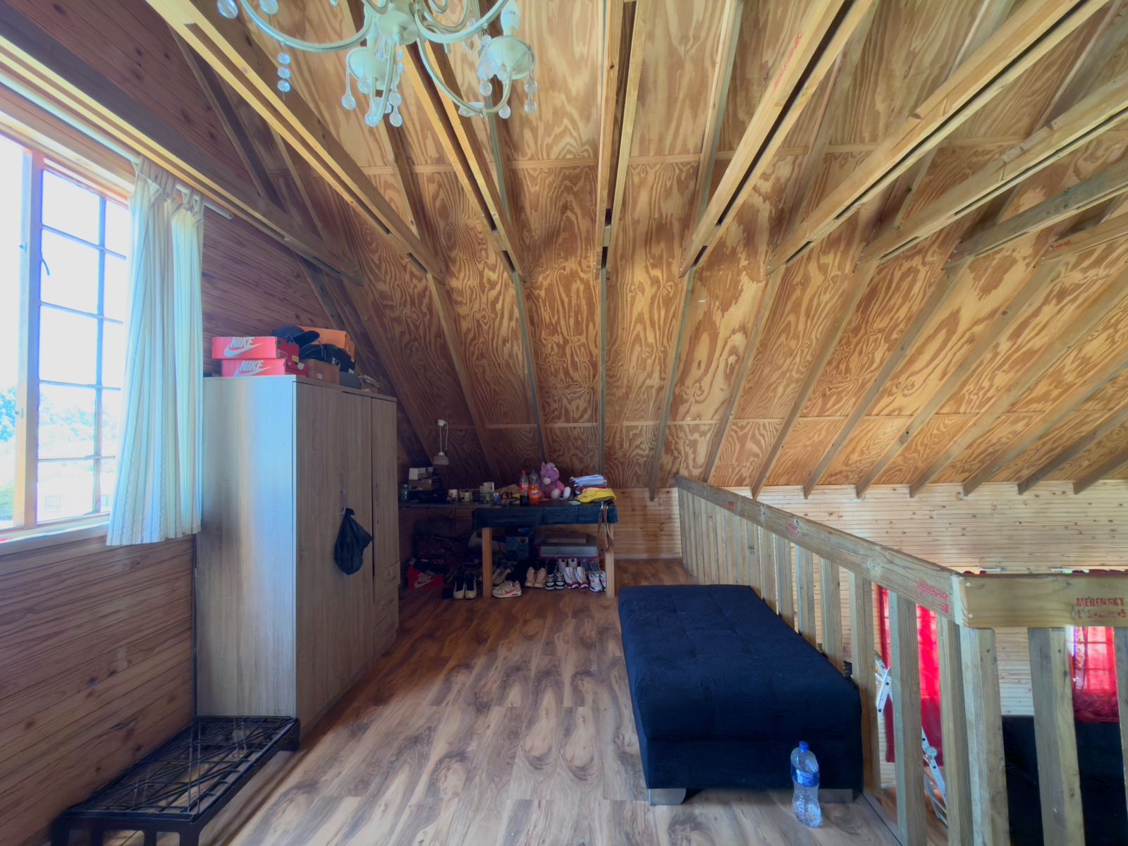 Step inside to be wowed by an 8m double-volume, exposed-beam, mezzanine-style living space. The open-plan Family Room, Dining Room, and Kitchen create a grand American-style barn vibe, perfect for entertaining. The ground floor features two cozy bedrooms and a well-appointed bathroom. Ascend the stairs to find a spacious Main Bedroom on the left and a versatile Office Space on the right.