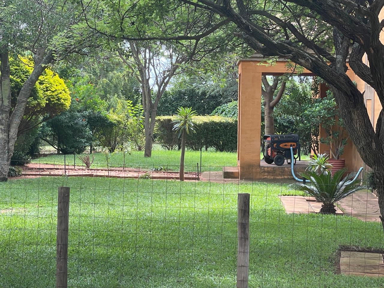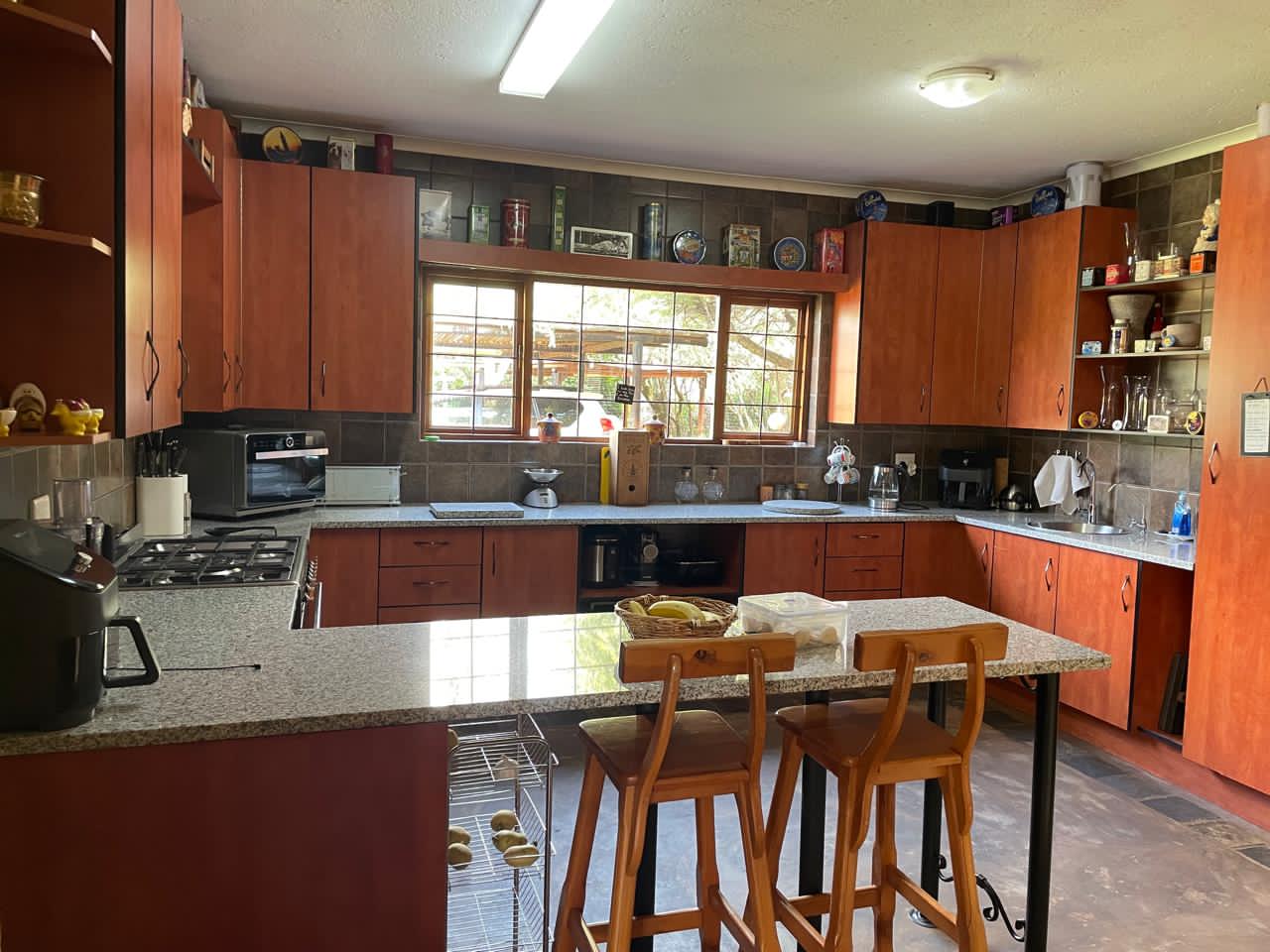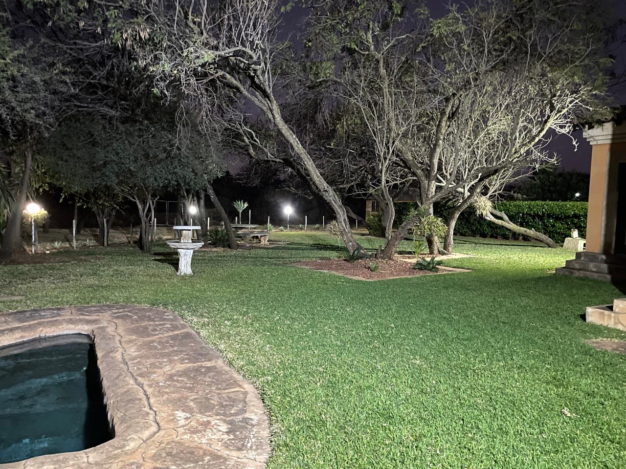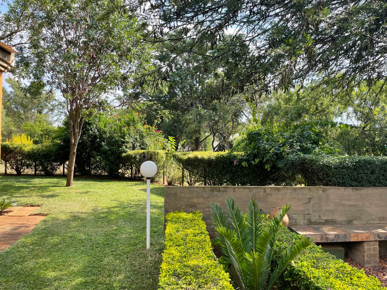 Outside, the property showcases a beautifully maintained garden, two double carports, a braai area with a pizza oven, a sparkling pool, a storeroom, and separate staff quarters with private bathroom.