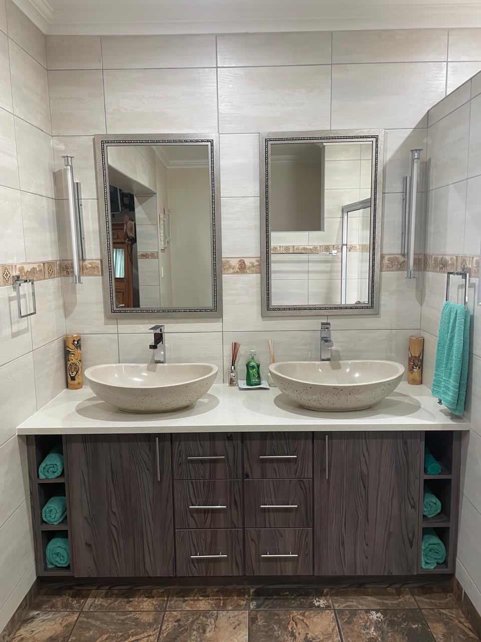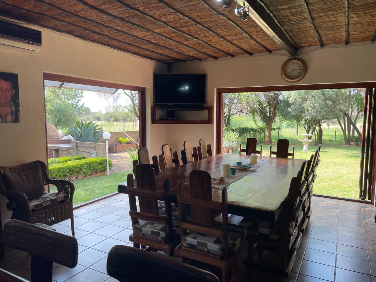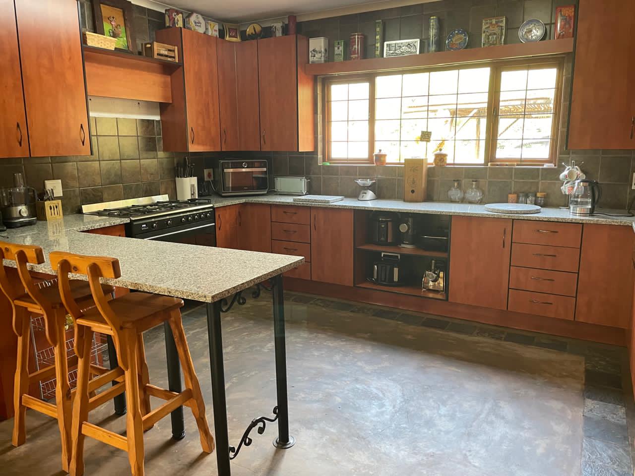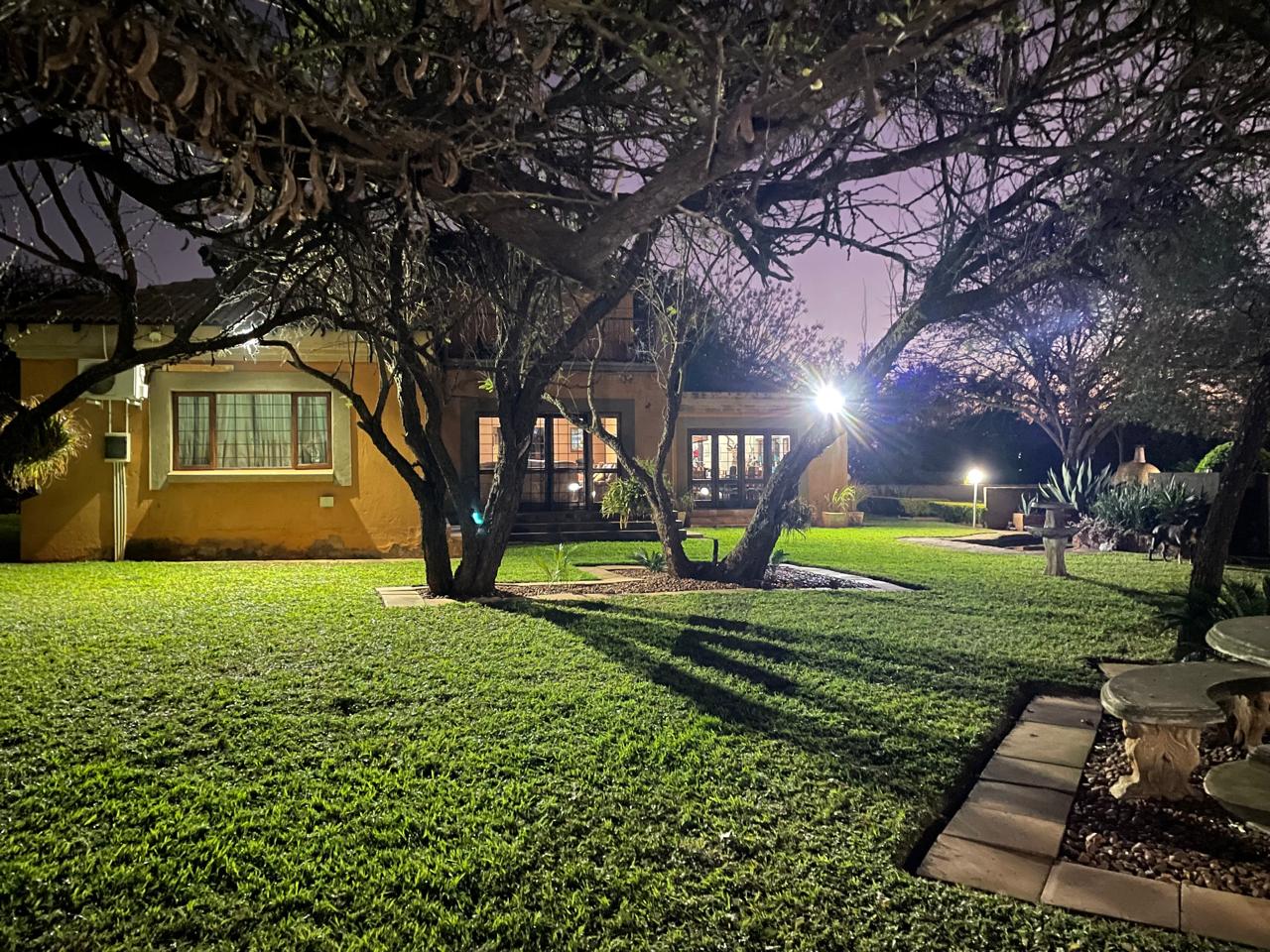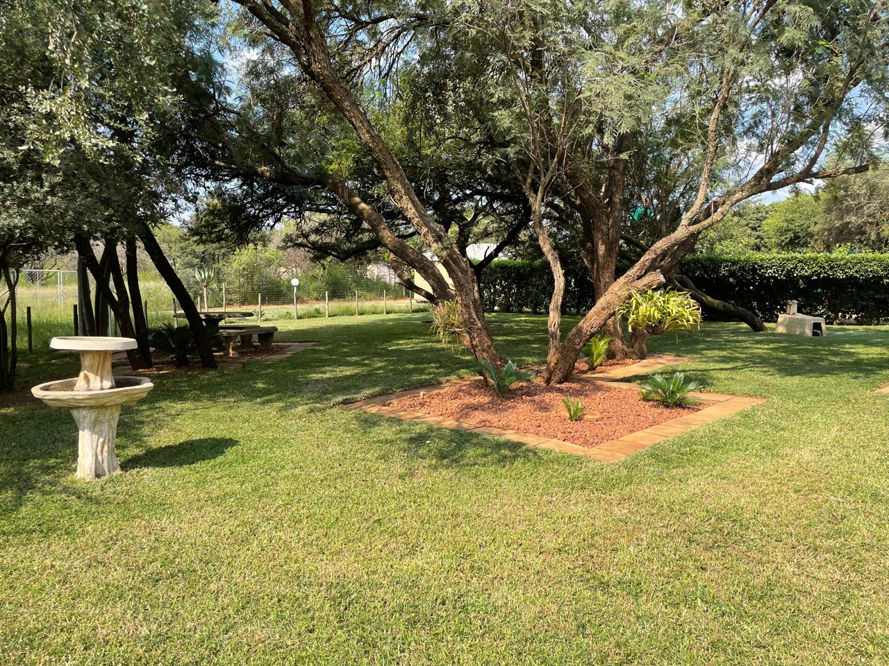 Outside, the property showcases a beautifully maintained garden, two double carports, a braai area with a pizza oven, a sparkling pool, a storeroom, and separate staff quarters with private bathroom.