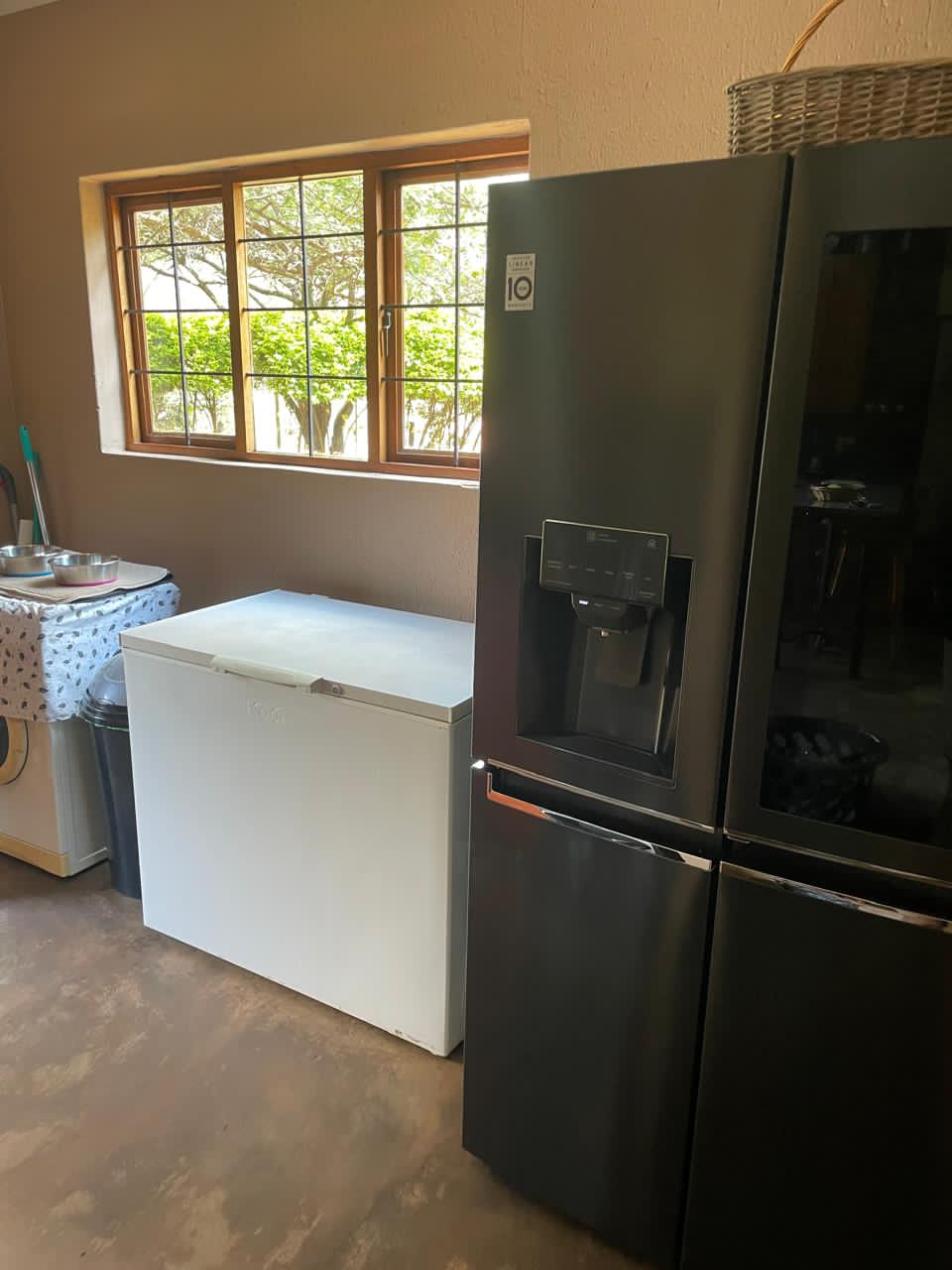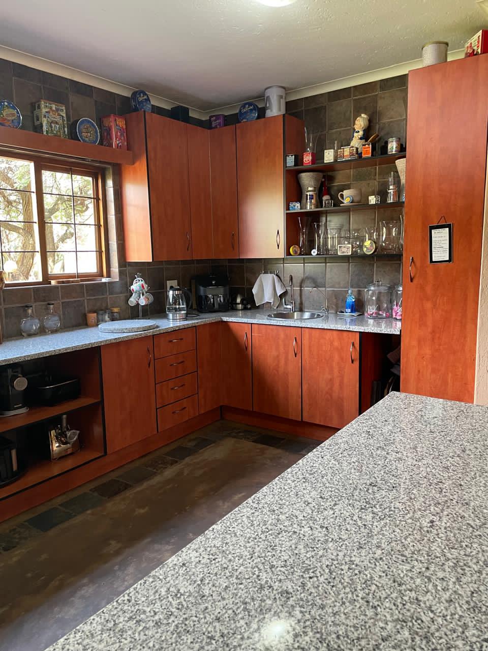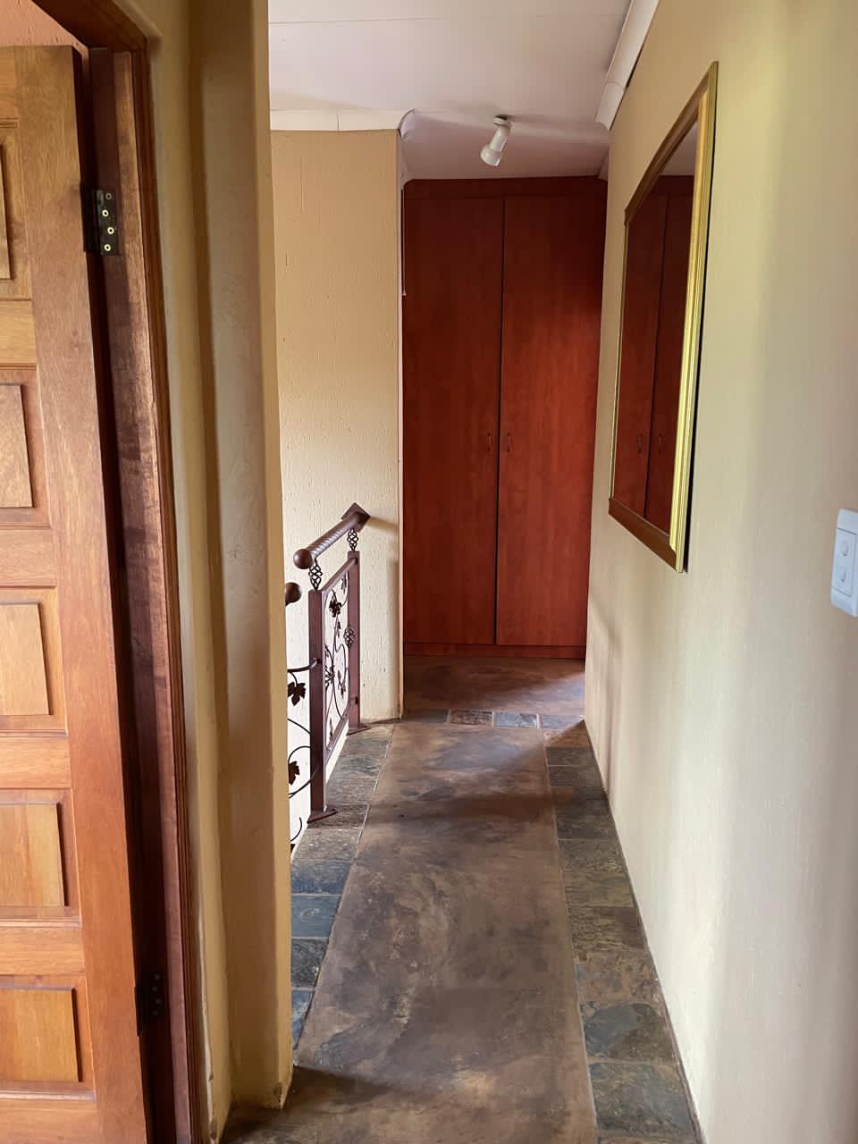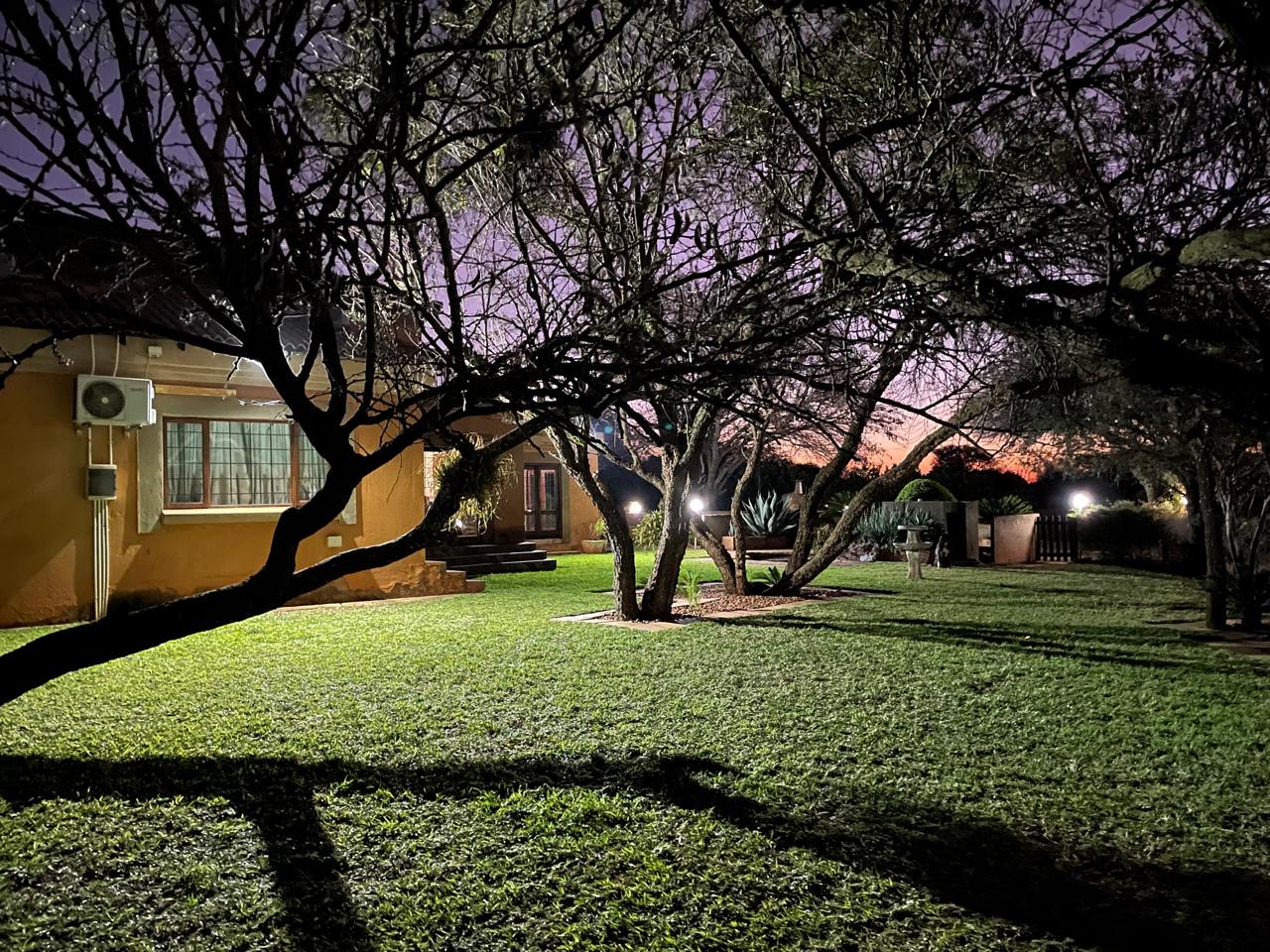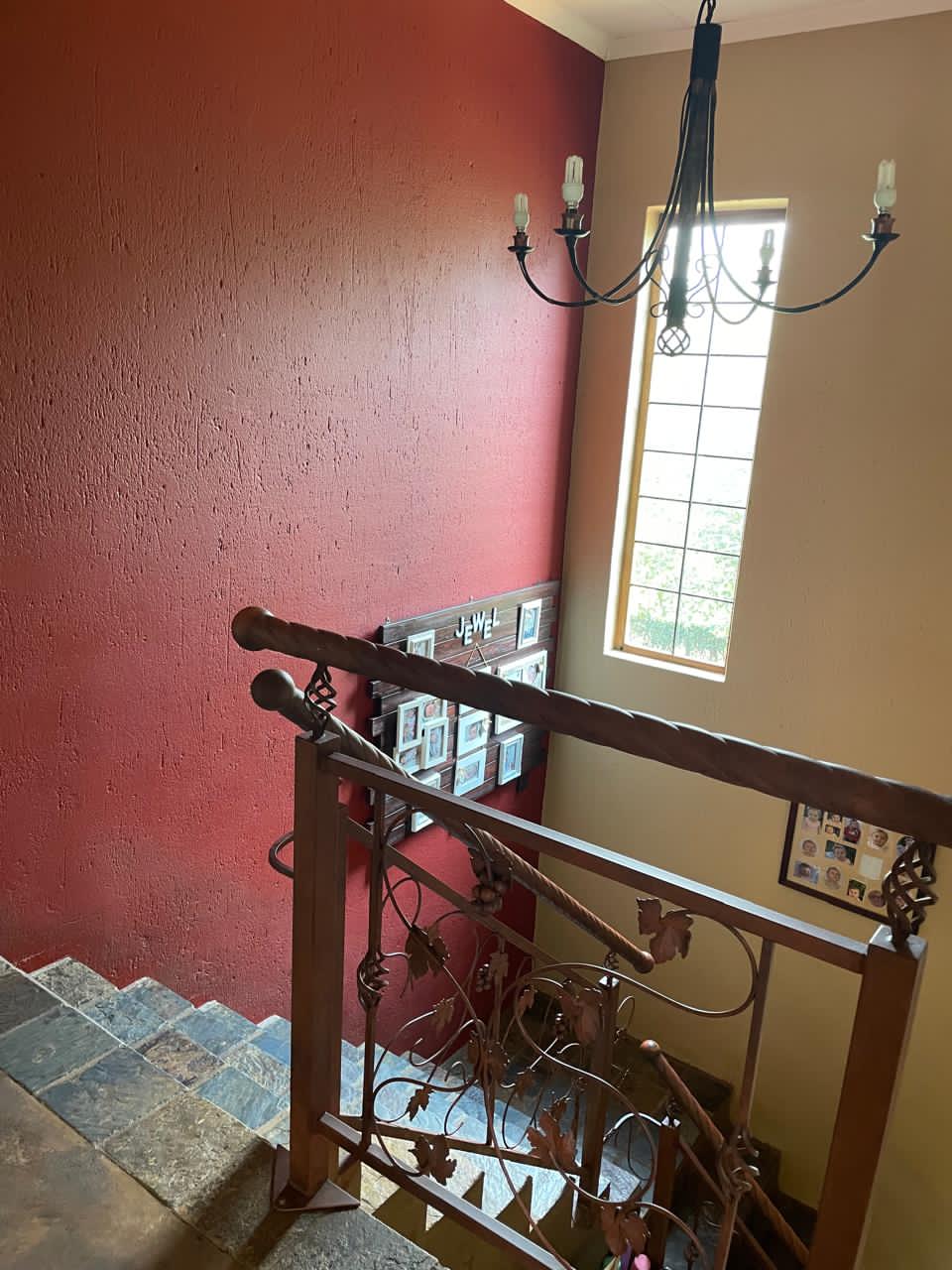 Outside, the property showcases a beautifully maintained garden, two double carports, a braai area with a pizza oven, a sparkling pool, a storeroom, and separate staff quarters with private bathroom.