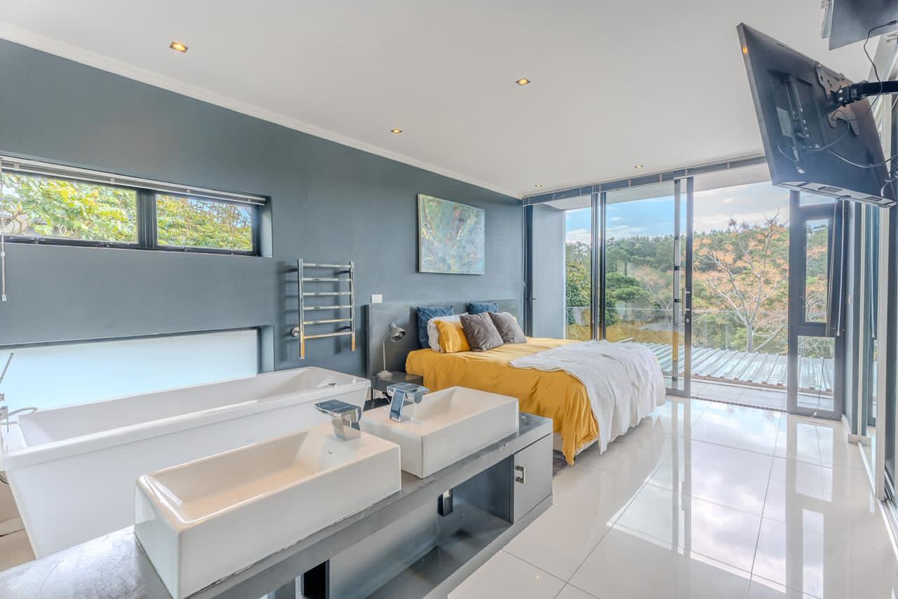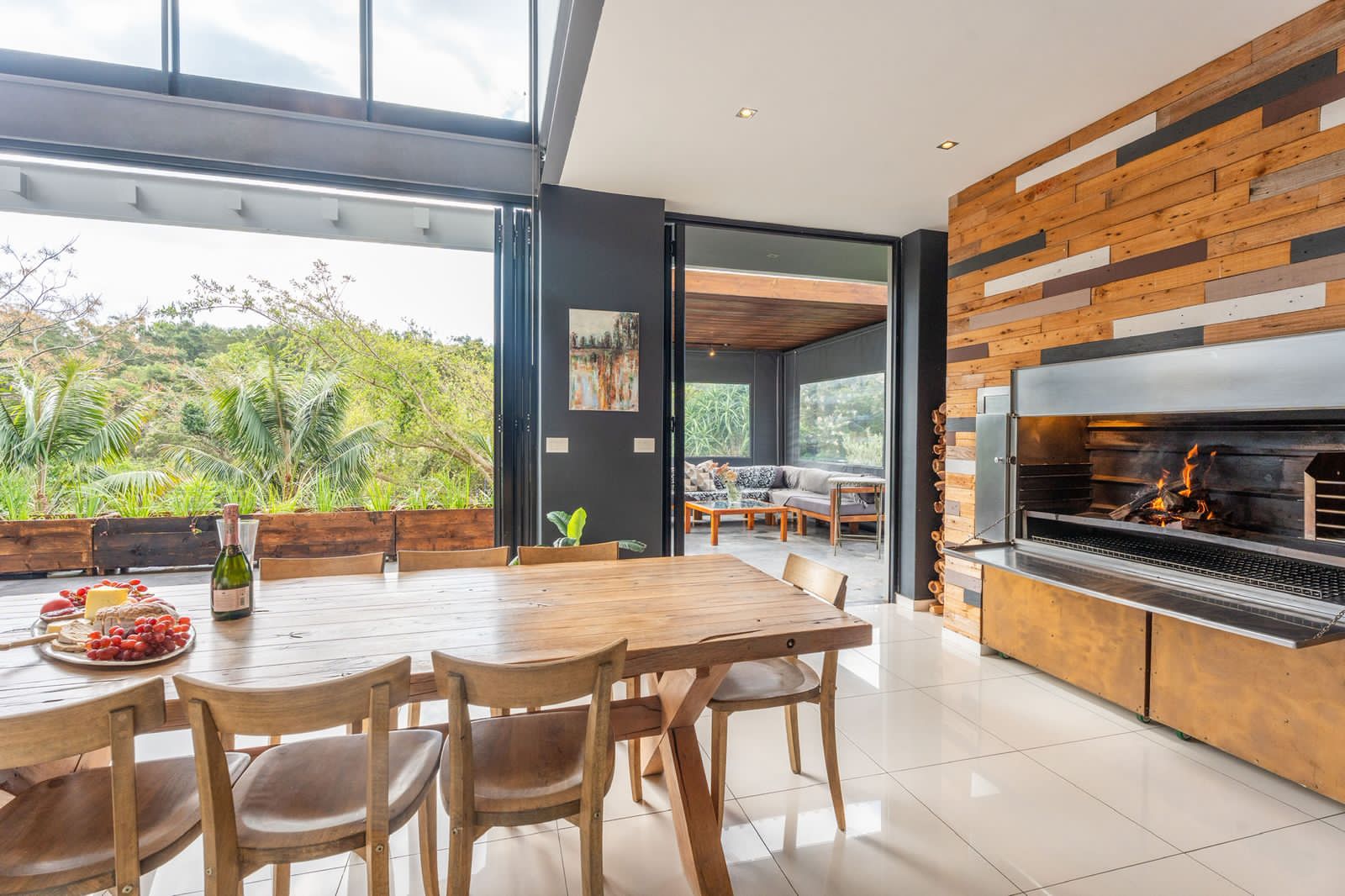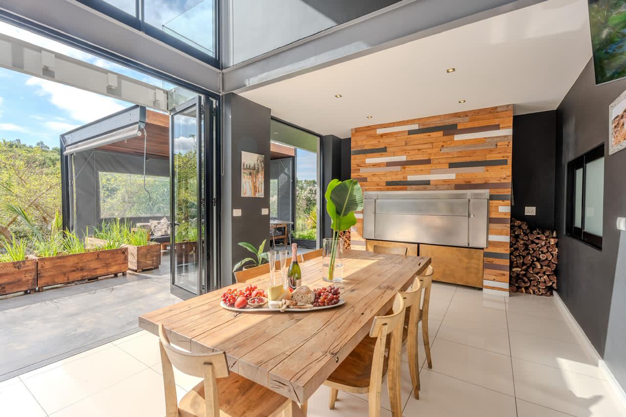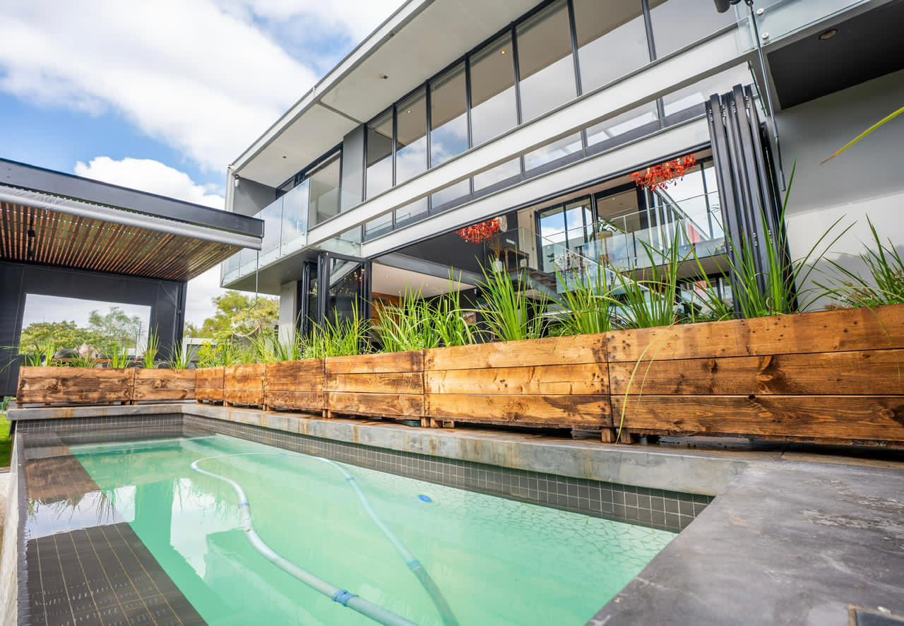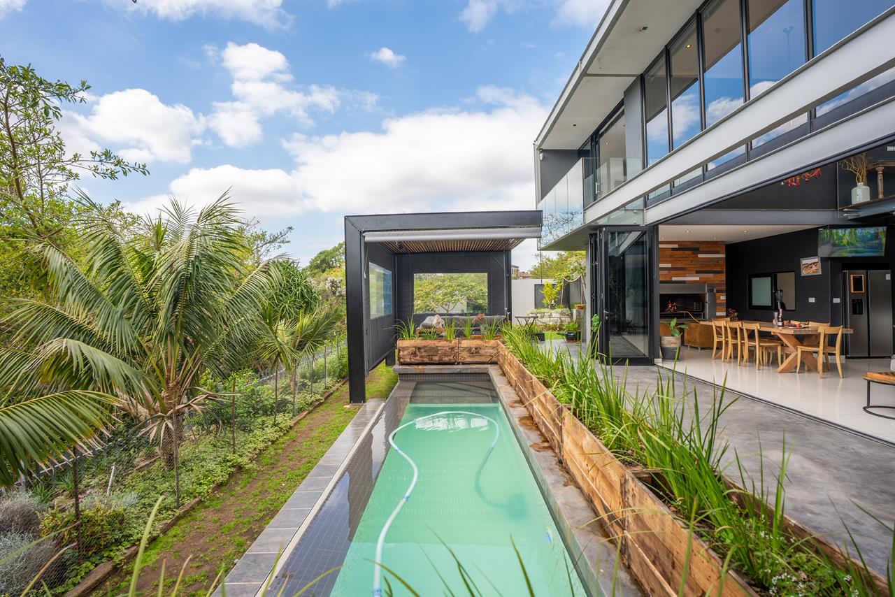 Outdoors, an indigenous landscaped garden surrounds an infinity pool, offering a private sanctuary immersed in nature.