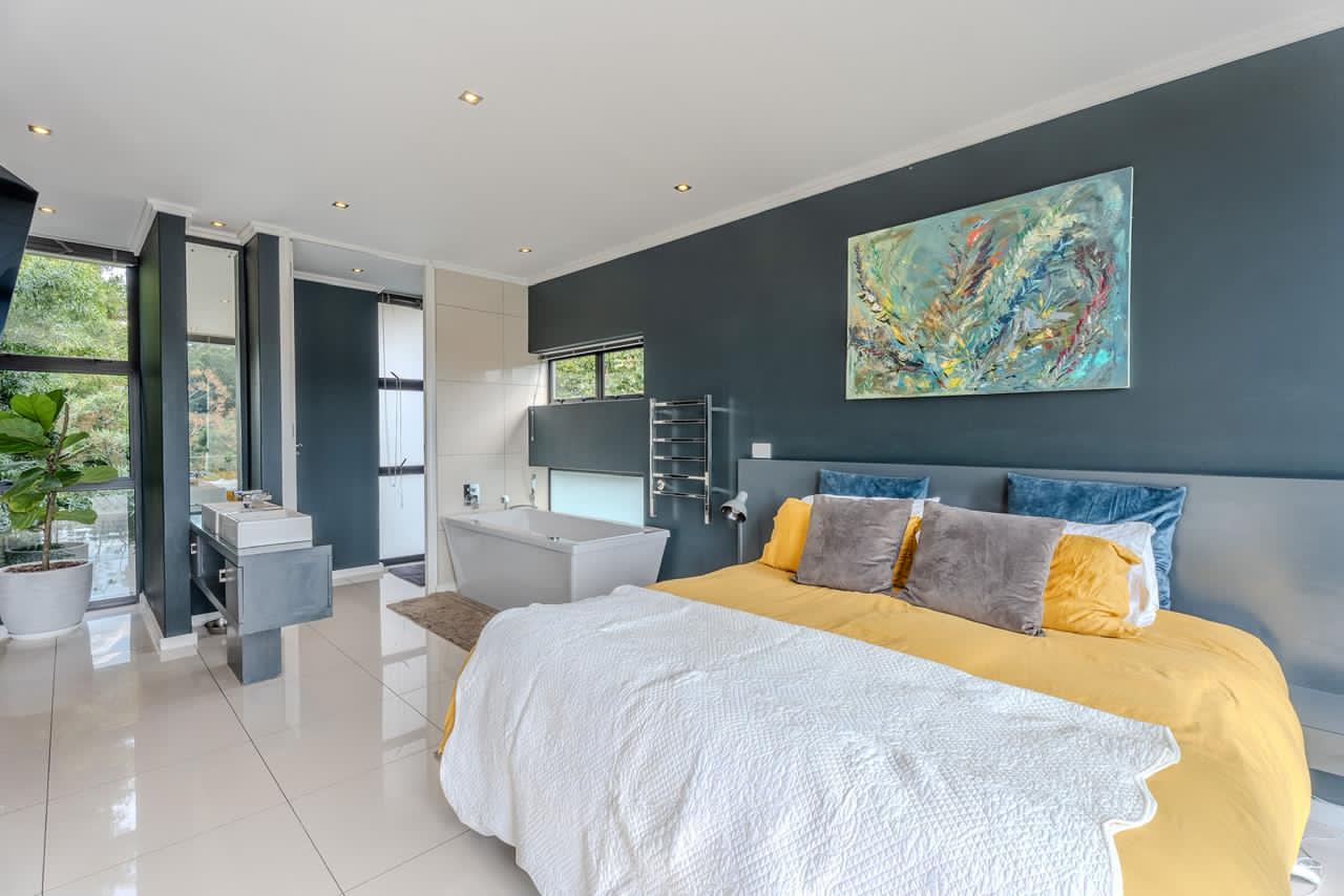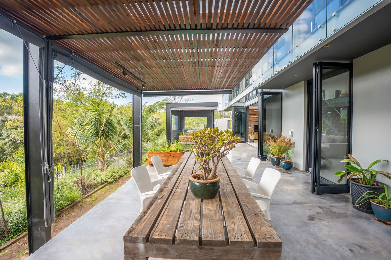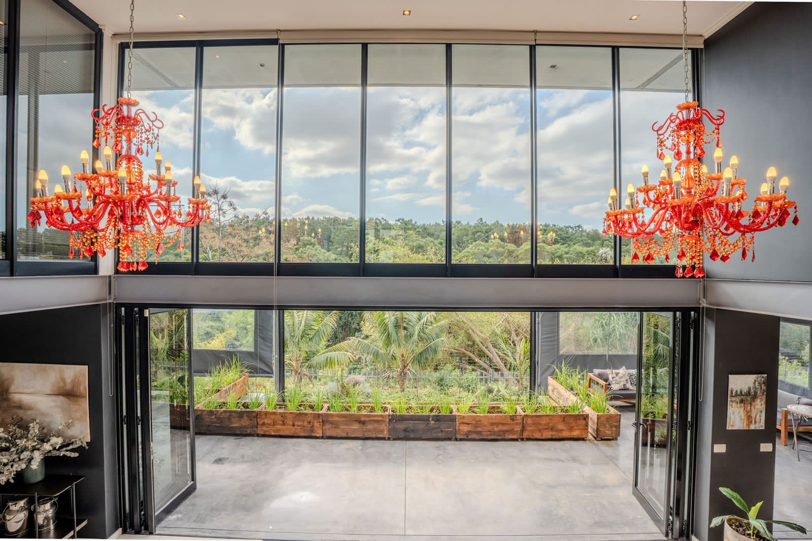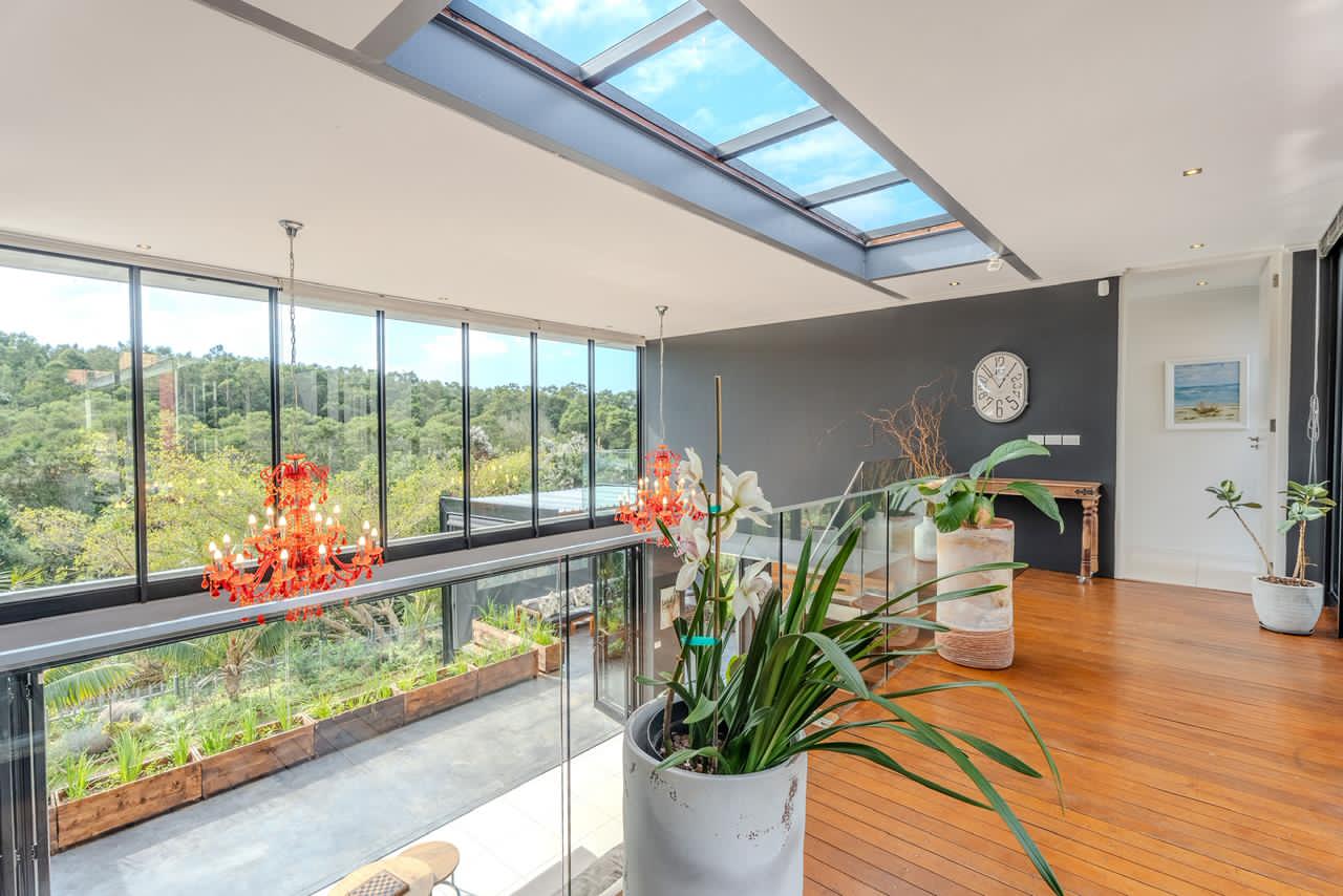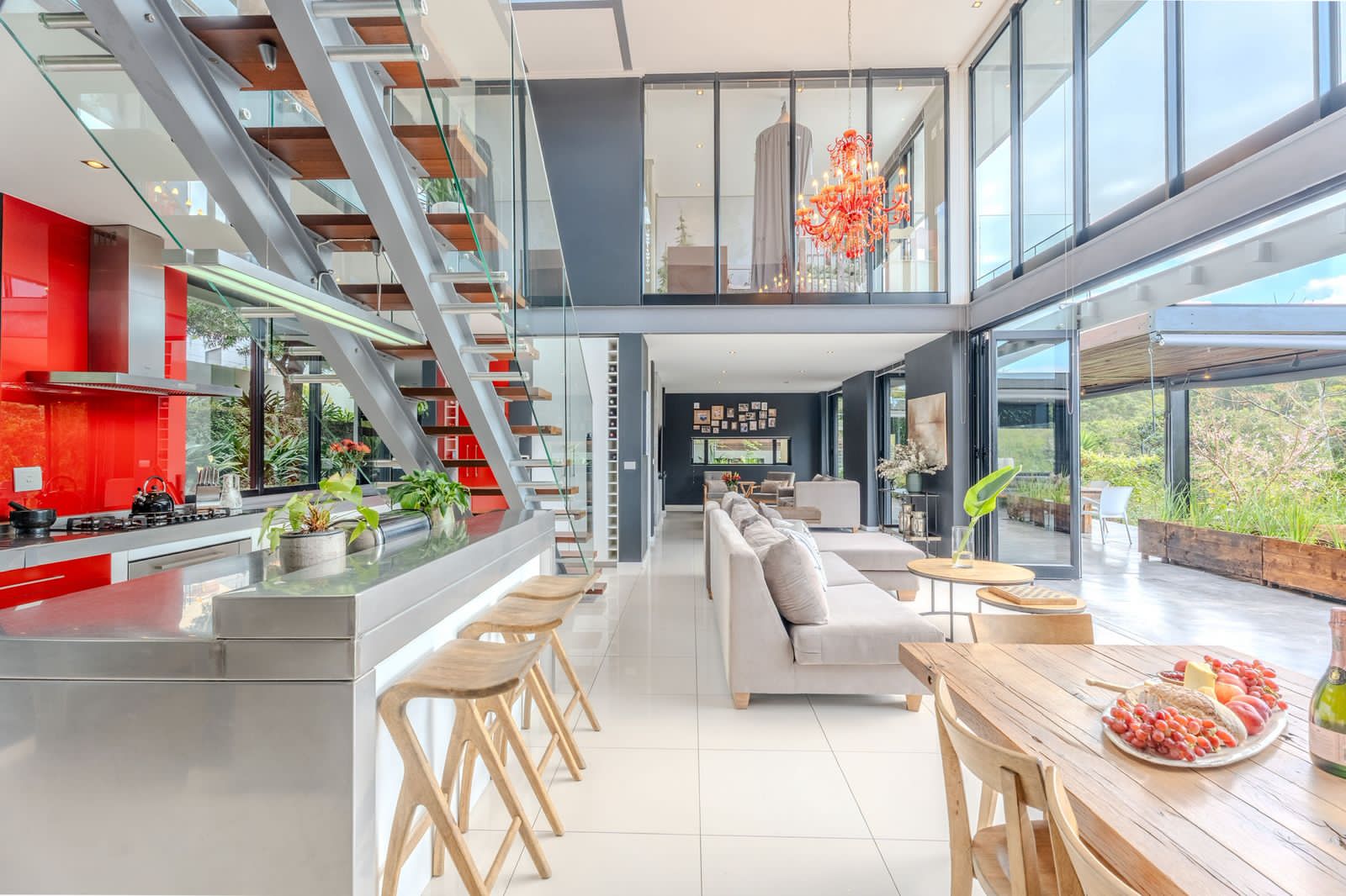 Outdoors, an indigenous landscaped garden surrounds an infinity pool, offering a private sanctuary immersed in nature.