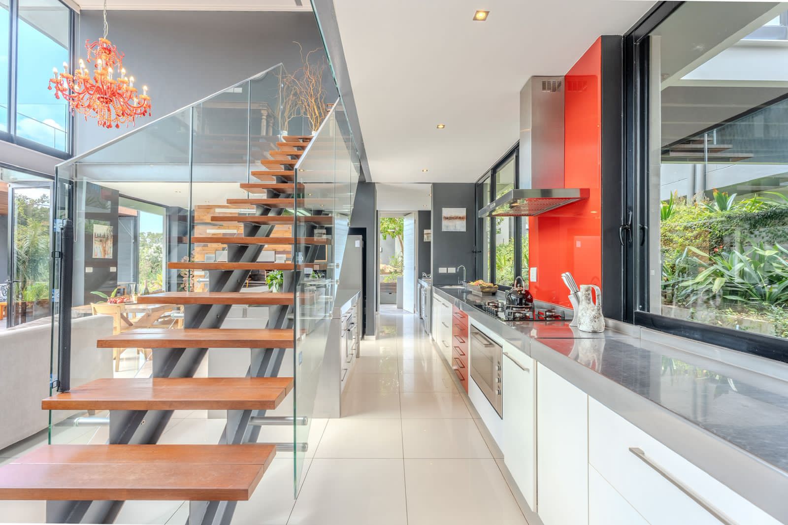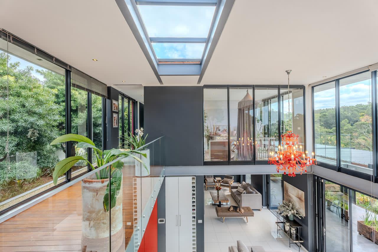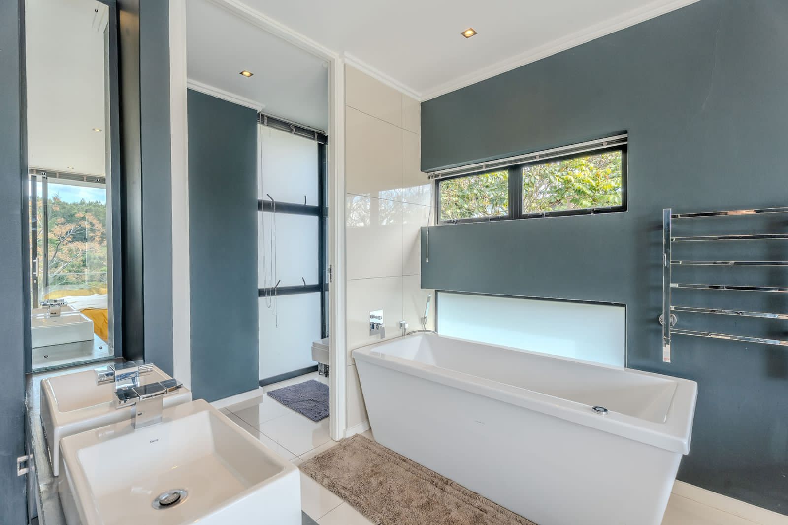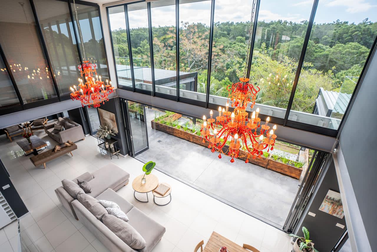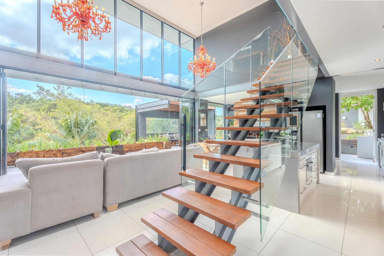 Outdoors, an indigenous landscaped garden surrounds an infinity pool, offering a private sanctuary immersed in nature.