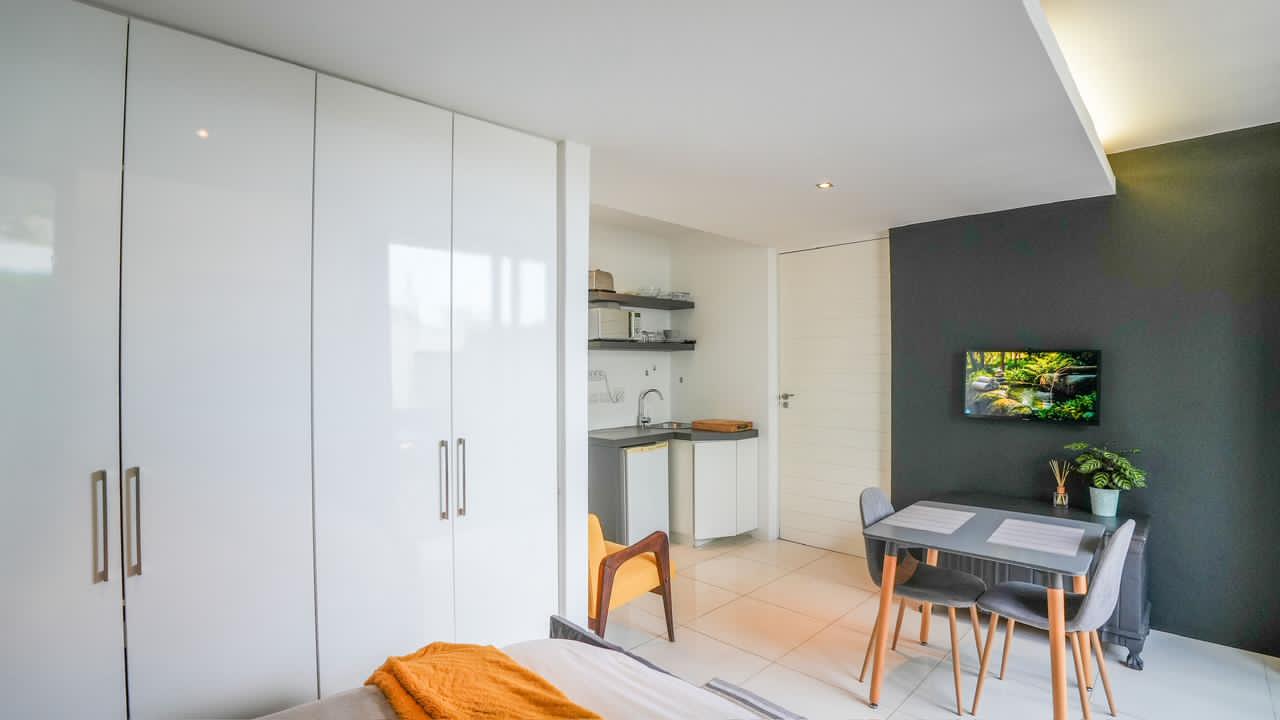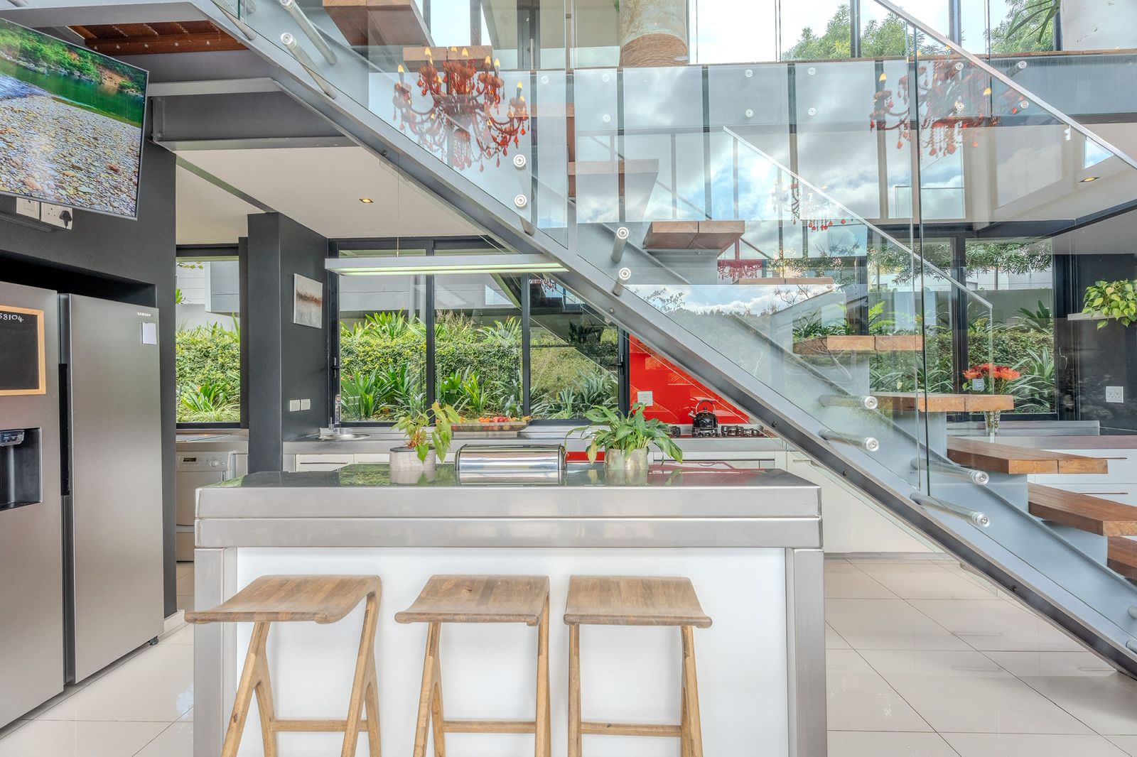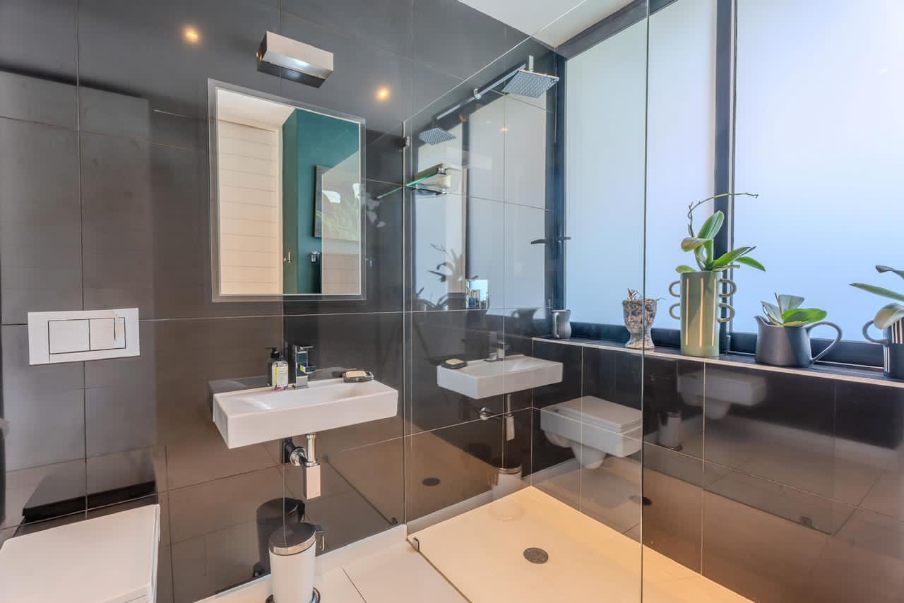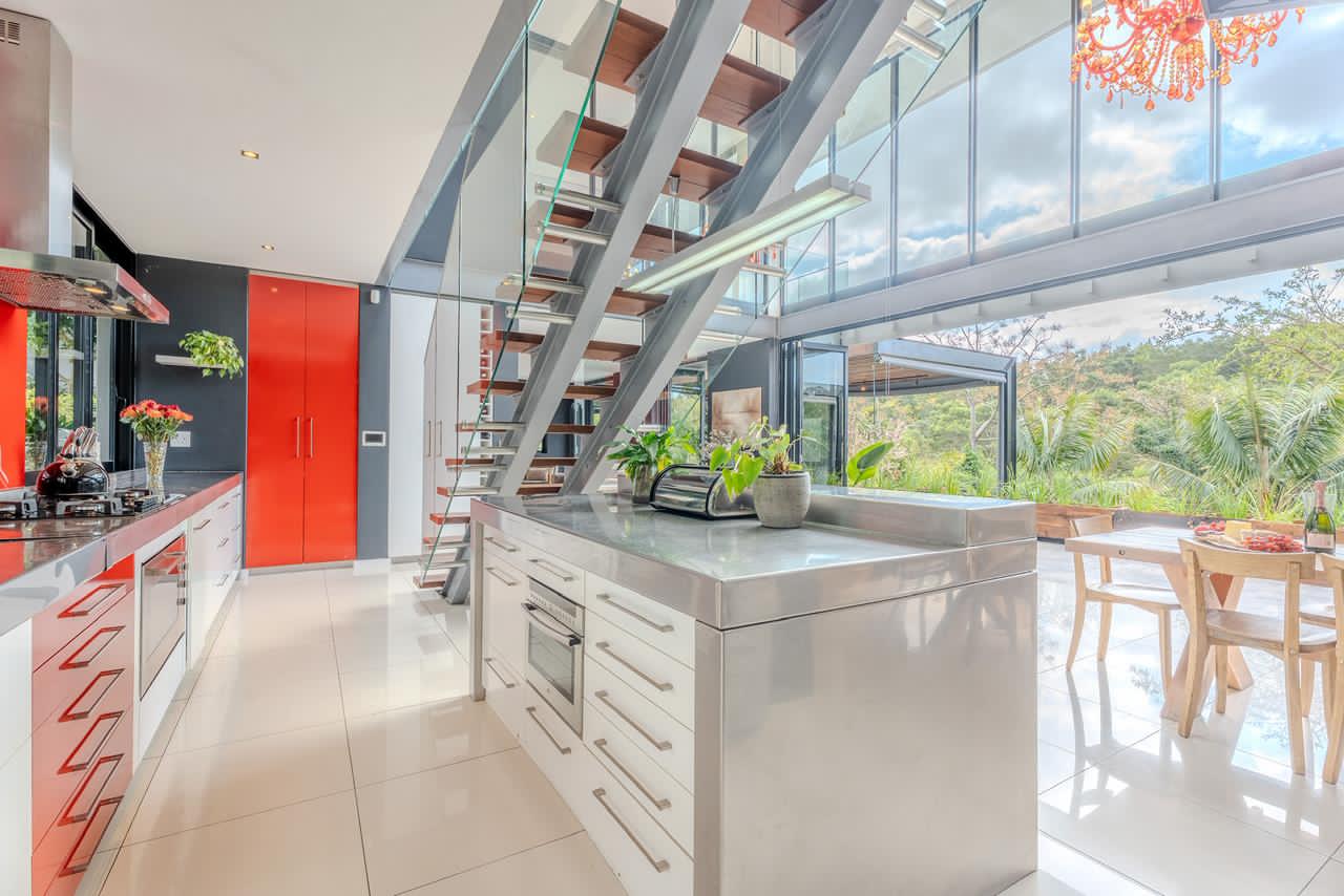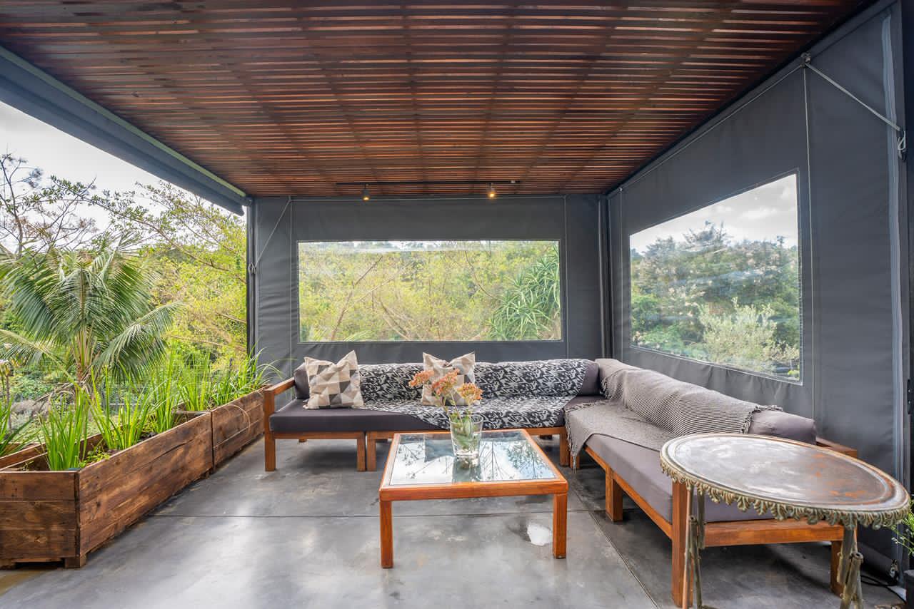 Outdoors, an indigenous landscaped garden surrounds an infinity pool, offering a private sanctuary immersed in nature.