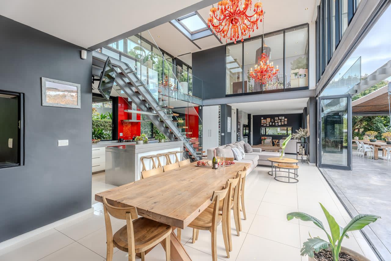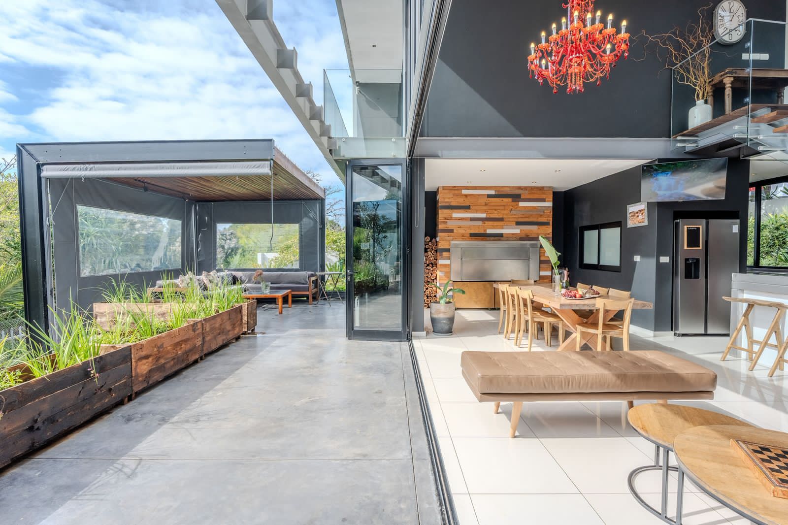 Positioned high above the Baakens Valley in the exclusive Kamma Creek enclave, this architecturally designed home offers panoramic views, refined aesthetics, and secure contemporary living. Expansive glass and clean modern lines create seamless indoor–outdoor flow, enhanced by a partially enclosable terrace and indoor braai—ideal for year-round entertaining.