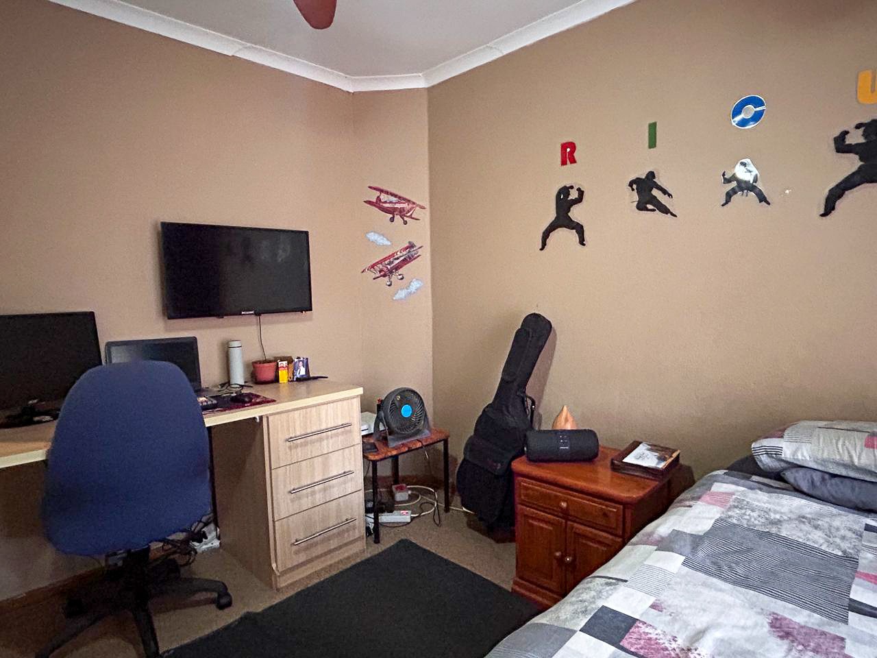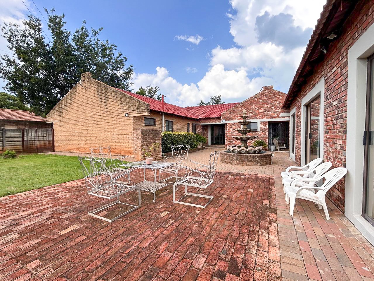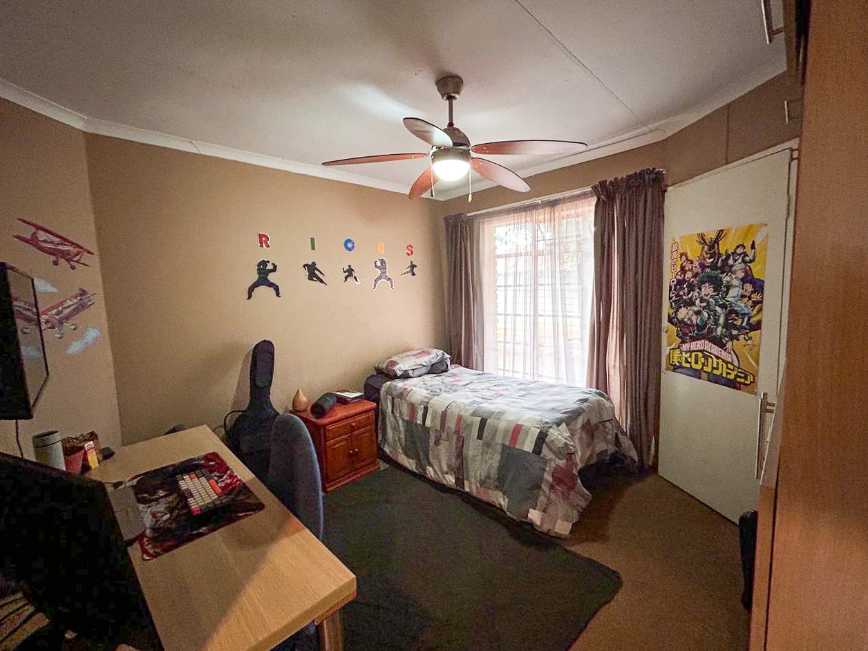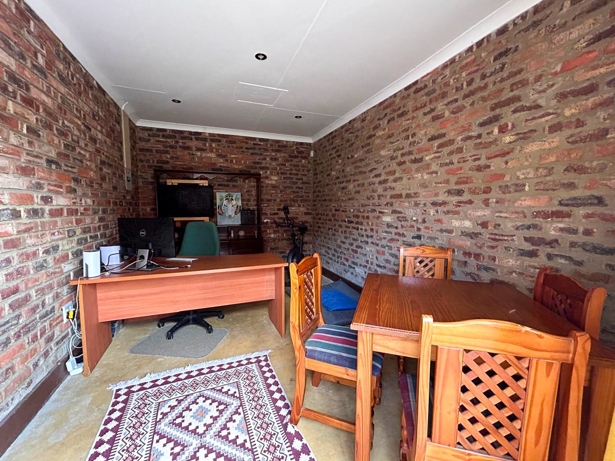 The property further boasts an expansive back garden, complete with a large open-plan braai room featuring a built-in braai, perfect for hosting and entertaining. Adjacent to the braai room is a versatile space currently utilized as a study or office. The back garden also benefits from a separate entrance from the road behind the property, enhancing accessibility and future development potential.