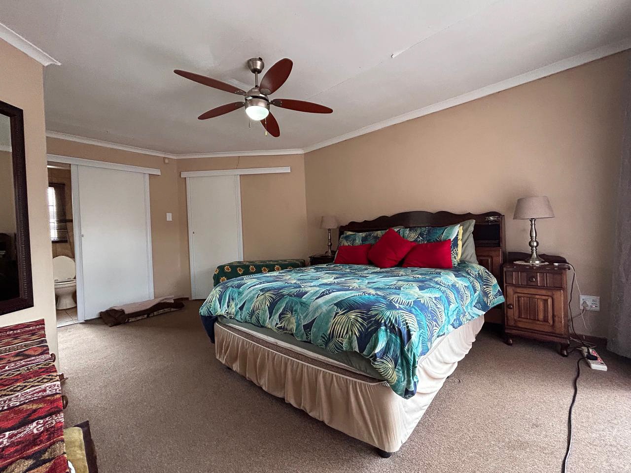 An additional fourth bedroom with an en-suite bathroom is located behind the garage and is accessible from both the hallway and dining room. This room also includes sliding doors that lead onto the patio and garden, offering a private and tranquil retreat.