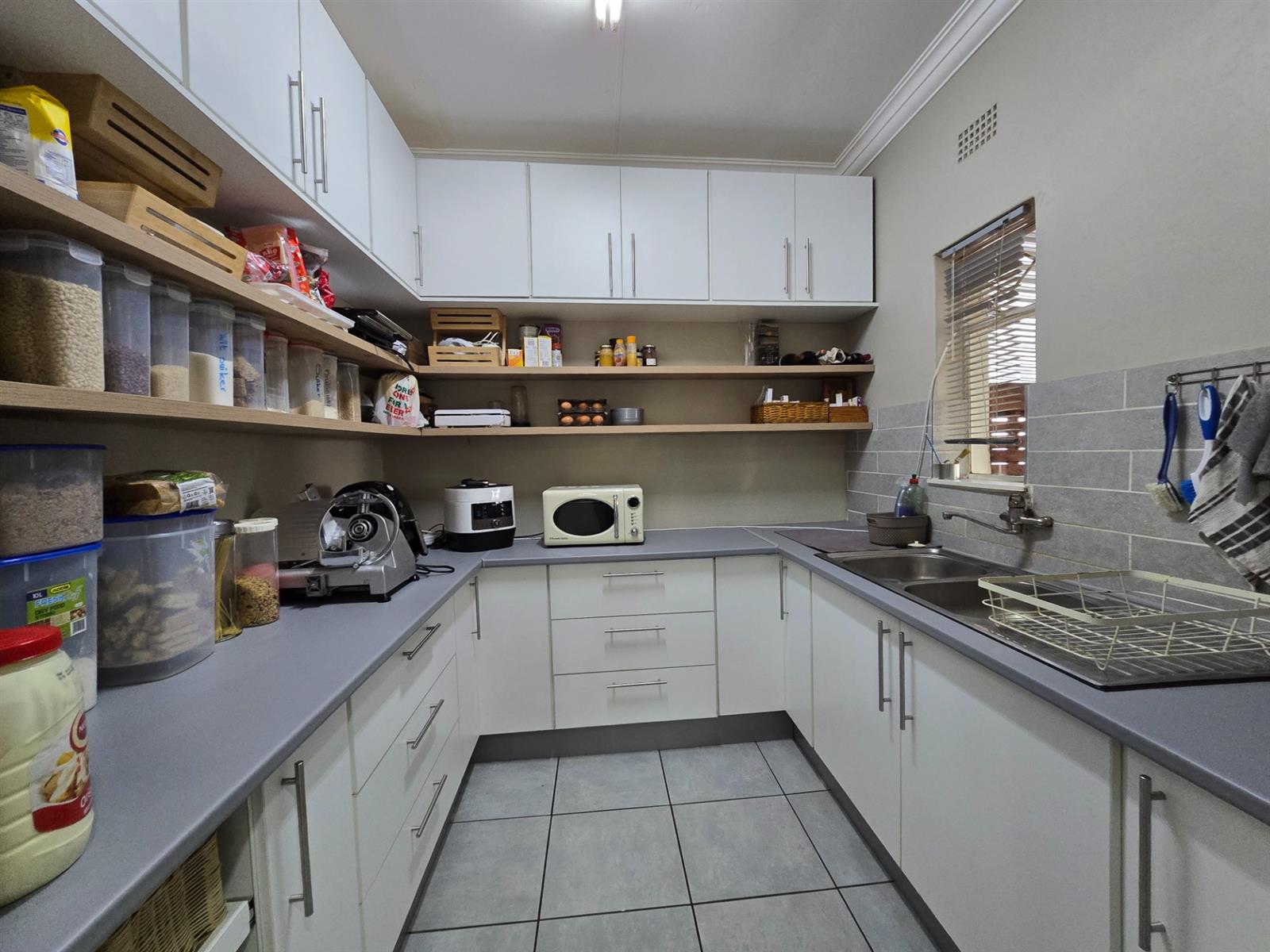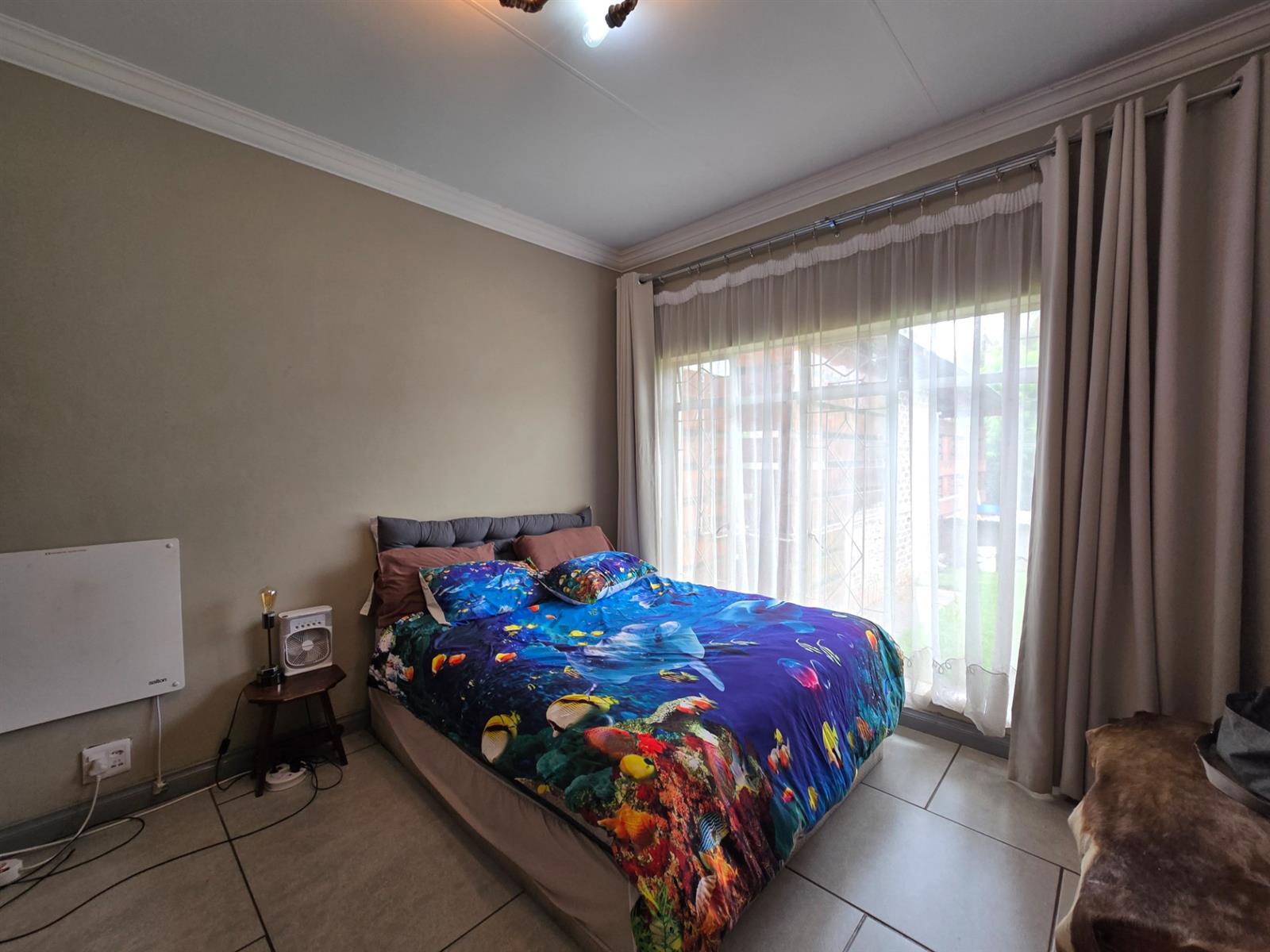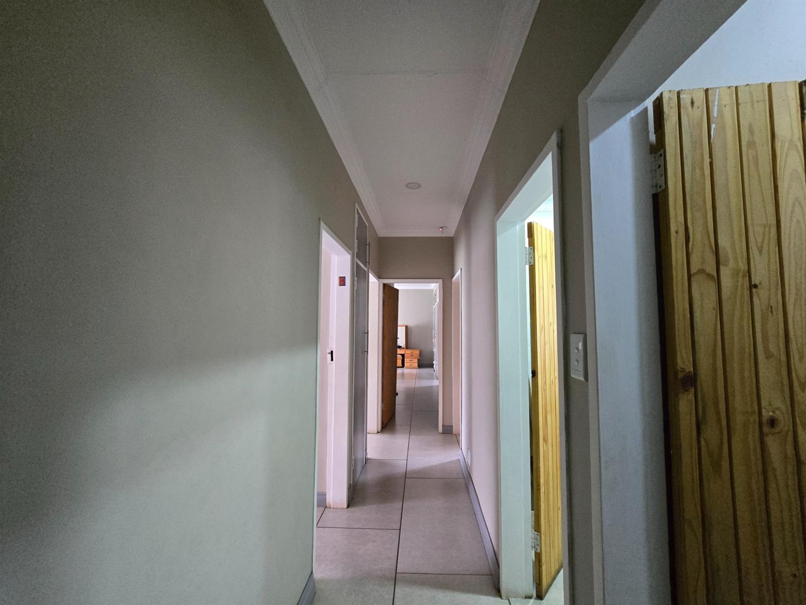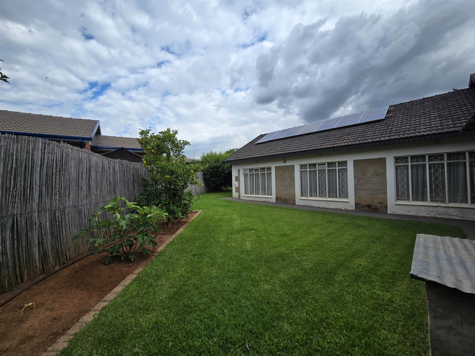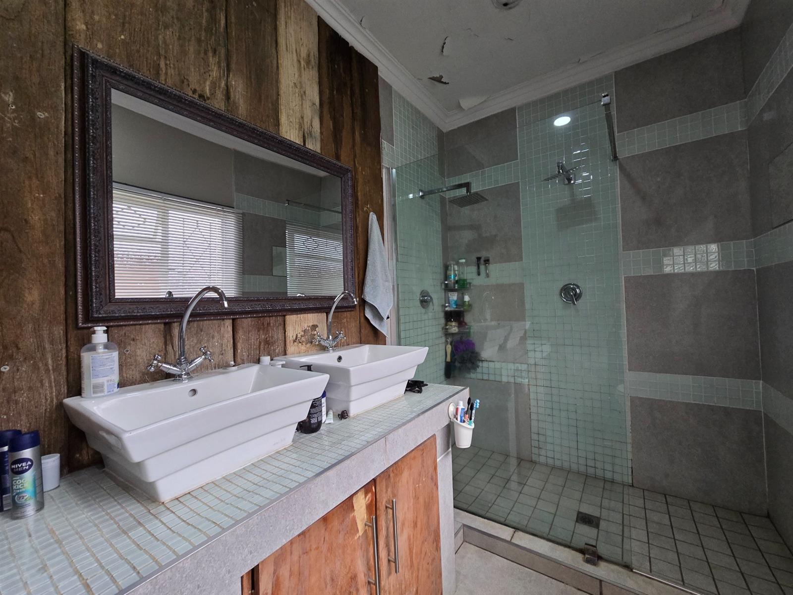 Security and sustainability are standout features, including beams, an alarm system, and cameras. The home is powered by an advanced solar setup with 14 x 550W panels, 8 lithium batteries (5760Wh each), and an 8KVA inverter, supported by a borehole with pressure pump and a 5,050L water tank, as well as gas geysers.