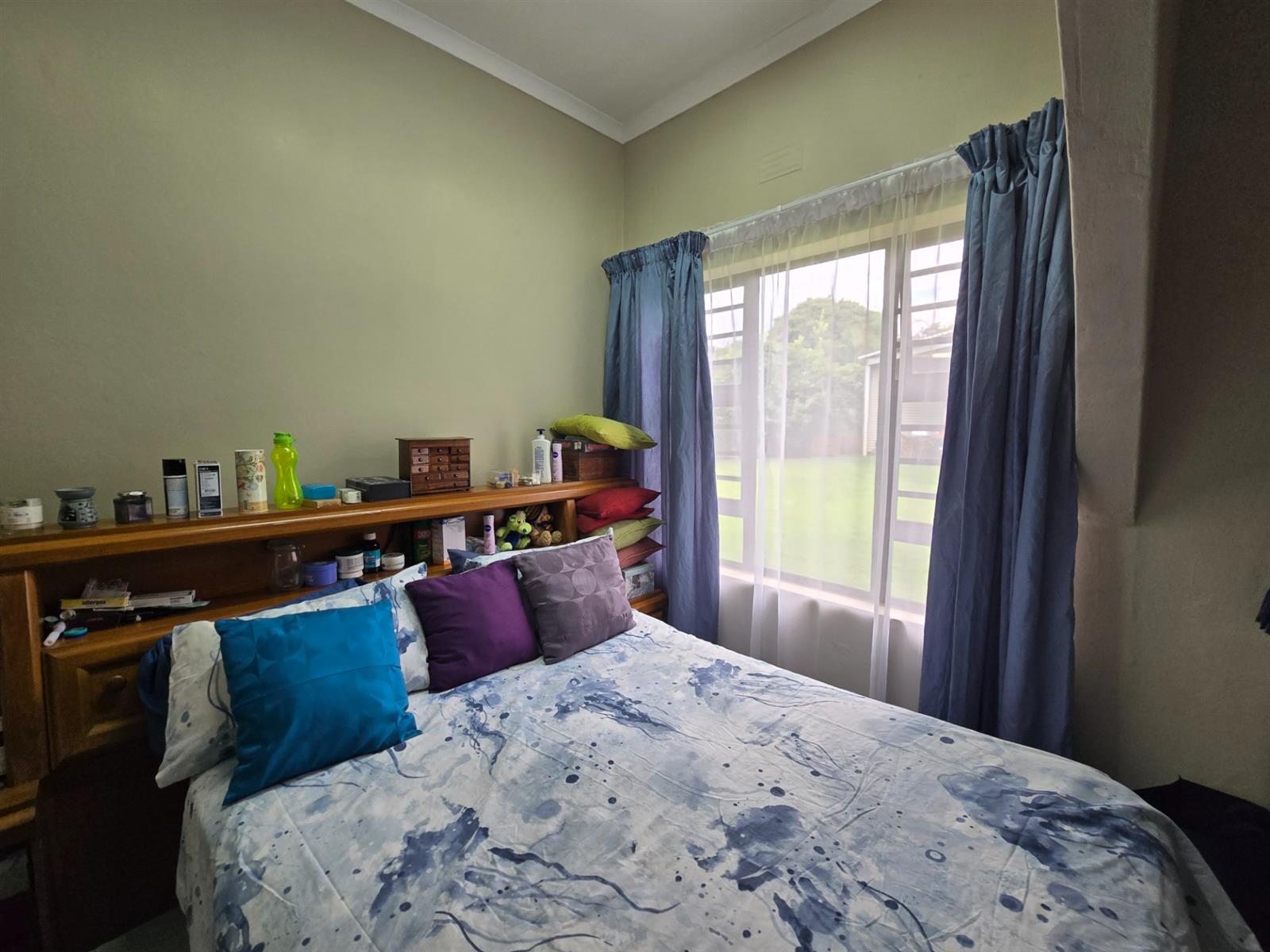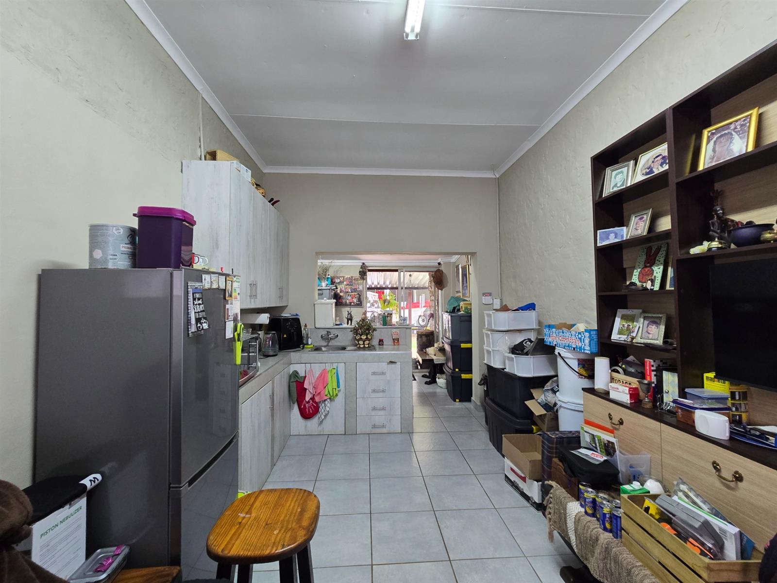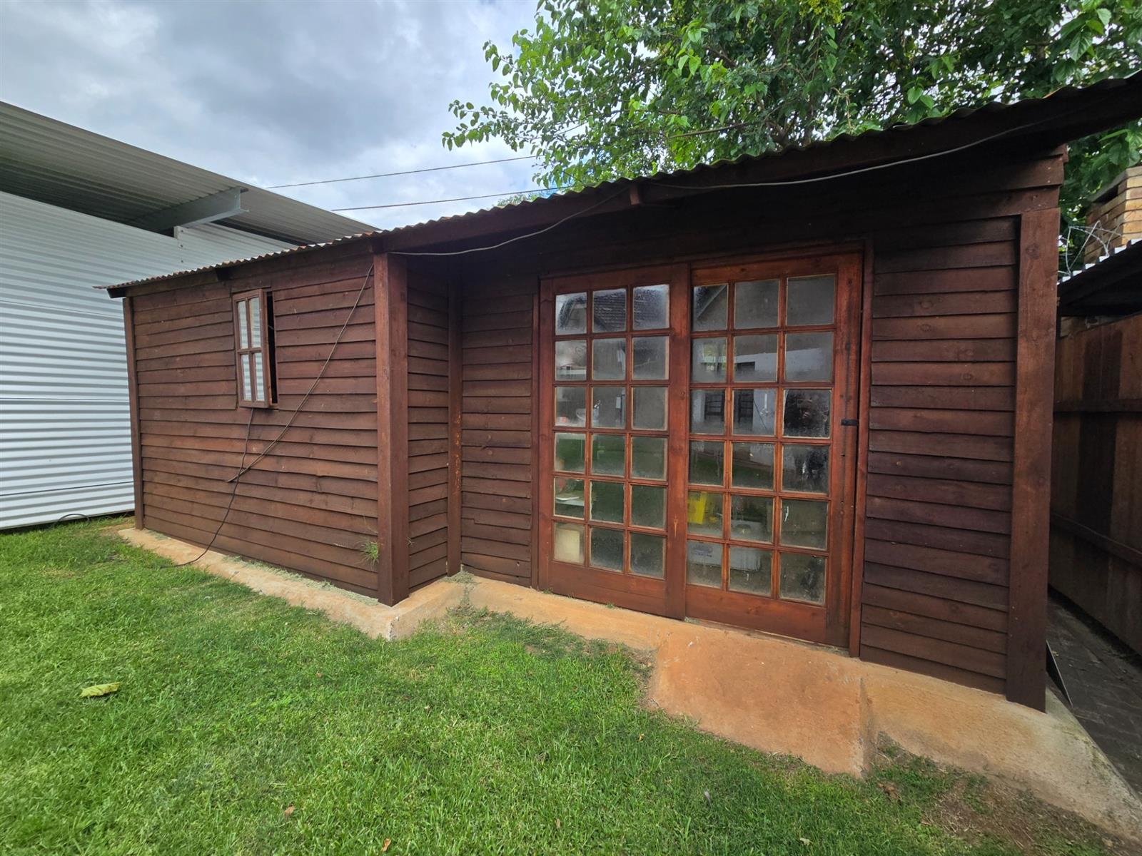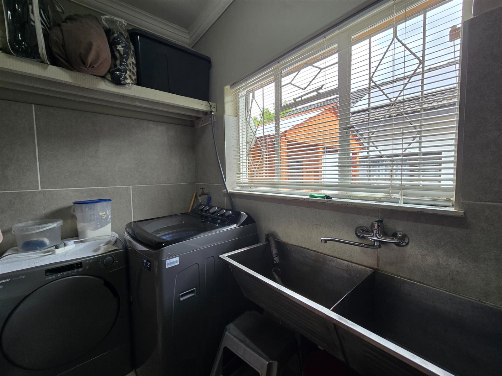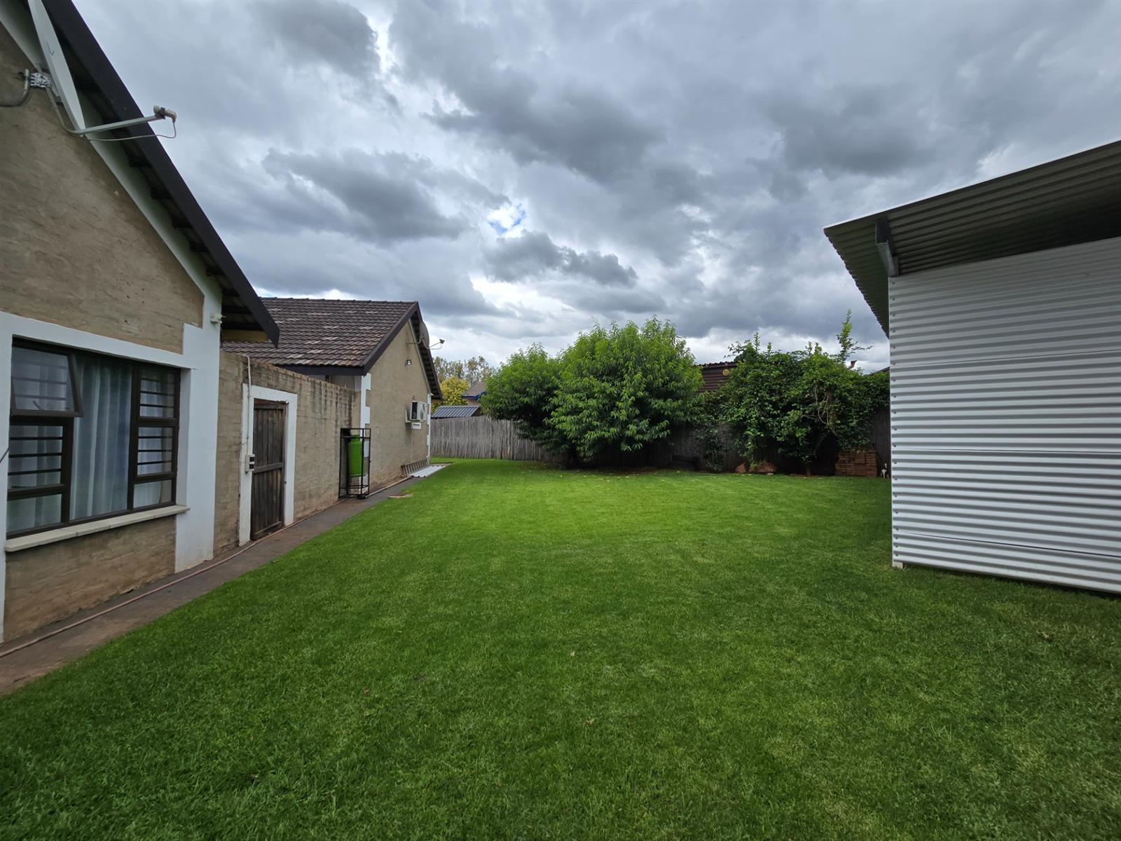 Flowing from the dining room, doors open onto a covered patio fitted with canvasses that can be closed for year-round use. This impressive entertainment area boasts a built-in braai and pizza oven, overlooking the swimming pool and well-maintained garden—an ideal setting for relaxed weekends, family gatherings, and memorable evenings with friends.