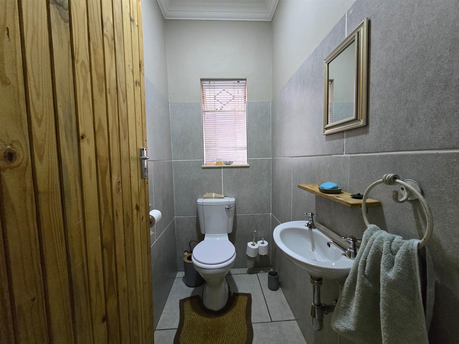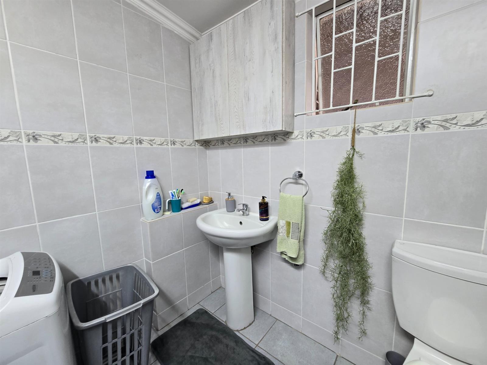 Down the passage, two well-sized bedrooms share a bathroom, complemented by a conveniently placed guest cloakroom. A separate laundry room is neatly tucked away, with direct access to a private courtyard for added practicality.