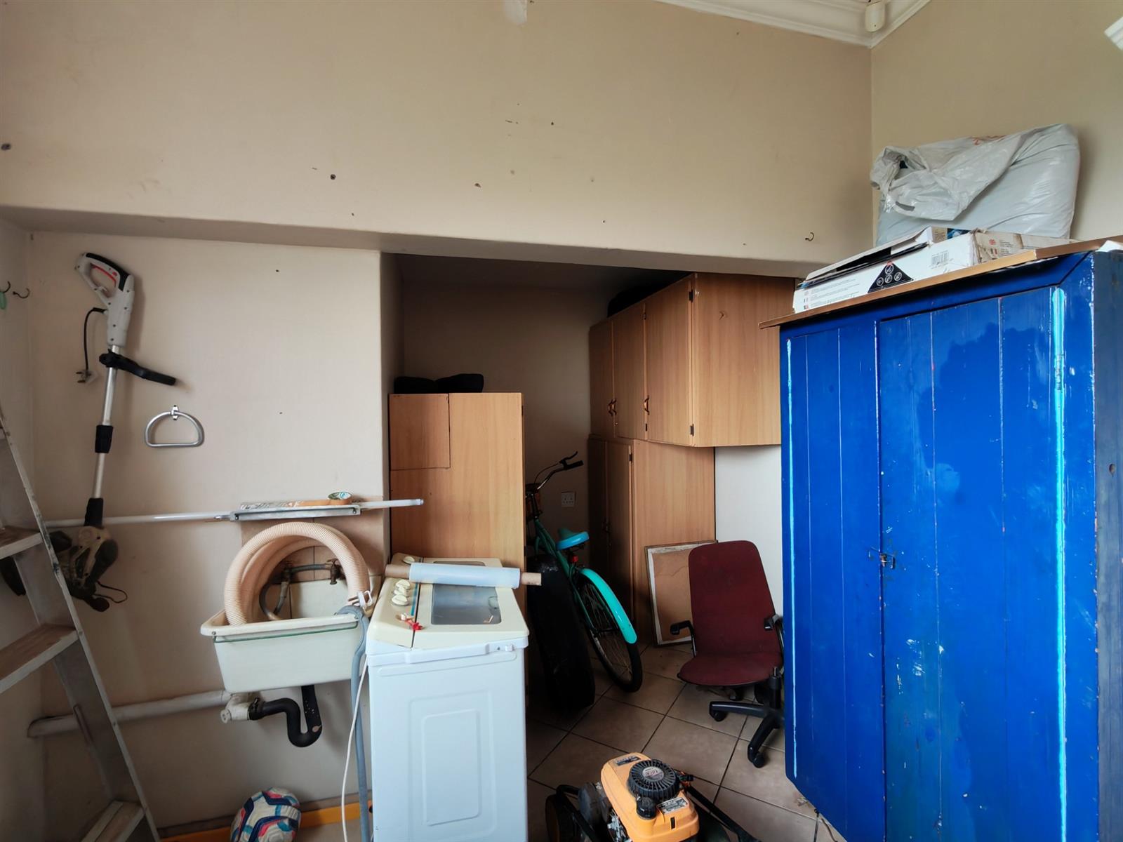 A large storeroom/workshop inside the garage