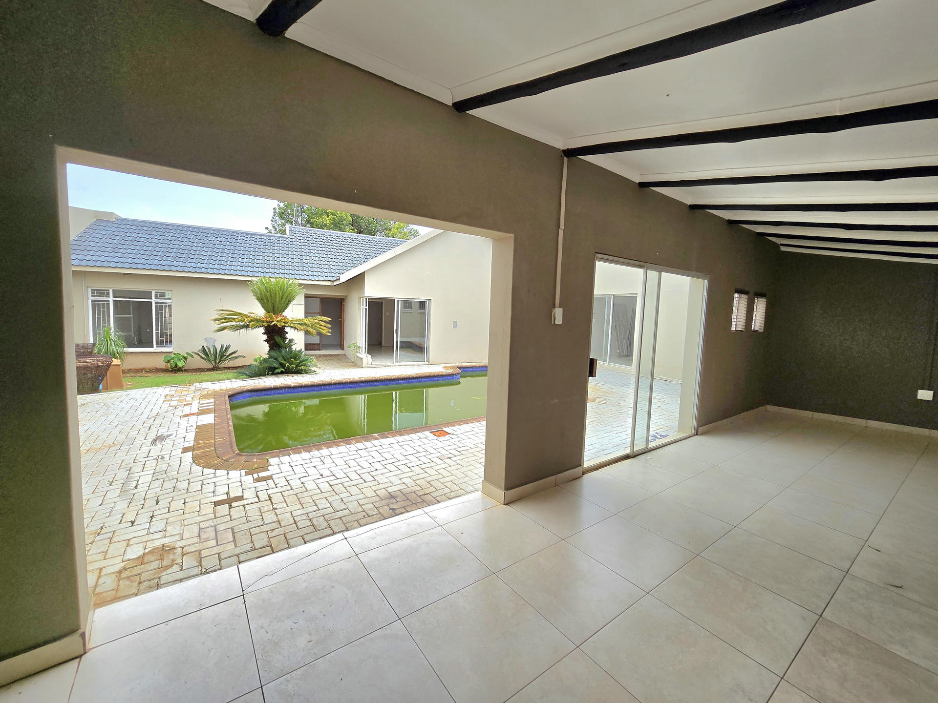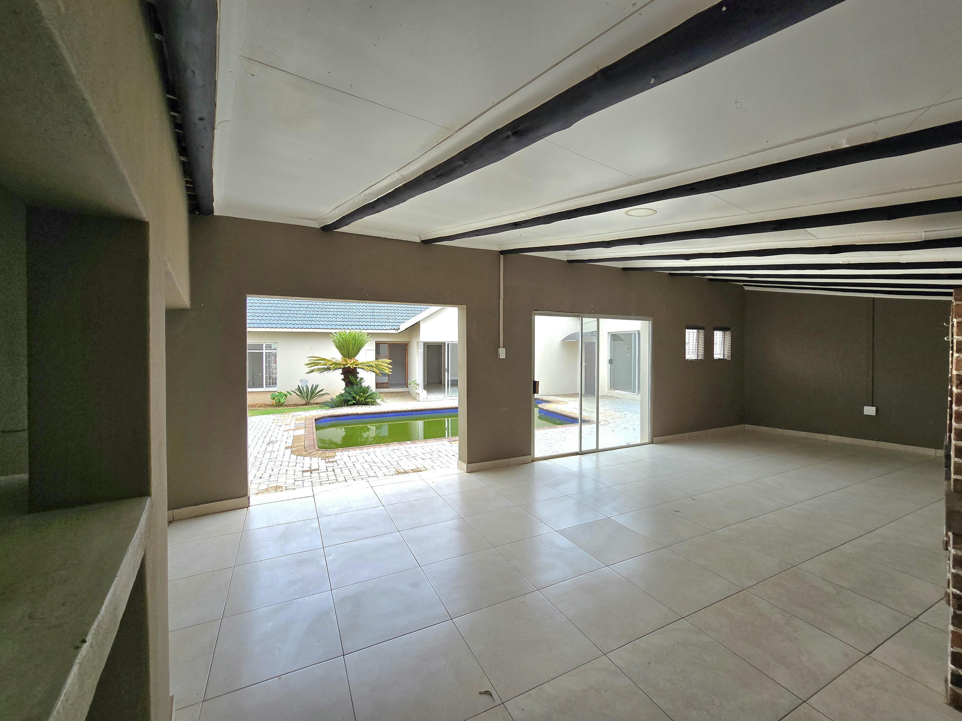 The entertainment area is fitted with a built in braai and opens directly to the courtyard, making it ideal for gatherings and weekends around the pool. Parking is well catered for with two garages that can comfortably accommodate four cars, along with a convenient carport. This home combines lifestyle, space, and smart design to create a property that truly stands out.