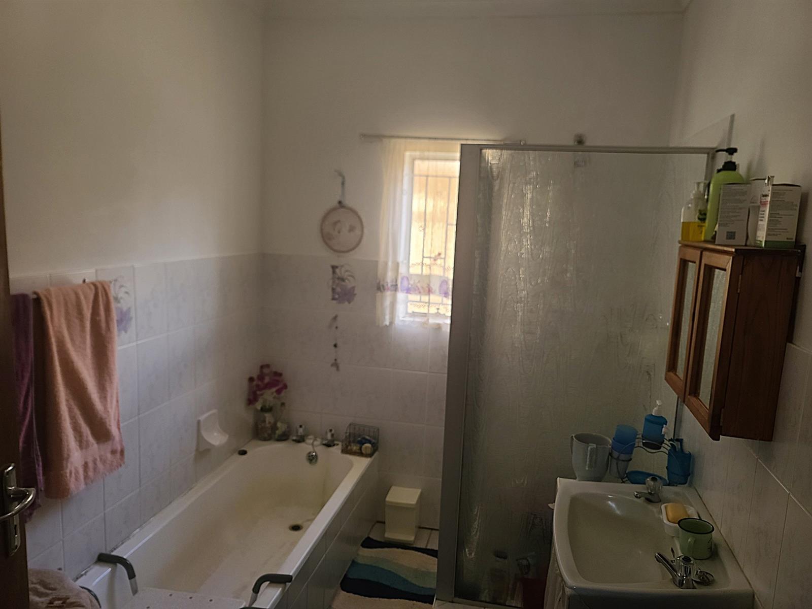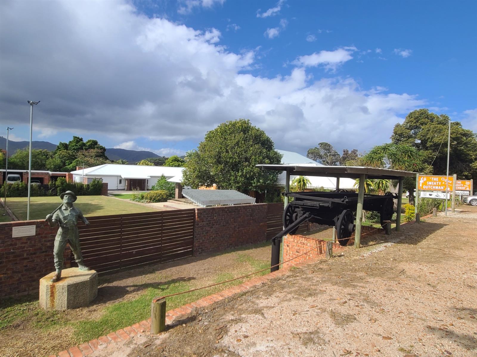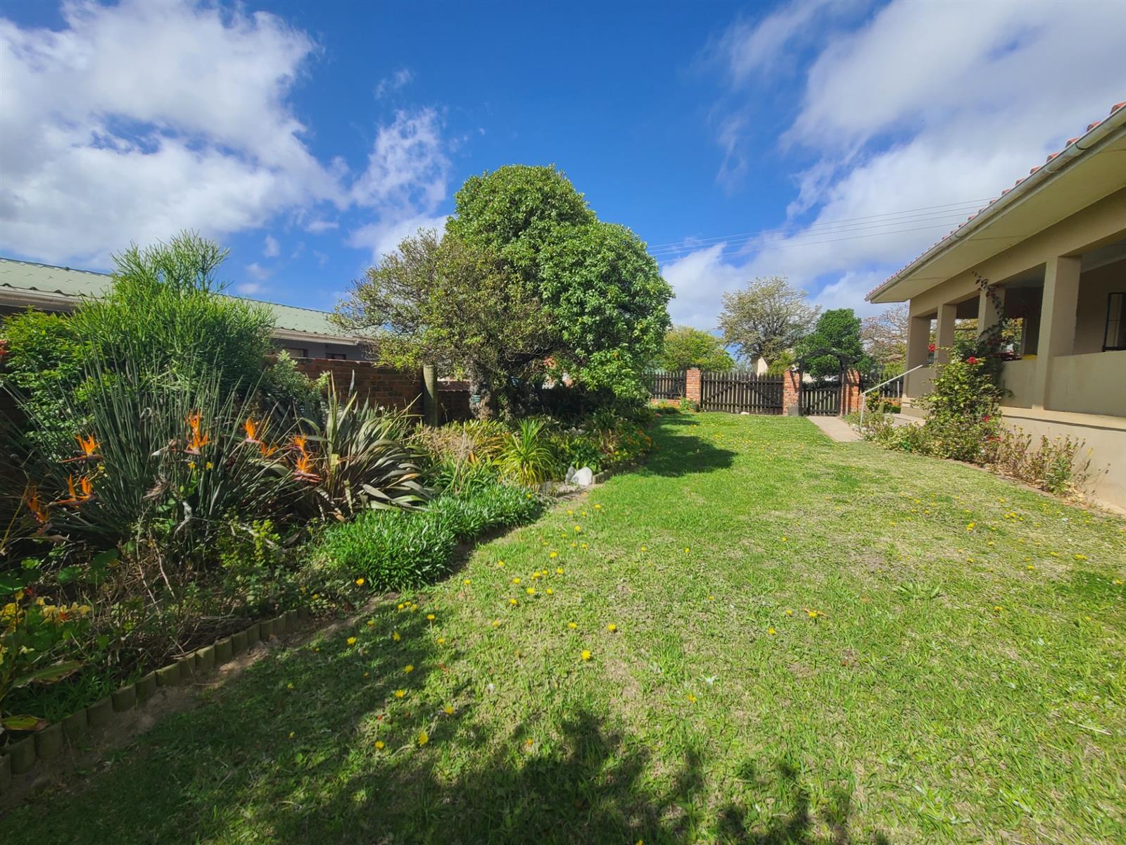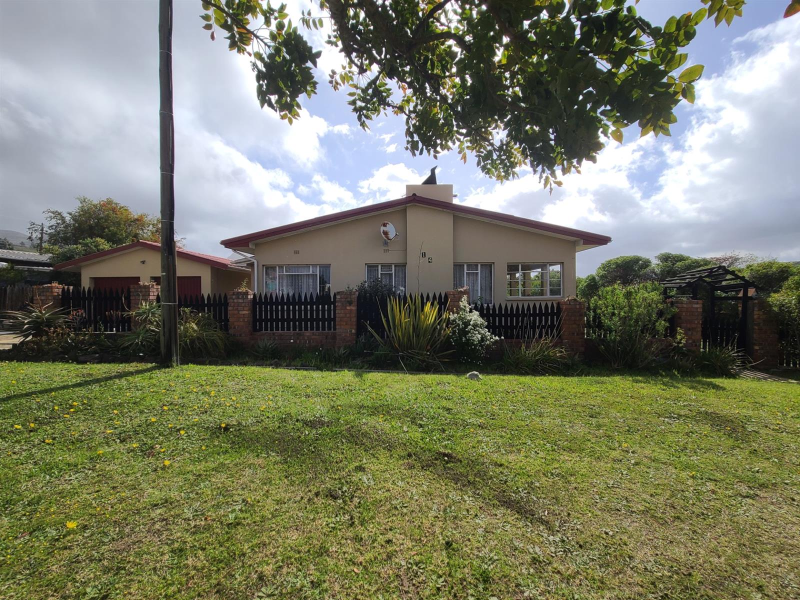 The lounge has a cozy fireplace for the cold winter evenings. The kitchen is old-style and large and has a serving hatch through into the dining/lounge area. The double door garage is slightly longer than standard garages and has a storeroom inside. Behind the garage is an "afdak" for storage/working space.