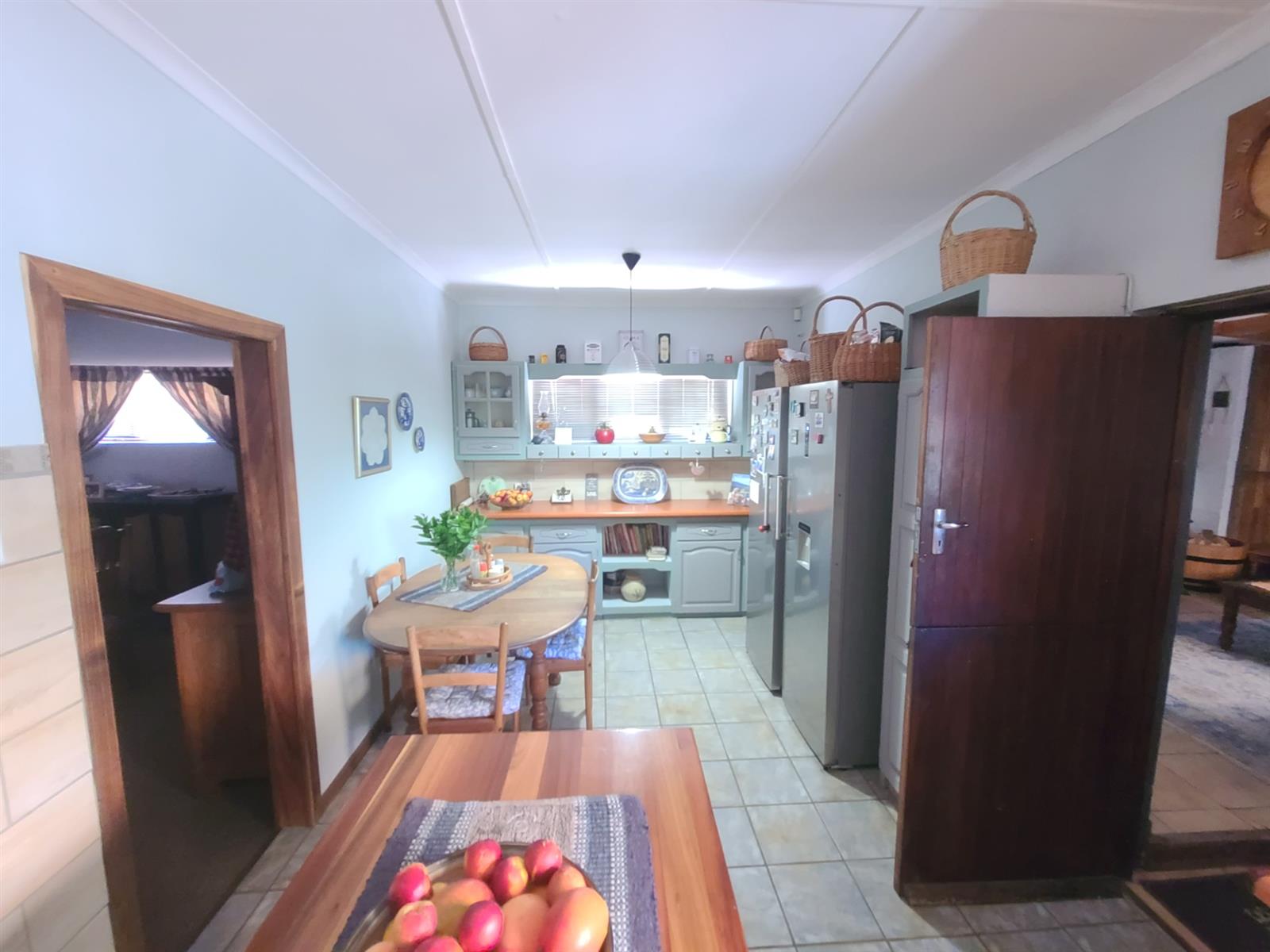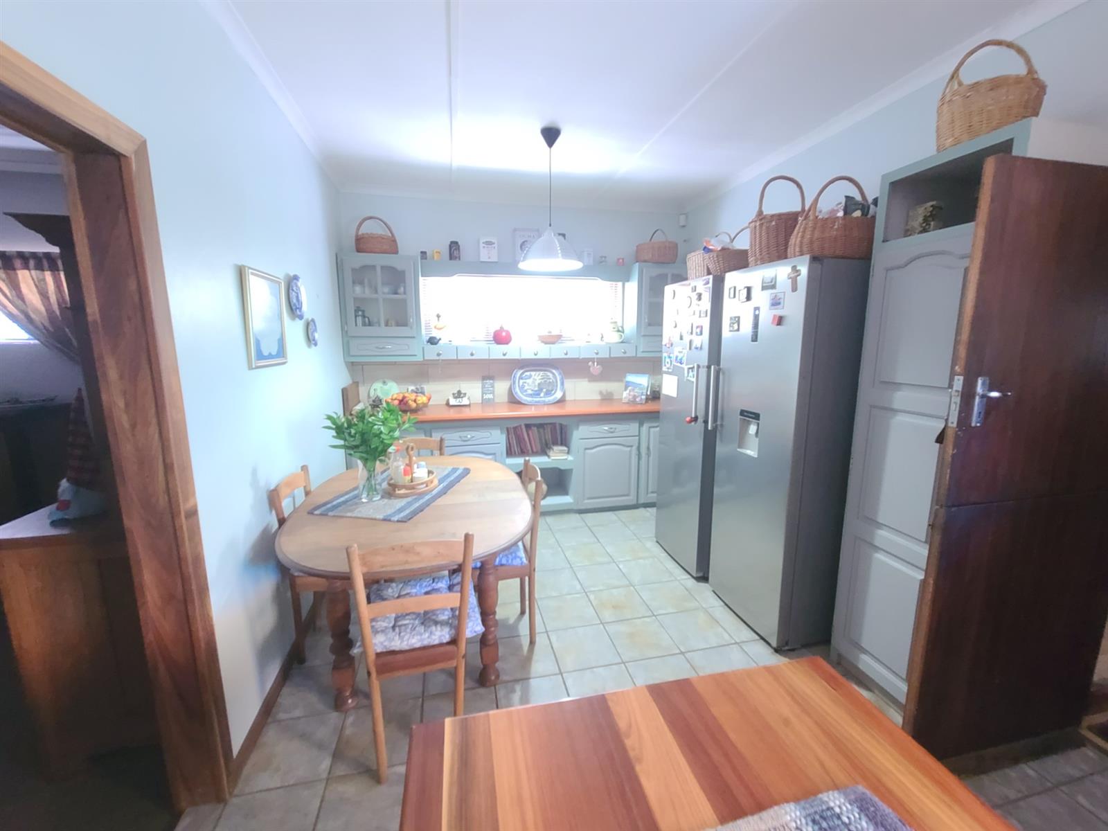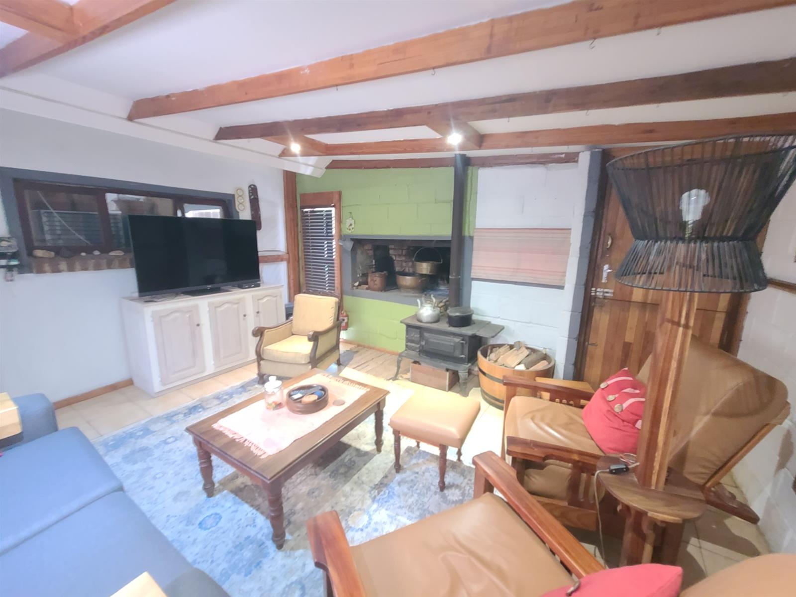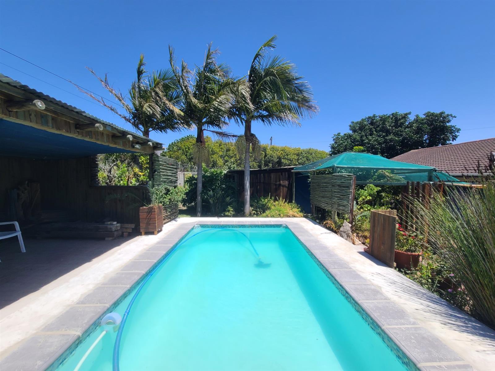 This Kareedouw beauty has a lush green garden, pool and entertainment area, big trees and a garden that is a floral oasis. It is situated in the upper side of Kareedouw, away from the main road`s hustle and bustle (not that it is noisy). The bonus is the flatlet. It has a separate entrance, a large bedroom that leads into a separate lounge/kitchenette area with a large bathroom with a gas geyser. The main house has 4 bedrooms (the 4th is currently used as an office), 2 bathrooms (the 1 is the main en-suite), separate loo, entrance hall, cozy lounge with a fireplace and a separate dining room that leads into the homely country-style kitchen with a large gas stove. There is a separate laundry room as well as a large storeroom, ideal for the amenities etc for the flatlet. The pool area is surrounded by lush trees and a pergola, and leads down to a patio lush with greenery and flowers. For green-fingered lovers this home is a must.