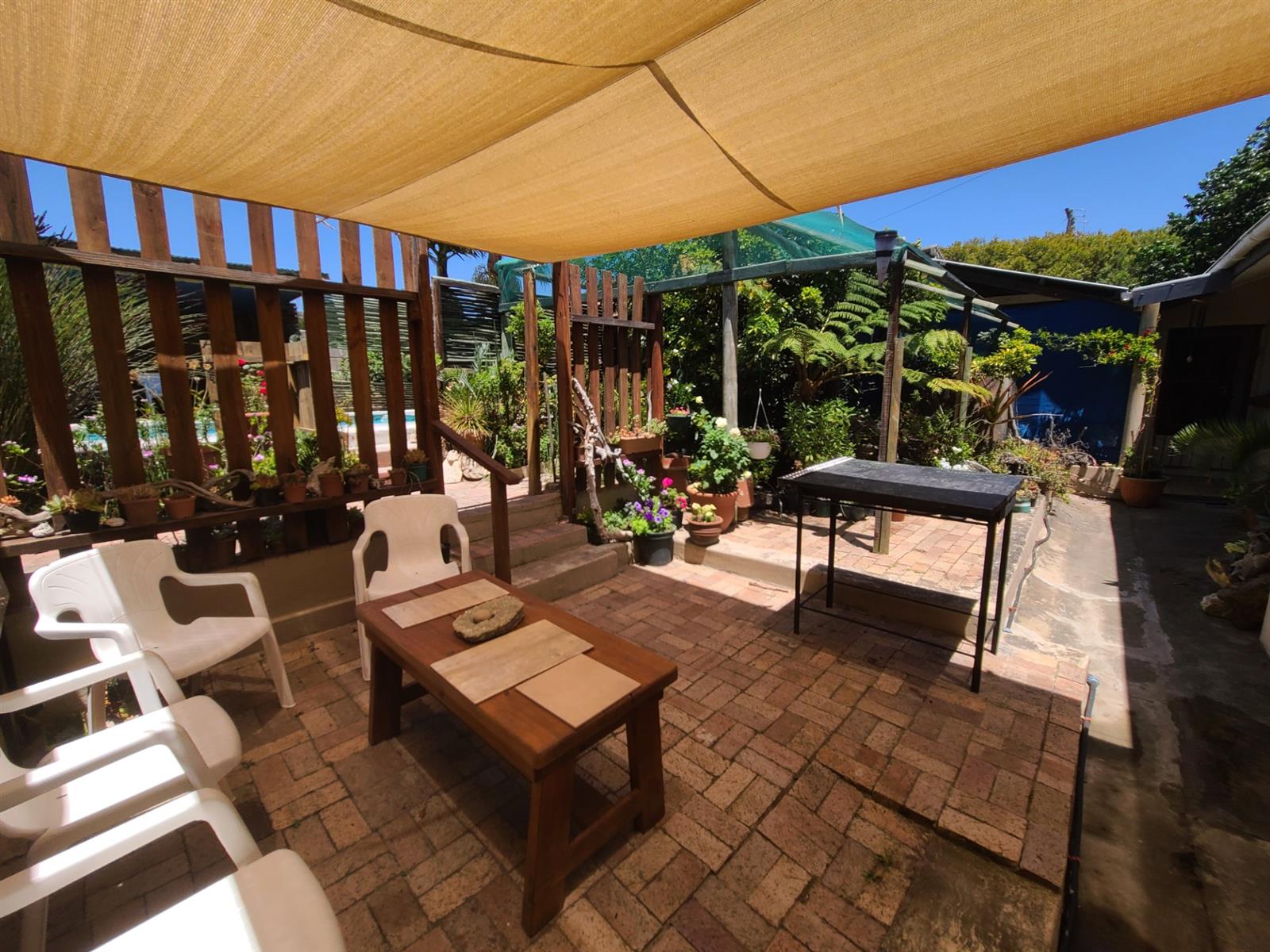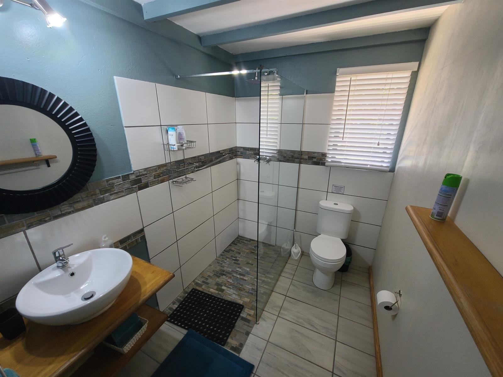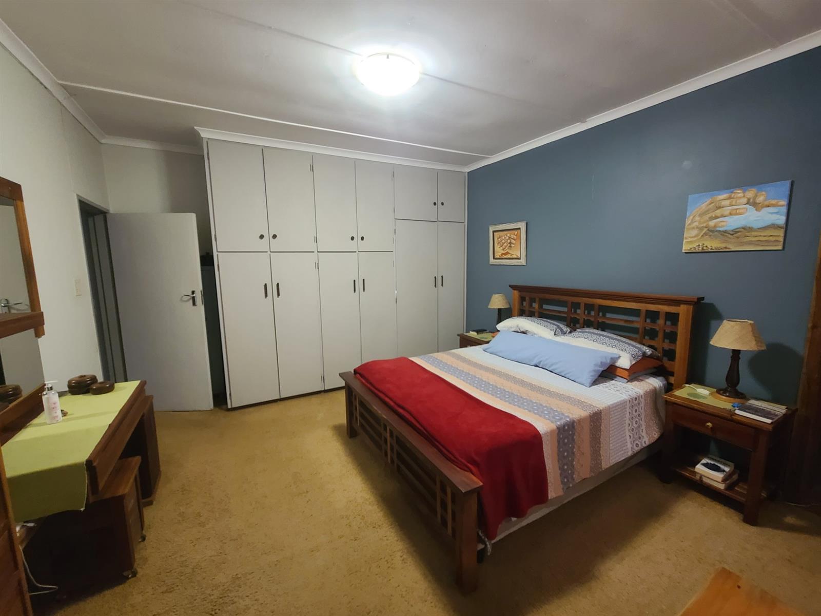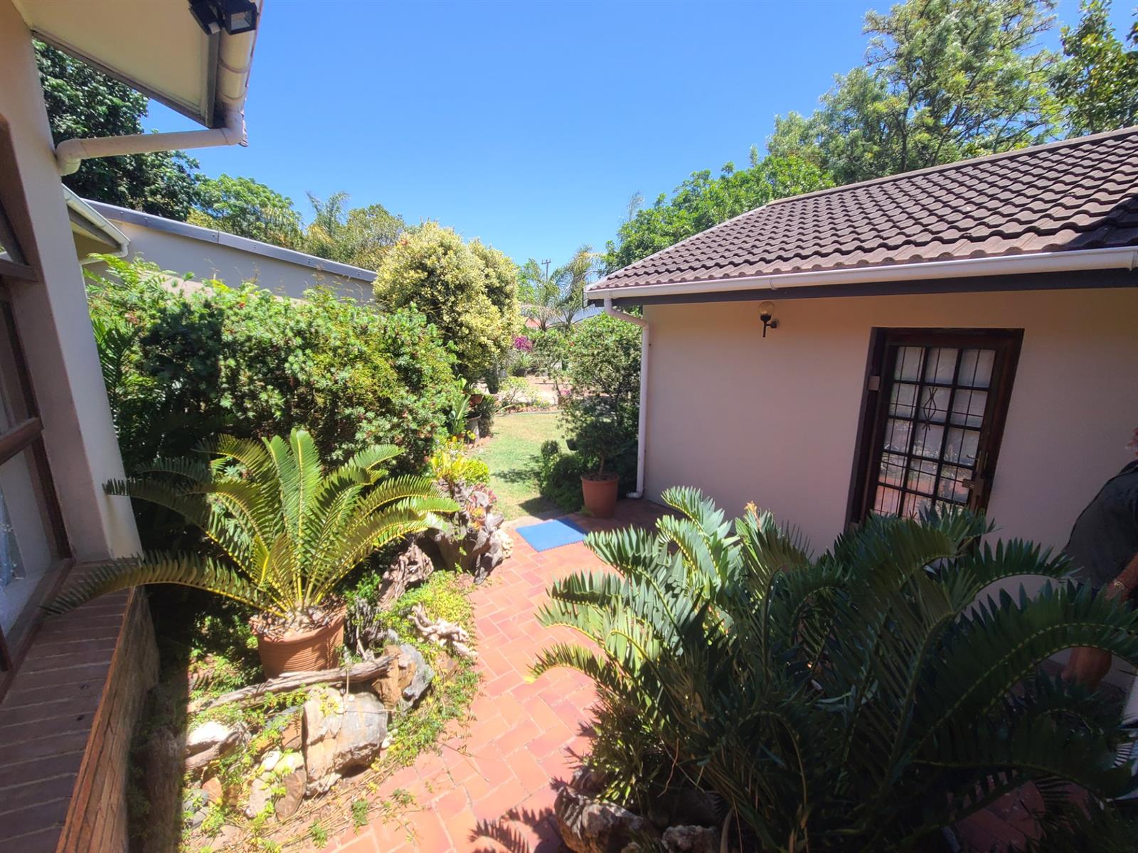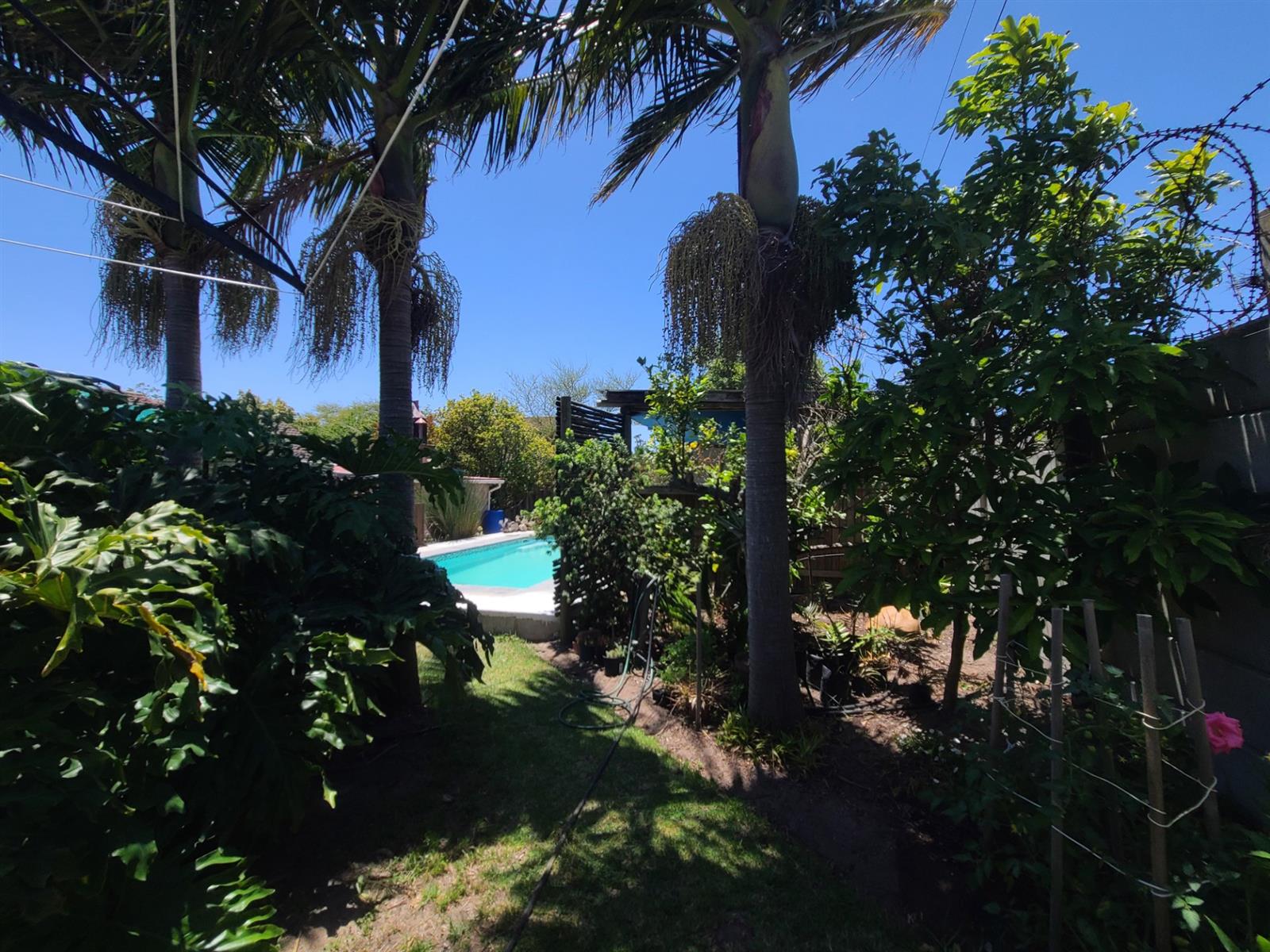 This Kareedouw beauty has a lush green garden, pool and entertainment area, big trees and a garden that is a floral oasis. It is situated in the upper side of Kareedouw, away from the main road`s hustle and bustle (not that it is noisy). The bonus is the flatlet. It has a separate entrance, a large bedroom that leads into a separate lounge/kitchenette area with a large bathroom with a gas geyser. The main house has 4 bedrooms (the 4th is currently used as an office), 2 bathrooms (the 1 is the main en-suite), separate loo, entrance hall, cozy lounge with a fireplace and a separate dining room that leads into the homely country-style kitchen with a large gas stove. There is a separate laundry room as well as a large storeroom, ideal for the amenities etc for the flatlet. The pool area is surrounded by lush trees and a pergola, and leads down to a patio lush with greenery and flowers. For green-fingered lovers this home is a must.