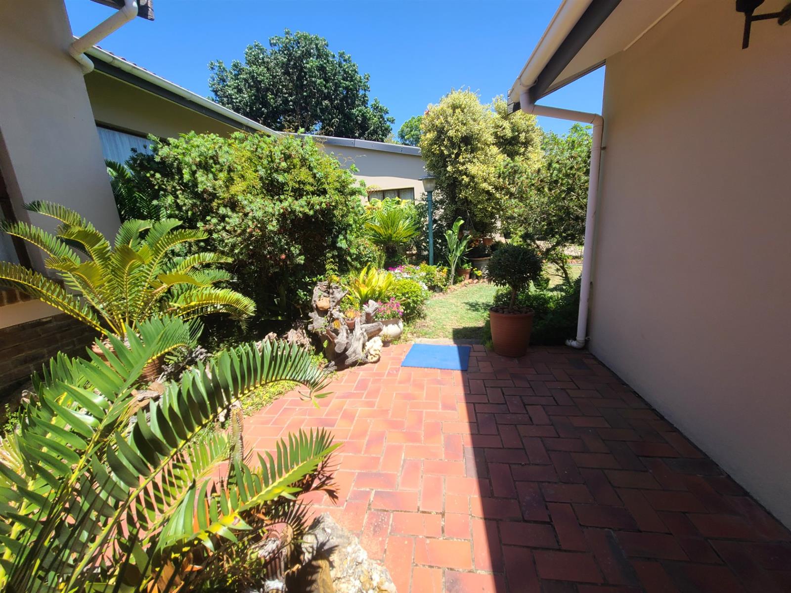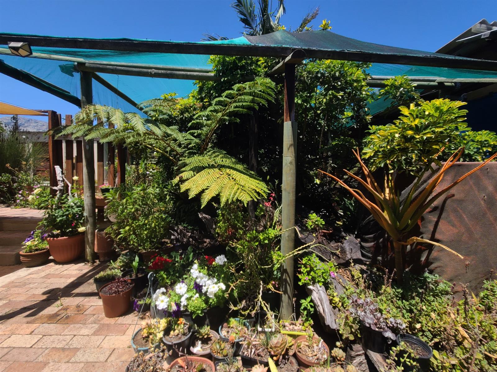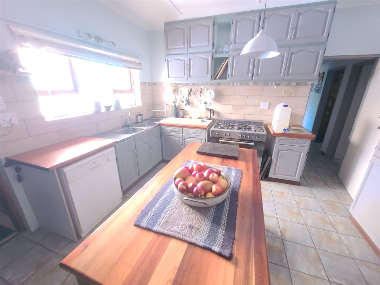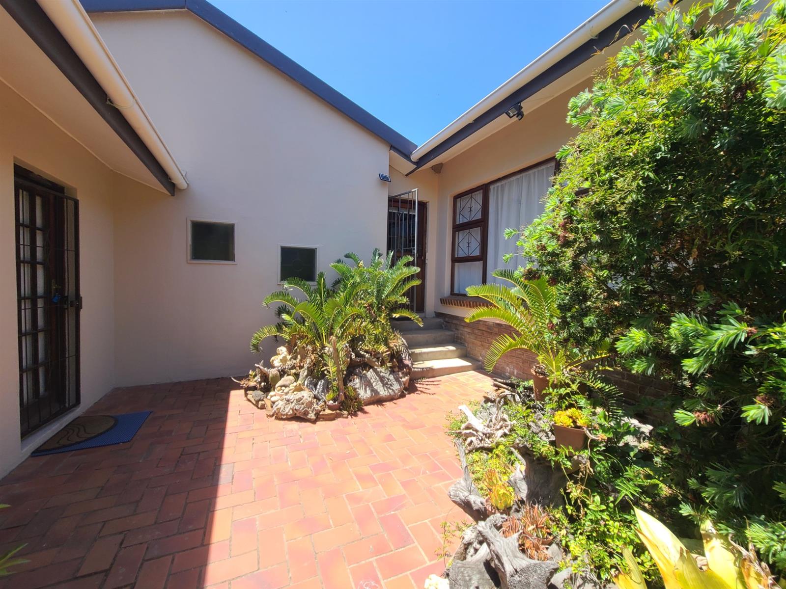 This Kareedouw beauty has a lush green garden, pool and entertainment area, big trees and a garden that is a floral oasis. It is situated in the upper side of Kareedouw, away from the main road`s hustle and bustle (not that it is noisy). The bonus is the flatlet. It has a separate entrance, a large bedroom that leads into a separate lounge/kitchenette area with a large bathroom with a gas geyser. The main house has 4 bedrooms (the 4th is currently used as an office), 2 bathrooms (the 1 is the main en-suite), separate loo, entrance hall, cozy lounge with a fireplace and a separate dining room that leads into the homely country-style kitchen with a large gas stove. There is a separate laundry room as well as a large storeroom, ideal for the amenities etc for the flatlet. The pool area is surrounded by lush trees and a pergola, and leads down to a patio lush with greenery and flowers. For green-fingered lovers this home is a must.