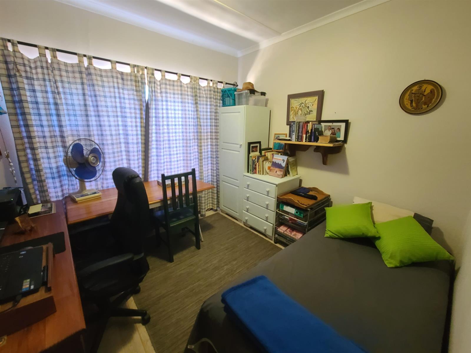 The garage is larger than standard and there is enough room for a workstation/workshop area. There is also a large outside storeroom area for additional space/workspace. The entire property is enclosed and the property has outer beams and an alarm system. Other extras include an inverter and battery and a 1000Lt water tank