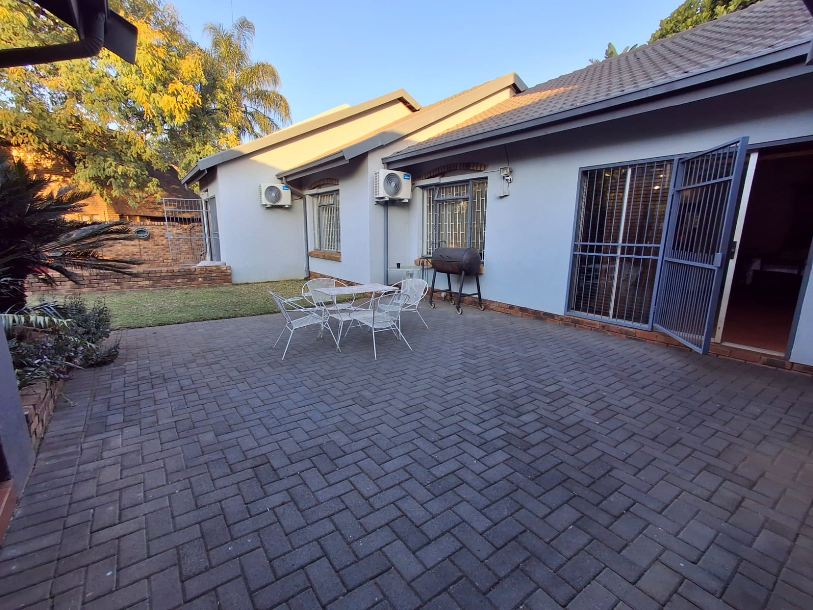 Burglar bars on all windows and security gates on doors