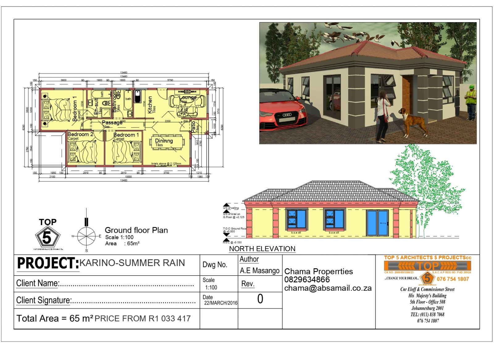 New Development in Karino, Mbombela - Start your hassle-free home construction experience with our all-inclusive turnkey packages. Select the ideal home design that suits your lifestyle and preferences. Benefit from total transparency with no concealed fees or unexpected costs. Customize your living space with our carefully chosen range of finishes and styles. The building packages come with a stand and include the following finishes: aluminum windows, ceramic tiled flooring, built-in wardrobes in all bedrooms, and a kitchen equipped with a built-in cupboard, four-plate stove, oven, and extractor fan.