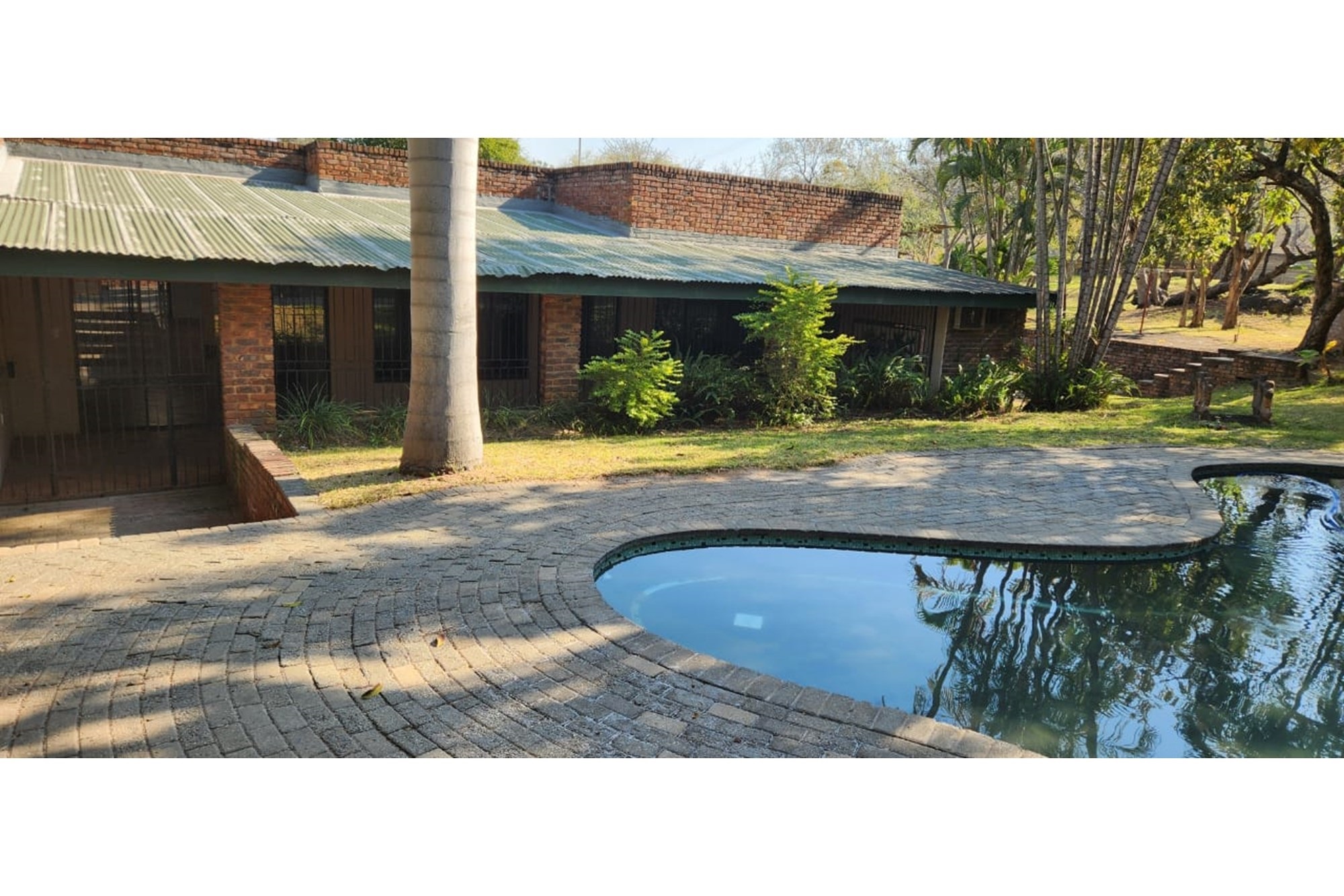 This small holding in the Karino Area close to the KaNymanzane road and offers a 4.1ha Plot which is fully fenced with 1,8m concrete walls. The property is developed in a well established garden with huge palm trees alongside the incoming road and with splendid indigenous trees to offer shade in the spacious garden.