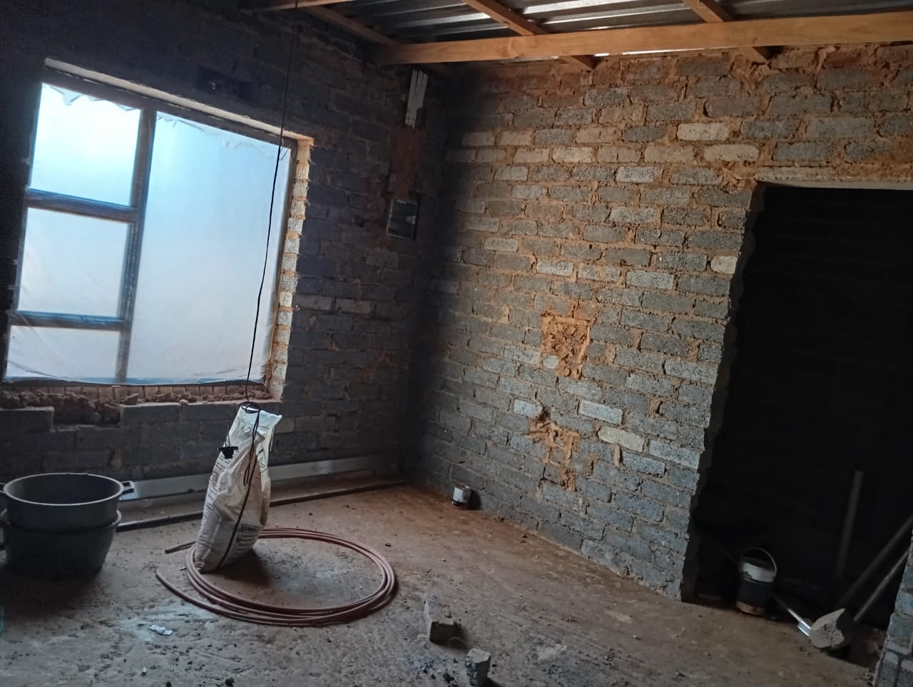 A standalone incomplete one-bedroom house is now available for sale in Katlehong South Ext 9, with no plans provided and a preference for cash buyers. This charming property offers a unique opportunity for those looking to invest. The layout includes two unfinished rooms, featuring a bedroom and a living area, along with a conveniently located bathroom. Its advantageous position ensures easy access to reputable schools and shopping centers, while excellent transport links facilitate smooth commuting. The neighborhood is known for its secure and peaceful atmosphere, making it an attractive option for families, investors, and young professionals.
