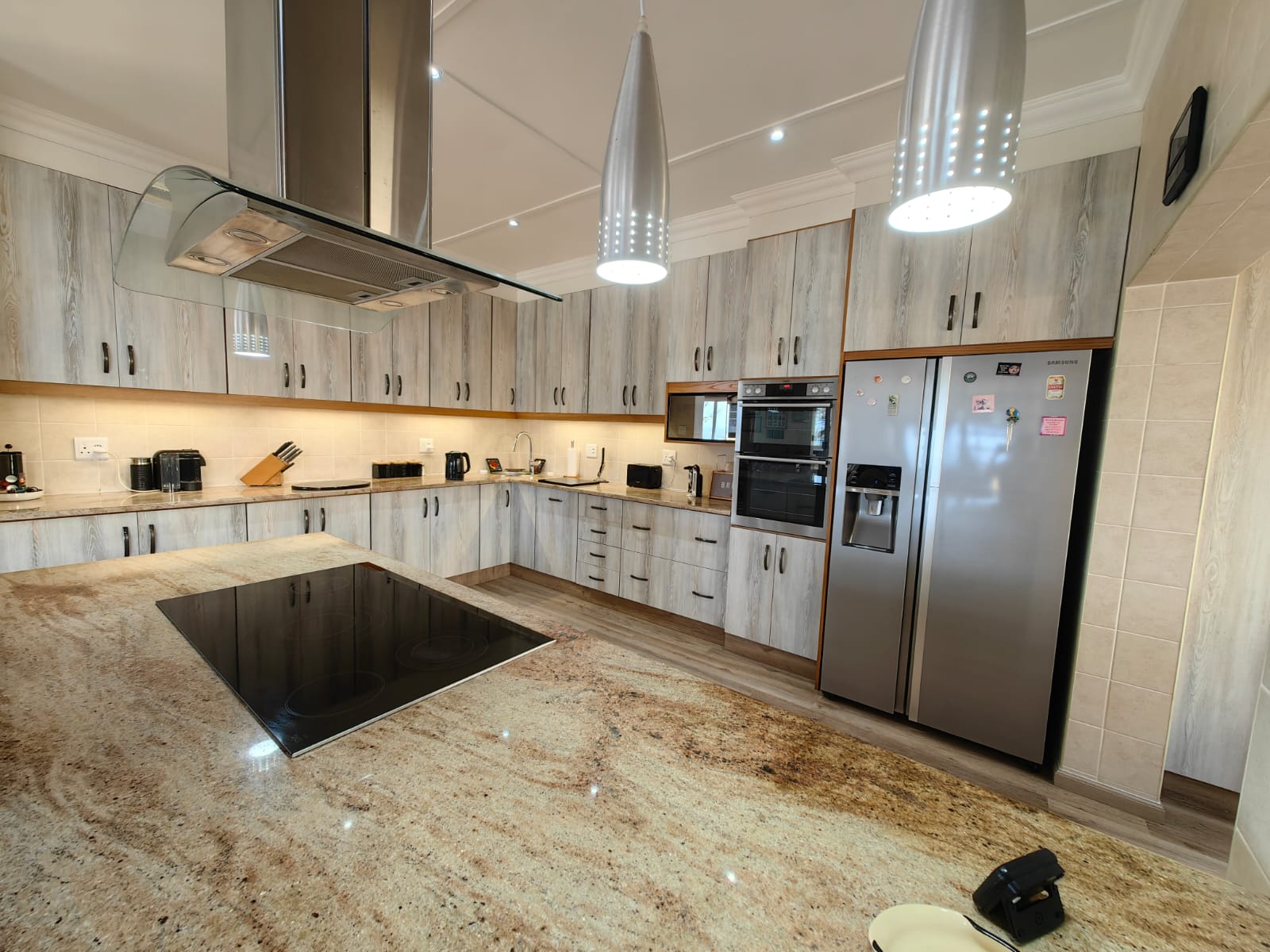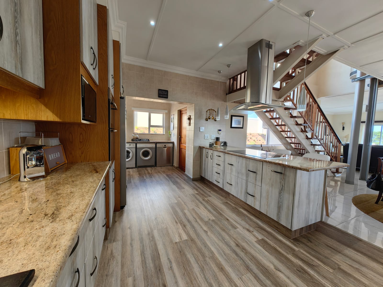 Indulge your senses in the heart of the home - a stunning kitchen adorned with granite tops, over-counter lights, and top-of-the-line appliances. From gas and electric hobs to a water filter and reverse osmosis system, every culinary need is catered to with effortless grace. A spacious pantry and scullery, complete with a laundry area and backdoor access to the garden, add an extra layer of convenience to daily life.
