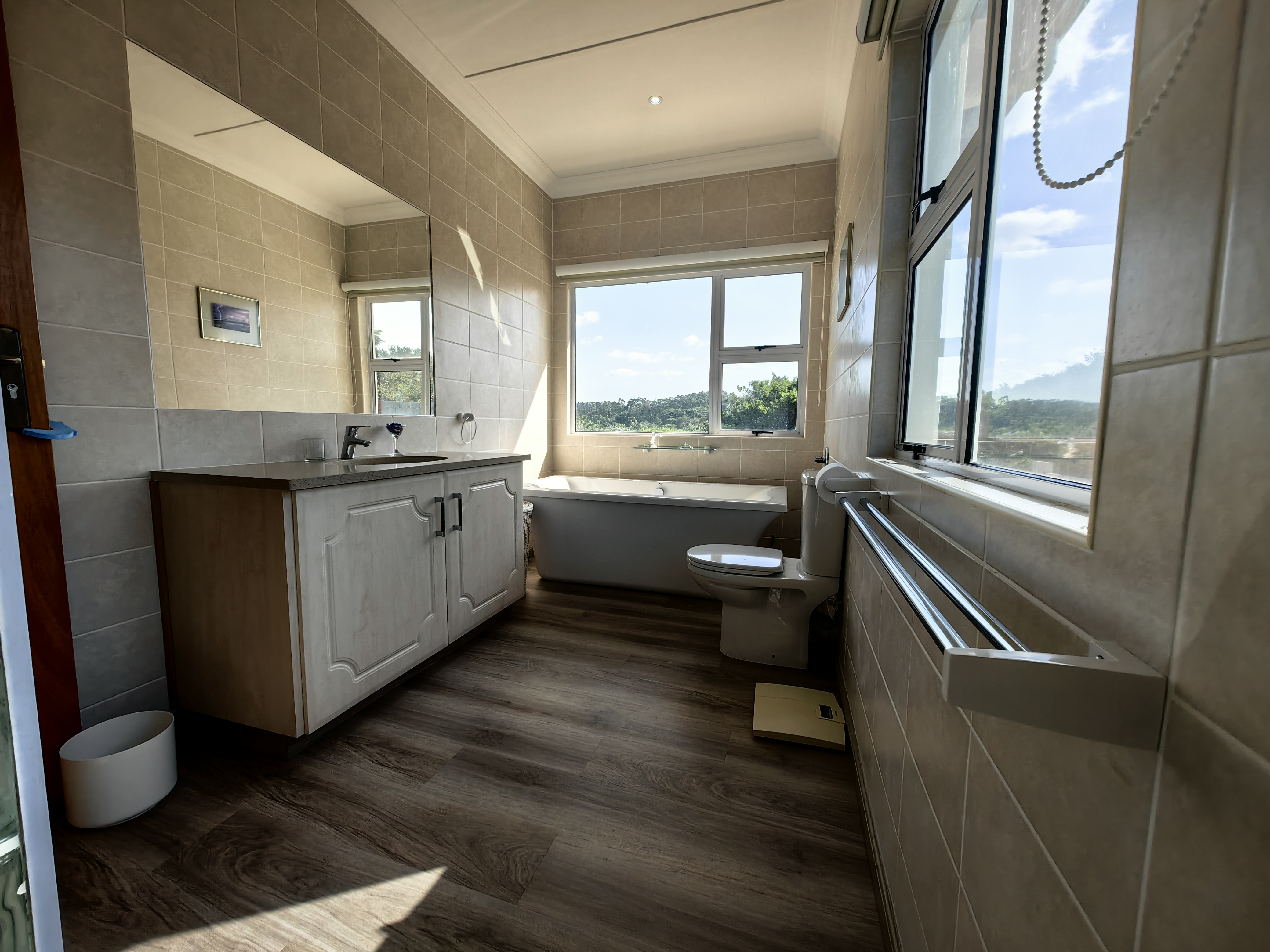 Designed with foresight and practicality in mind, this home features a two-man lift that gracefully transitions between floors, ensuring accessibility for years to come. Smart switches control essential features such as the pool motor, pool light, geyser, and triple garage doors, while laminated glass windows offer enhanced security, soundproofing, and UV protection.