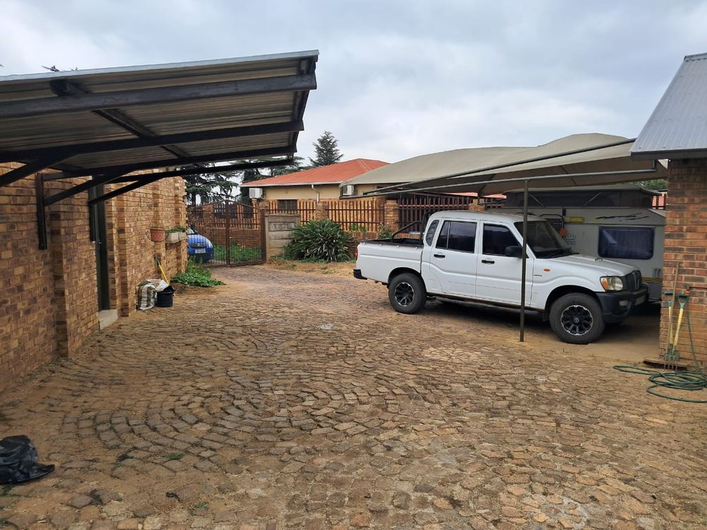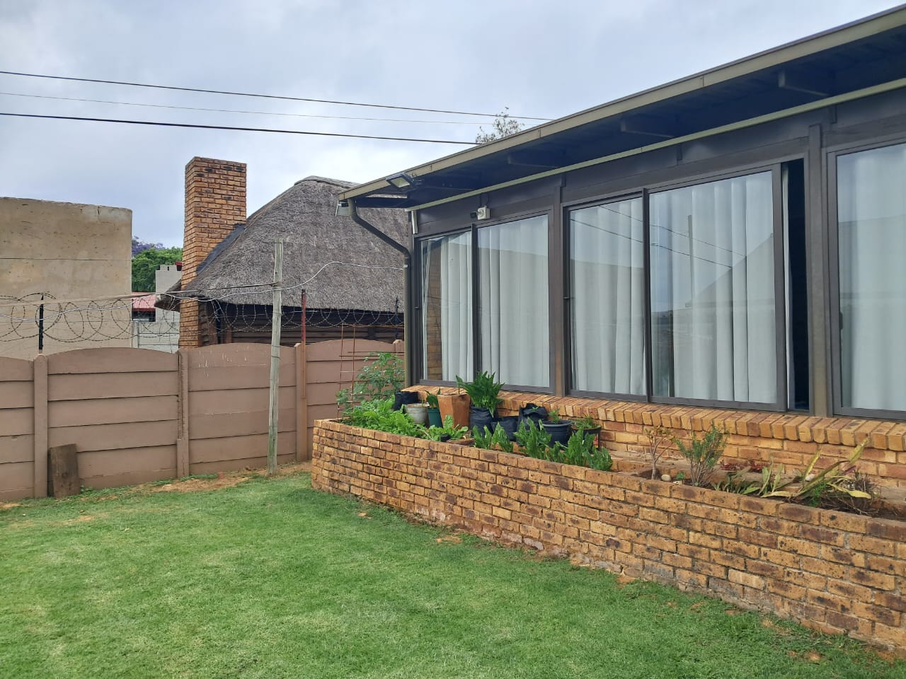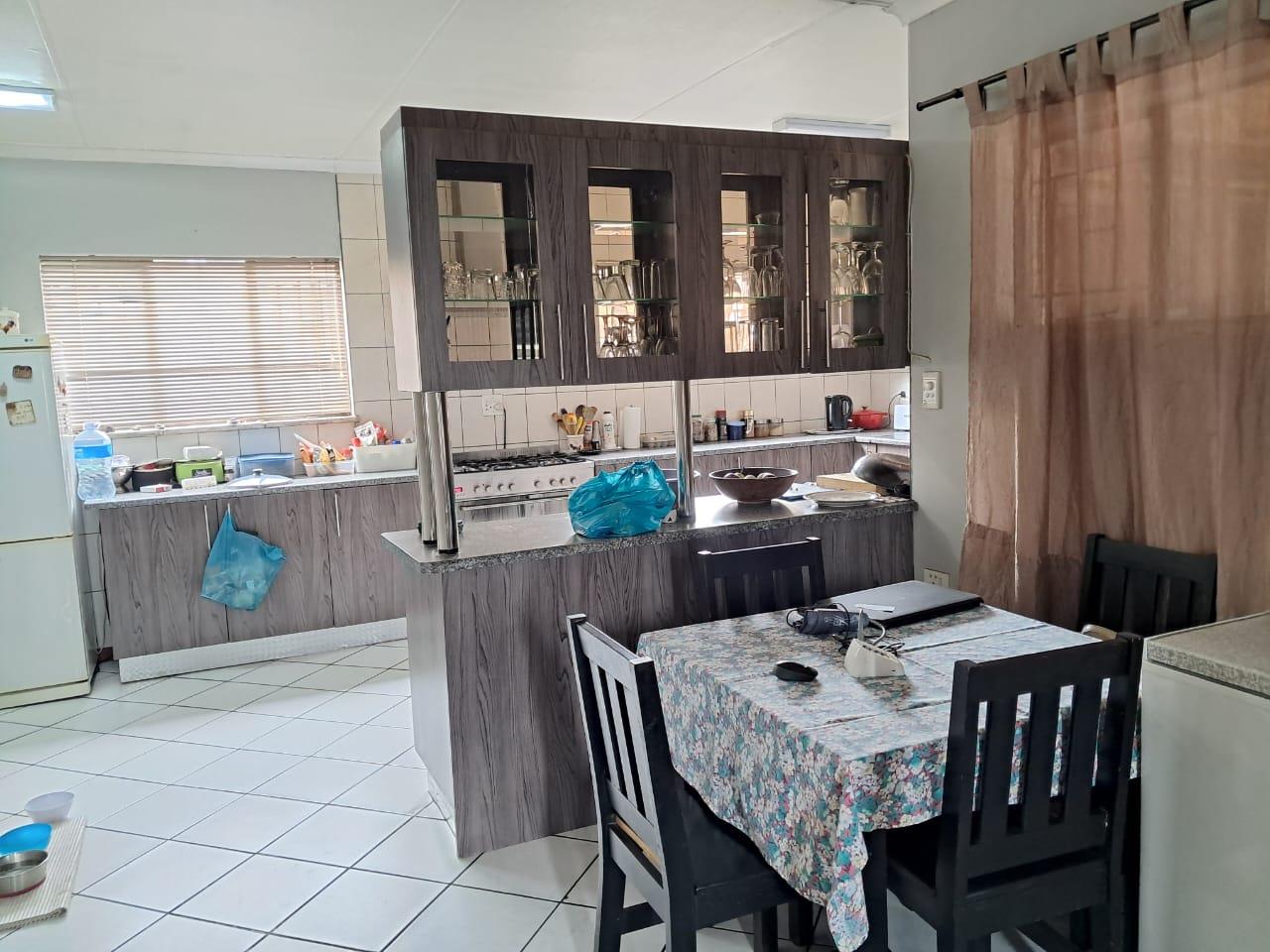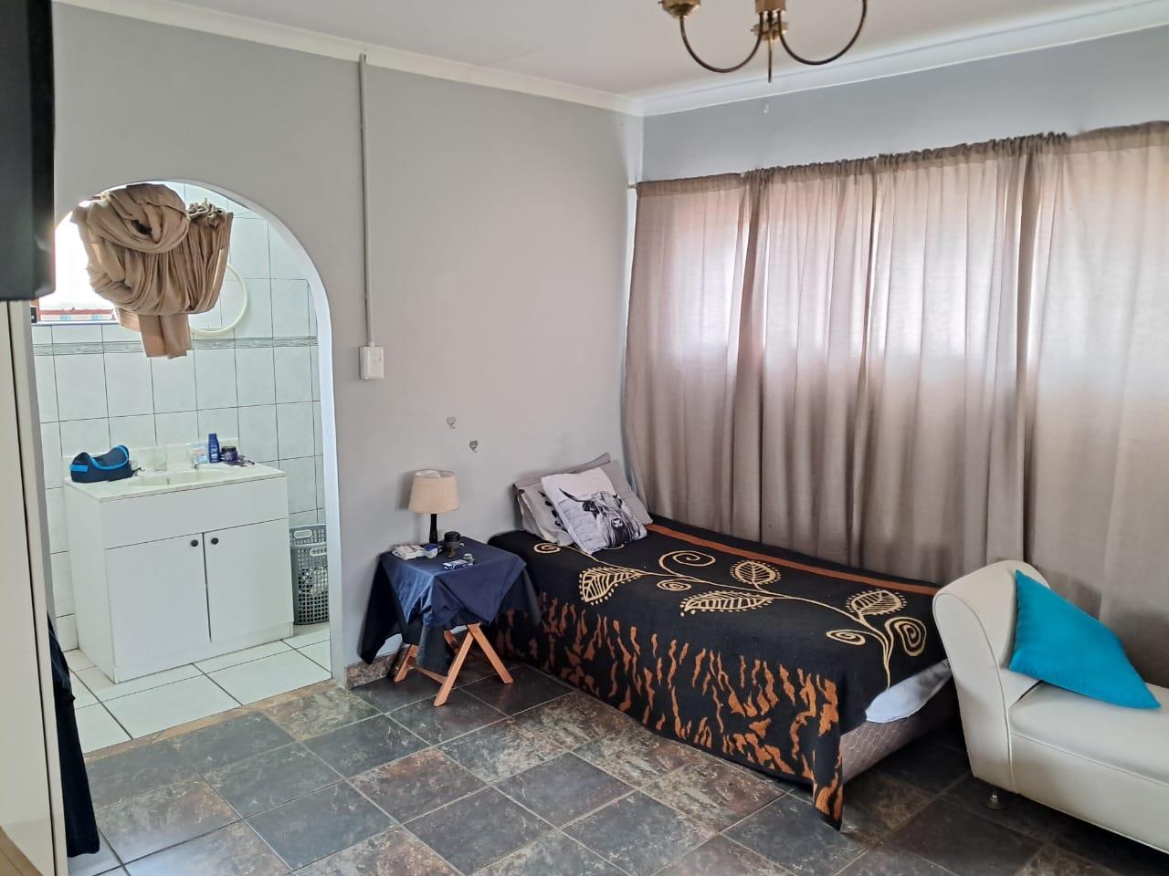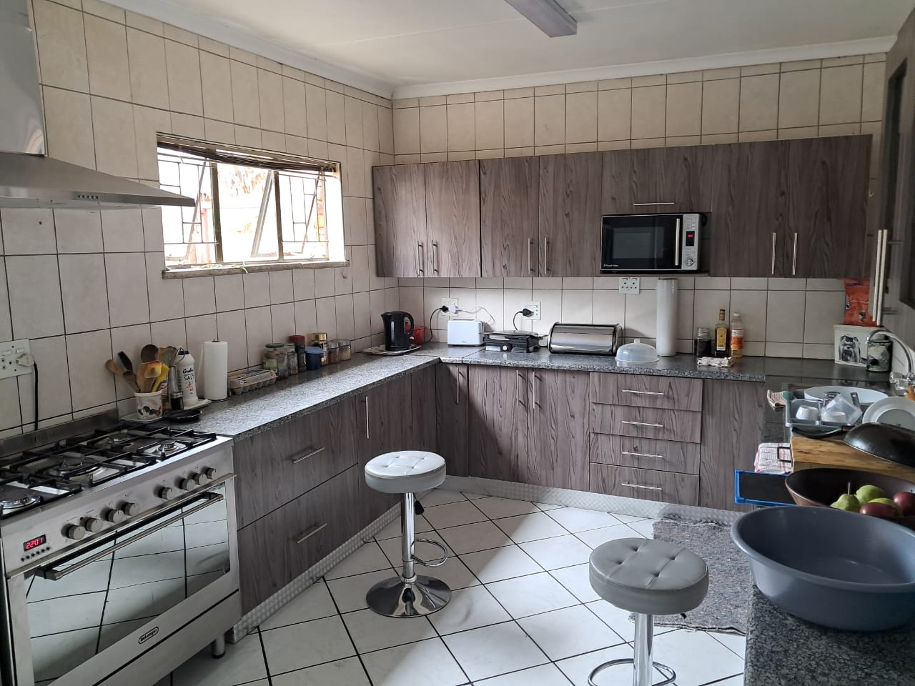 The home features three bedrooms, each with built-in cupboards (BIC), and two modern bathrooms, including an en-suite in the master bedroom. A convenient laundry and scullery offer extra functionality. The property includes three staff quarters, a carport, and a double garage for parking.