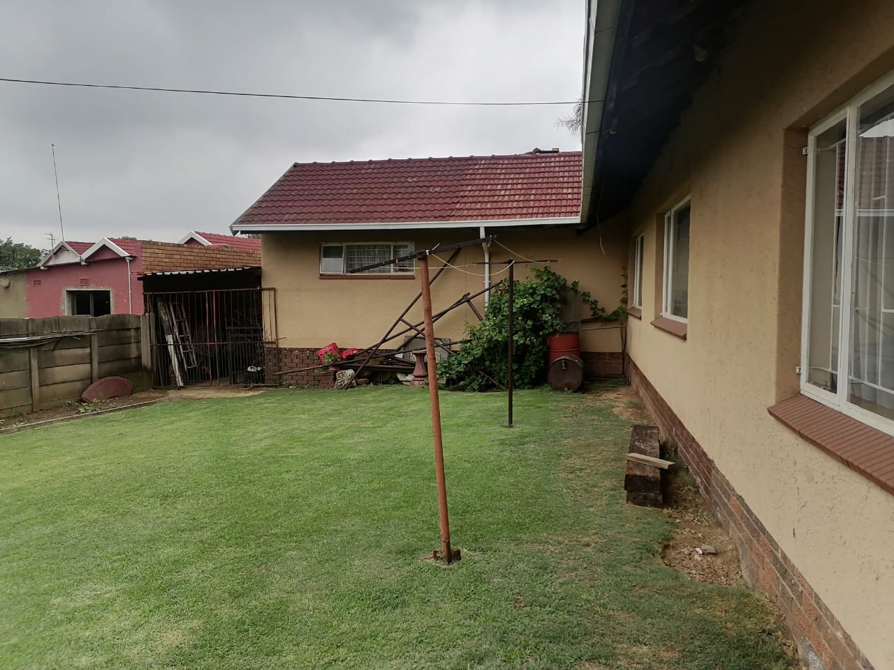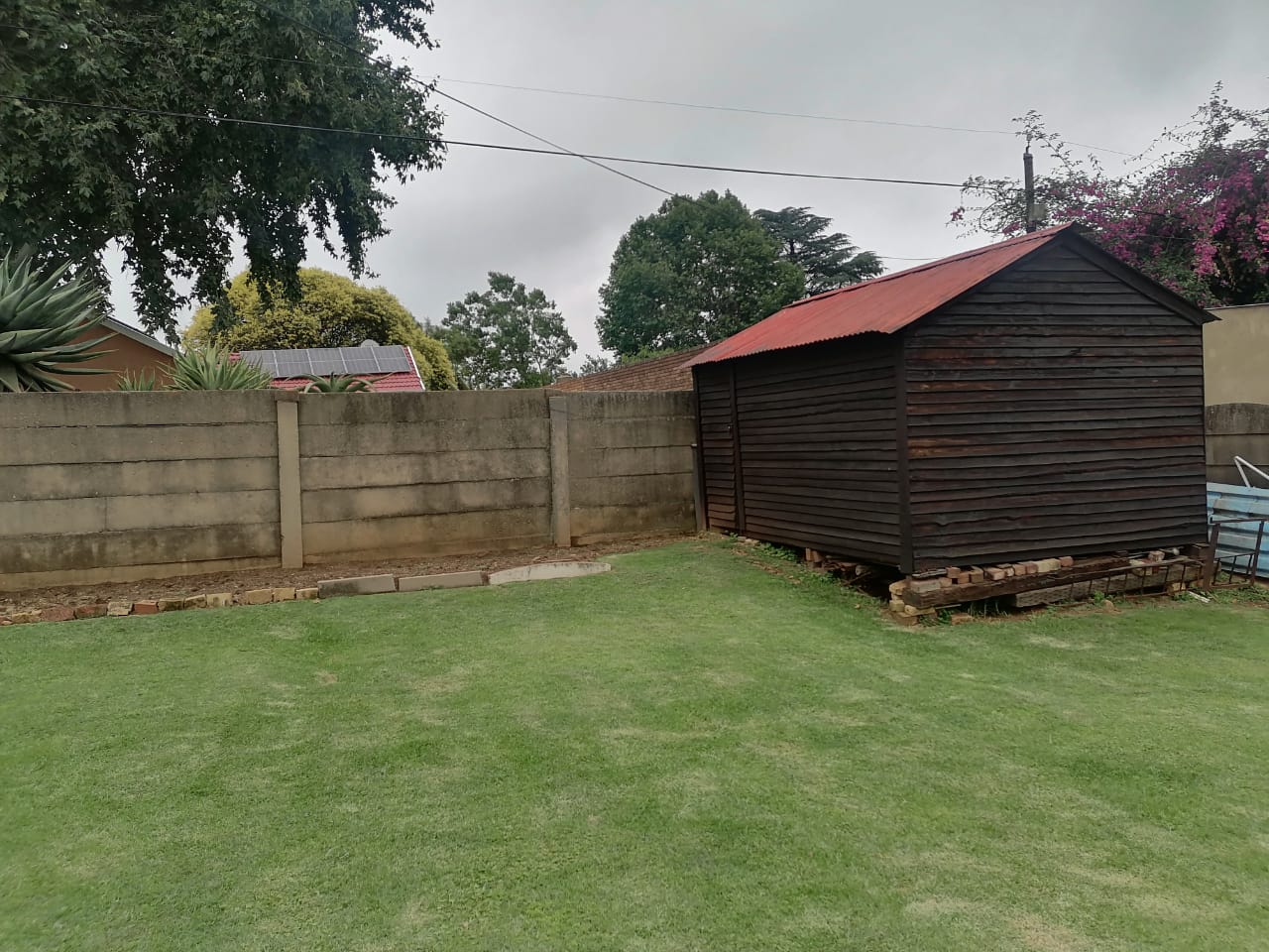 Outdoors, you’ll find a neat, established garden complete with a charming fish pond, creating a peaceful space to unwind. The small covered patio is perfect for enjoying the fresh air. With 2 garages, 3 carports, and staff quarters, this home offers everything you need—and more. A Zozo hut adds extra storage or workshop potential. Pets are welcome, making this the ideal home for animal lovers.
