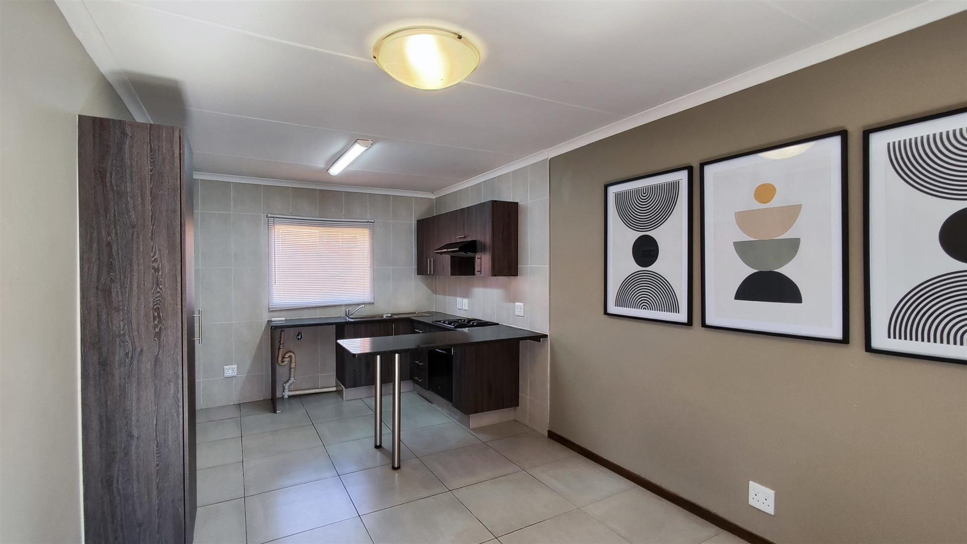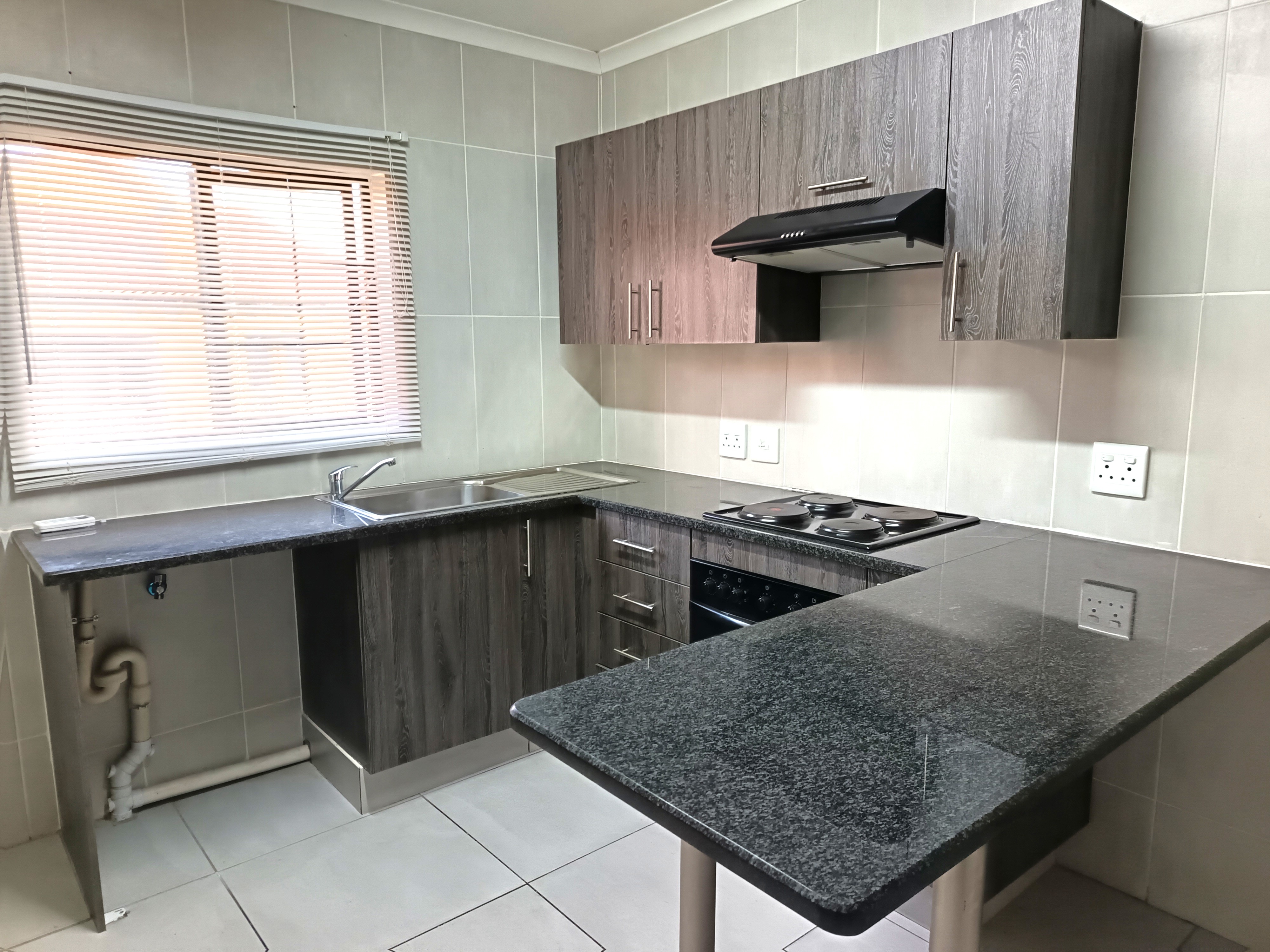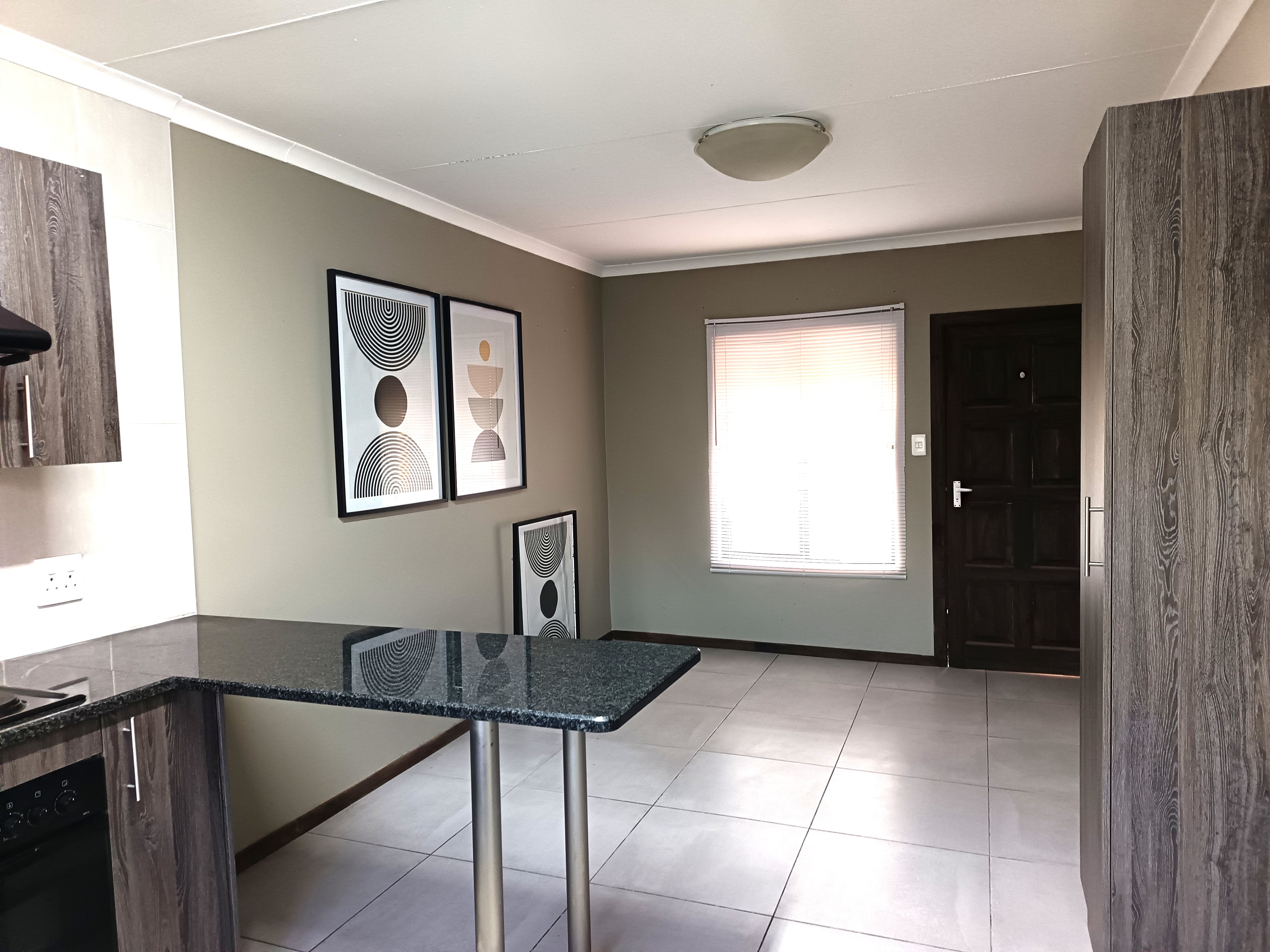 This immaculate first-floor corner apartment offers a stylish, low-maintenance lifestyle in a secure and well-kept complex. The spacious bedroom includes ample built-in cupboards and leads into a sleek en-suite bathroom with a fully tiled shower. The modern, open-plan kitchen boasts granite countertops and flows seamlessly into the tiled lounge area.