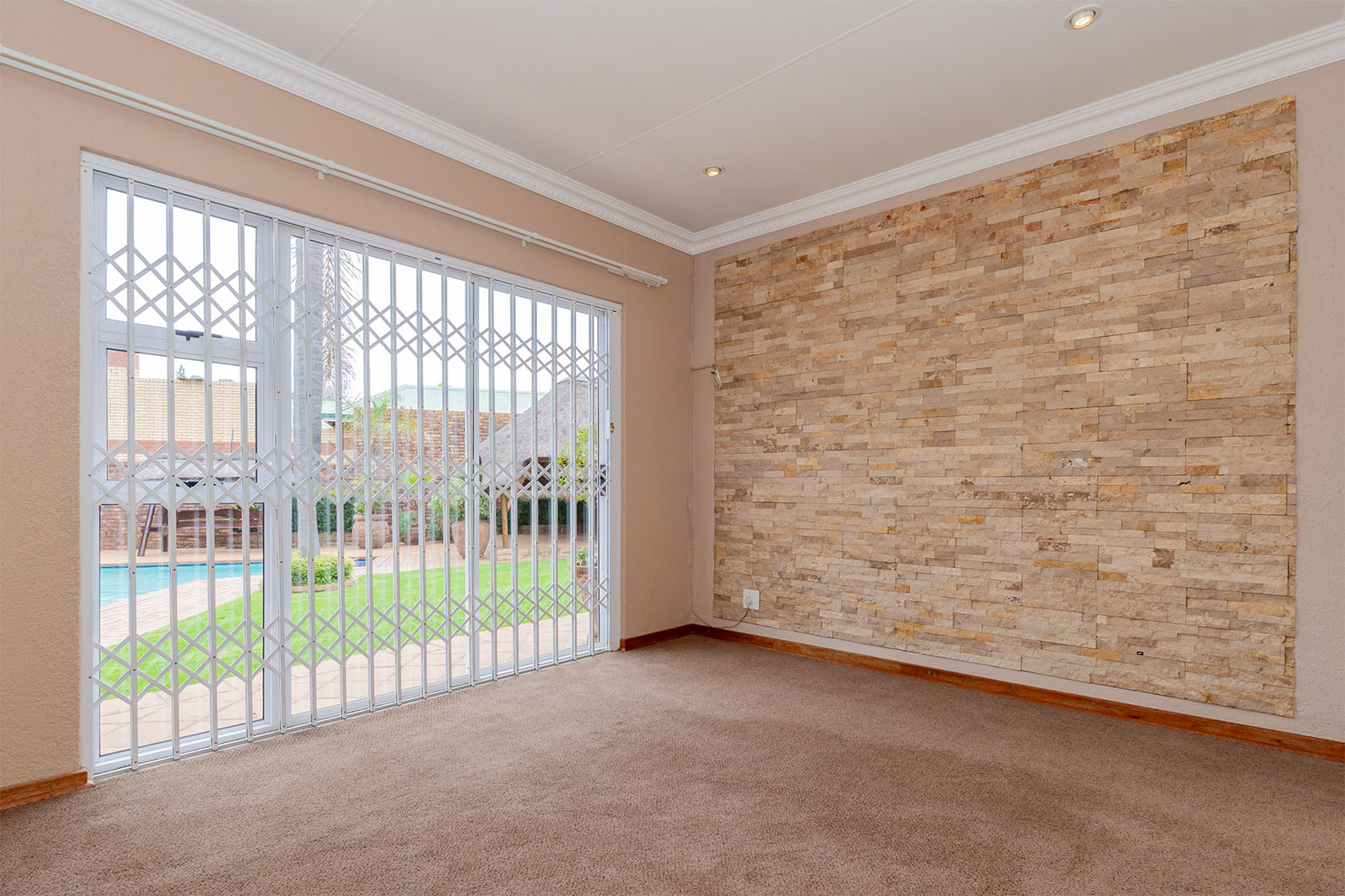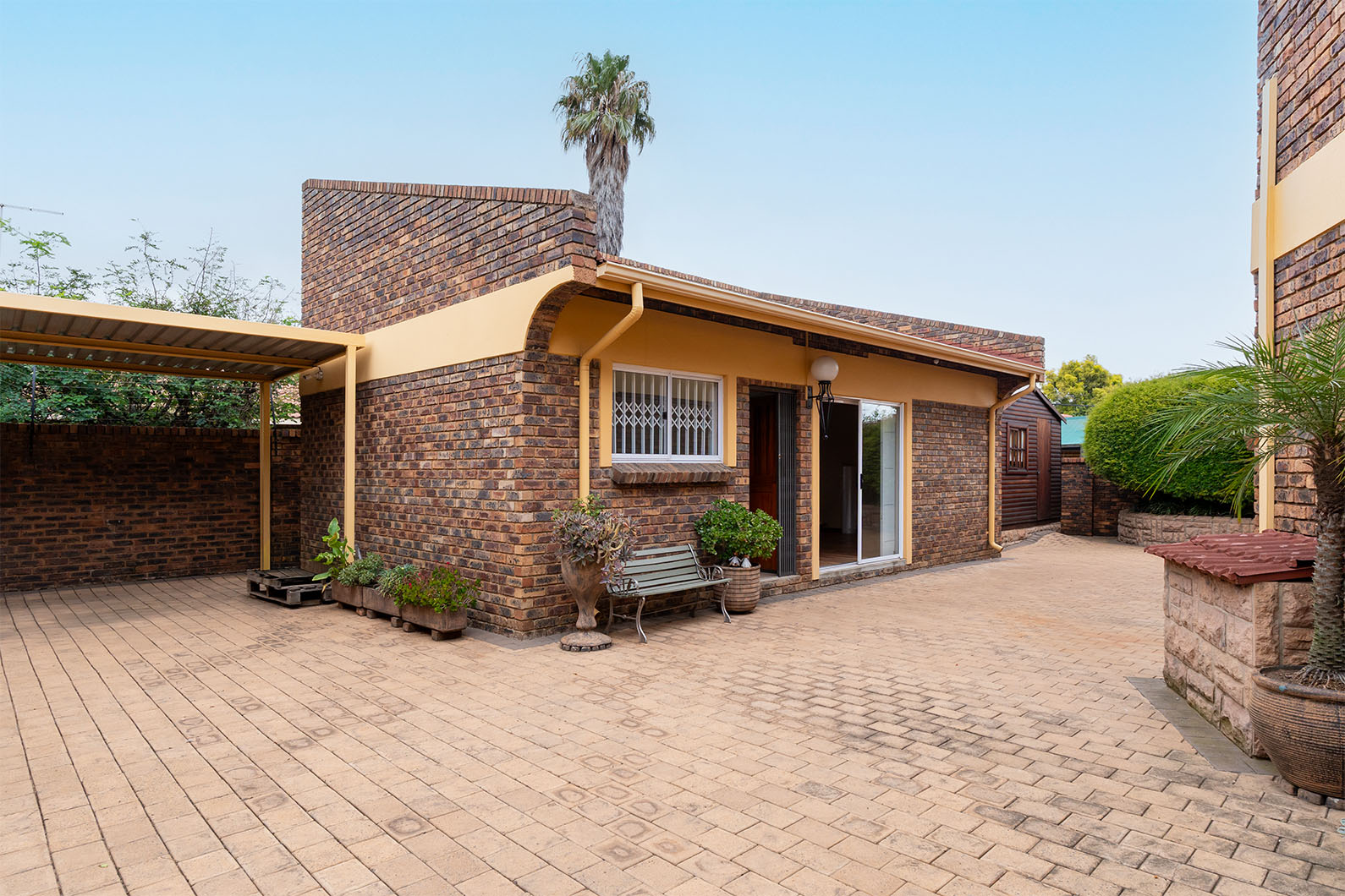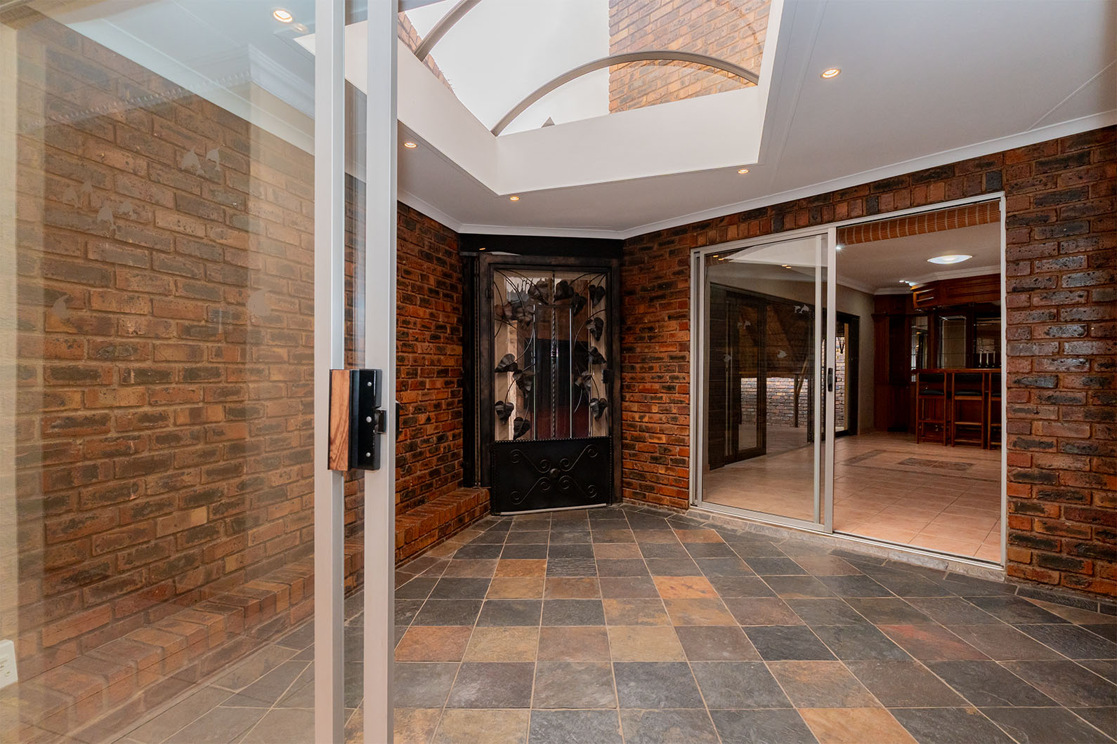The heart of the home is the impressive indoor entertainment area with a built-in bar, flowing seamlessly into the lapa with a built-in braai — ideal for hosting family and friends all year round. An inviting atrium brings natural light and a unique sense of space into the home.