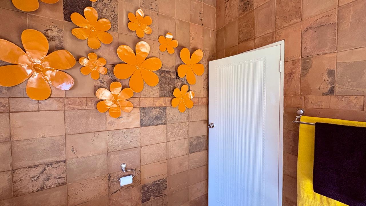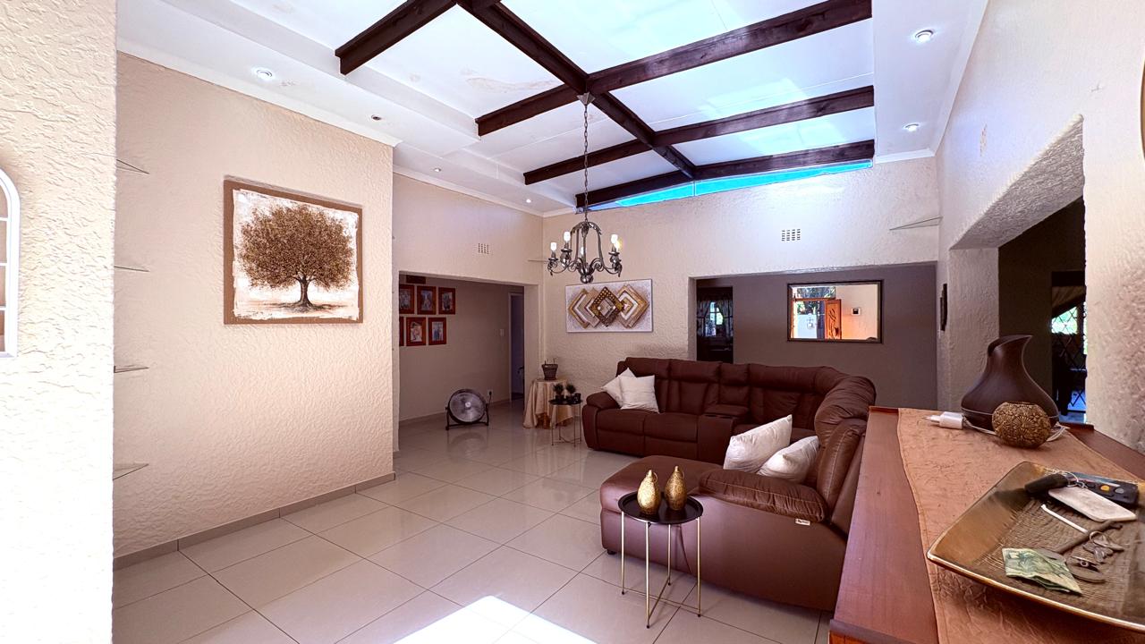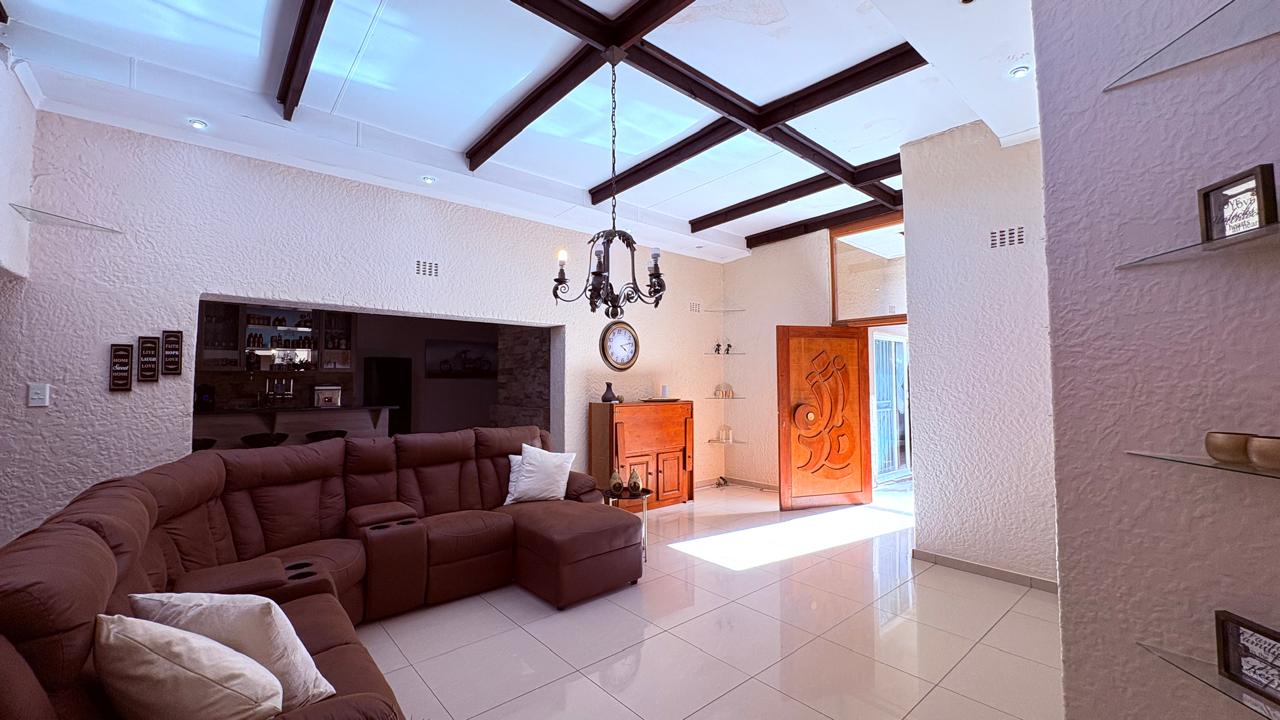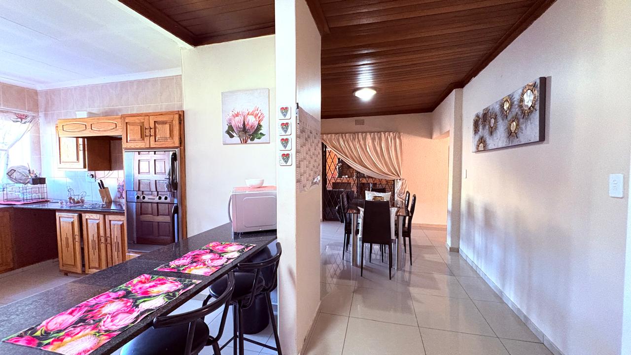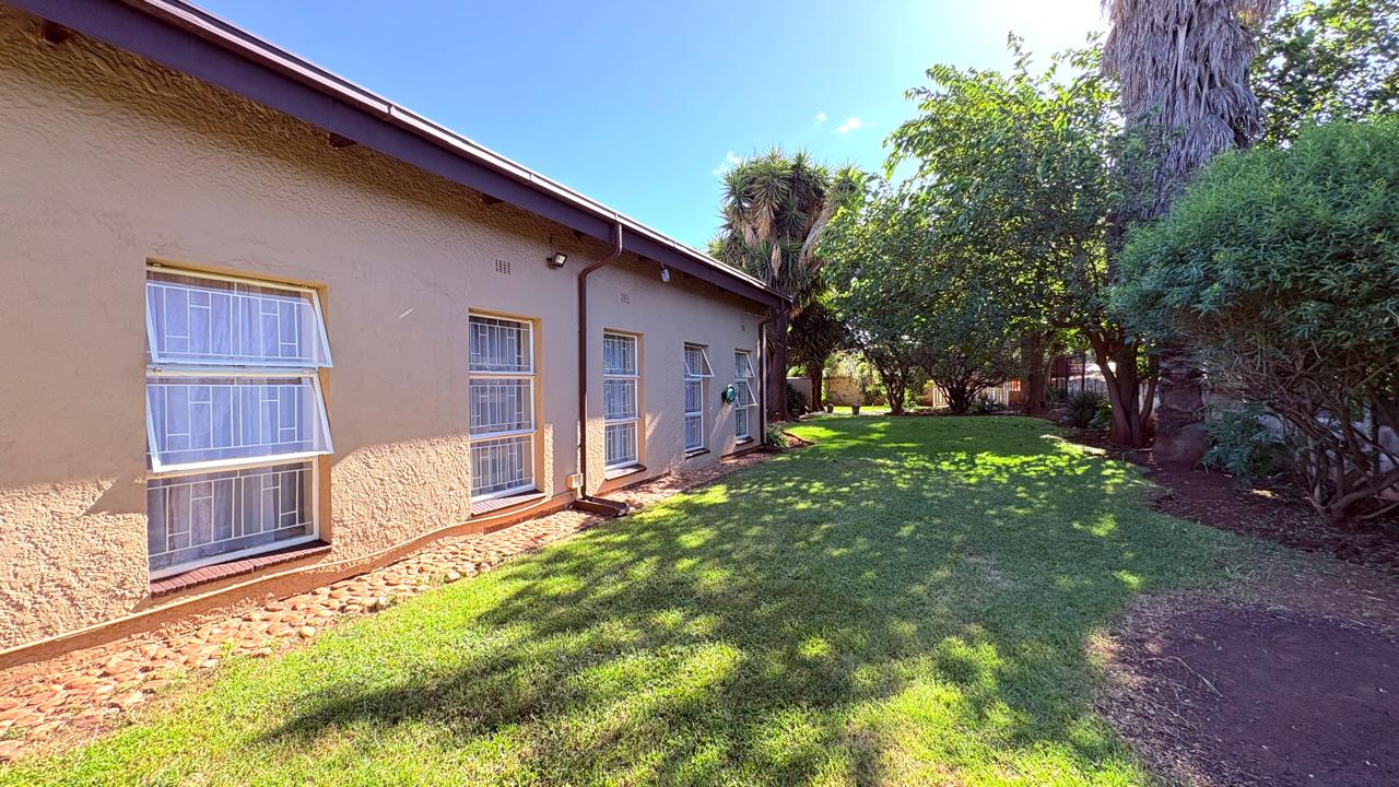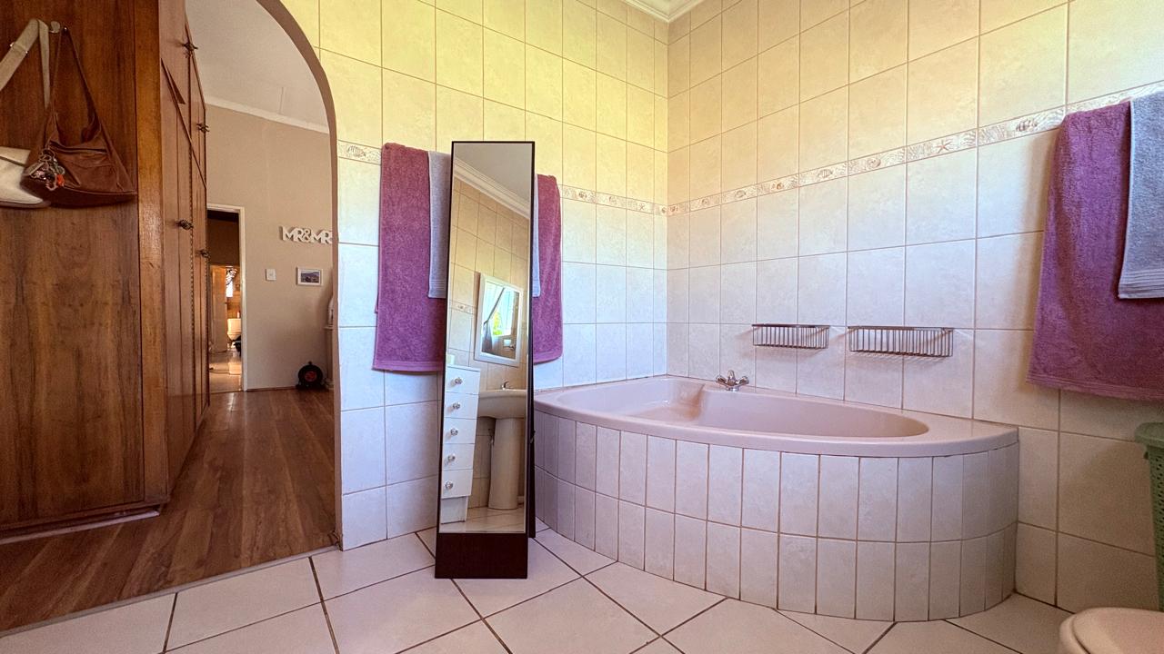 Outside, the property truly shines. The entertainment area includes a built-in braai, perfect for weekend gatherings and family braais. The large, pet-friendly yard provides plenty of room for children and pets to play safely. For those who love to relax, the home also features a beautiful blue swimming pool and a jacuzzi (which just needs a bit of attention).