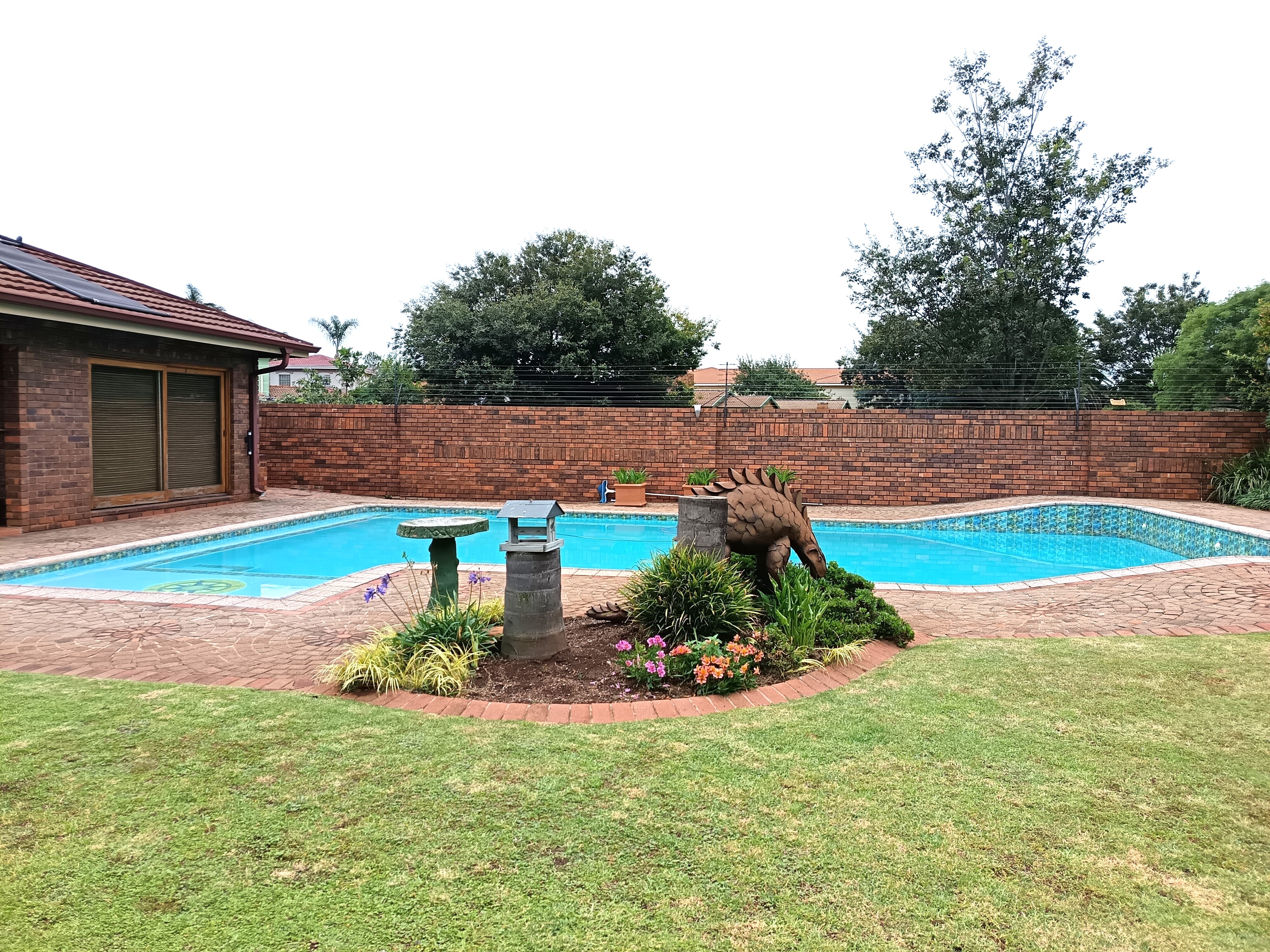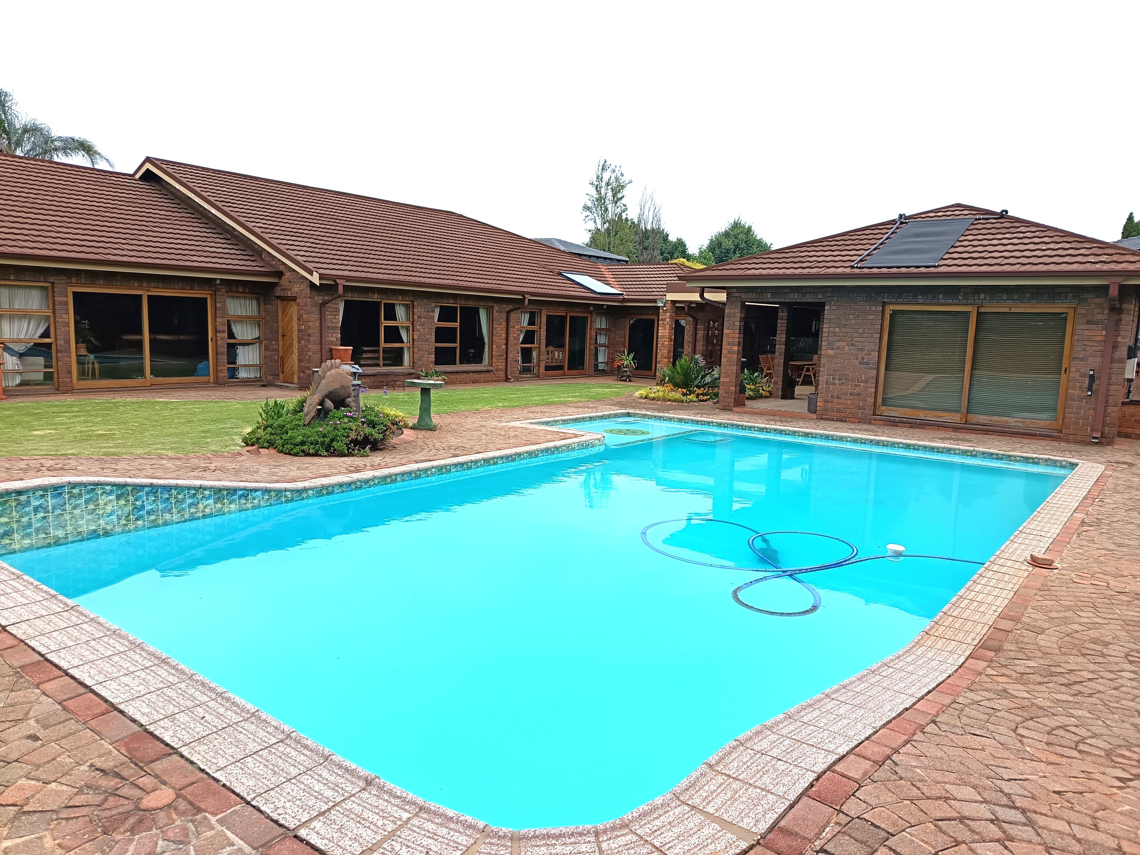 Solar panels linked to geysers and pool.