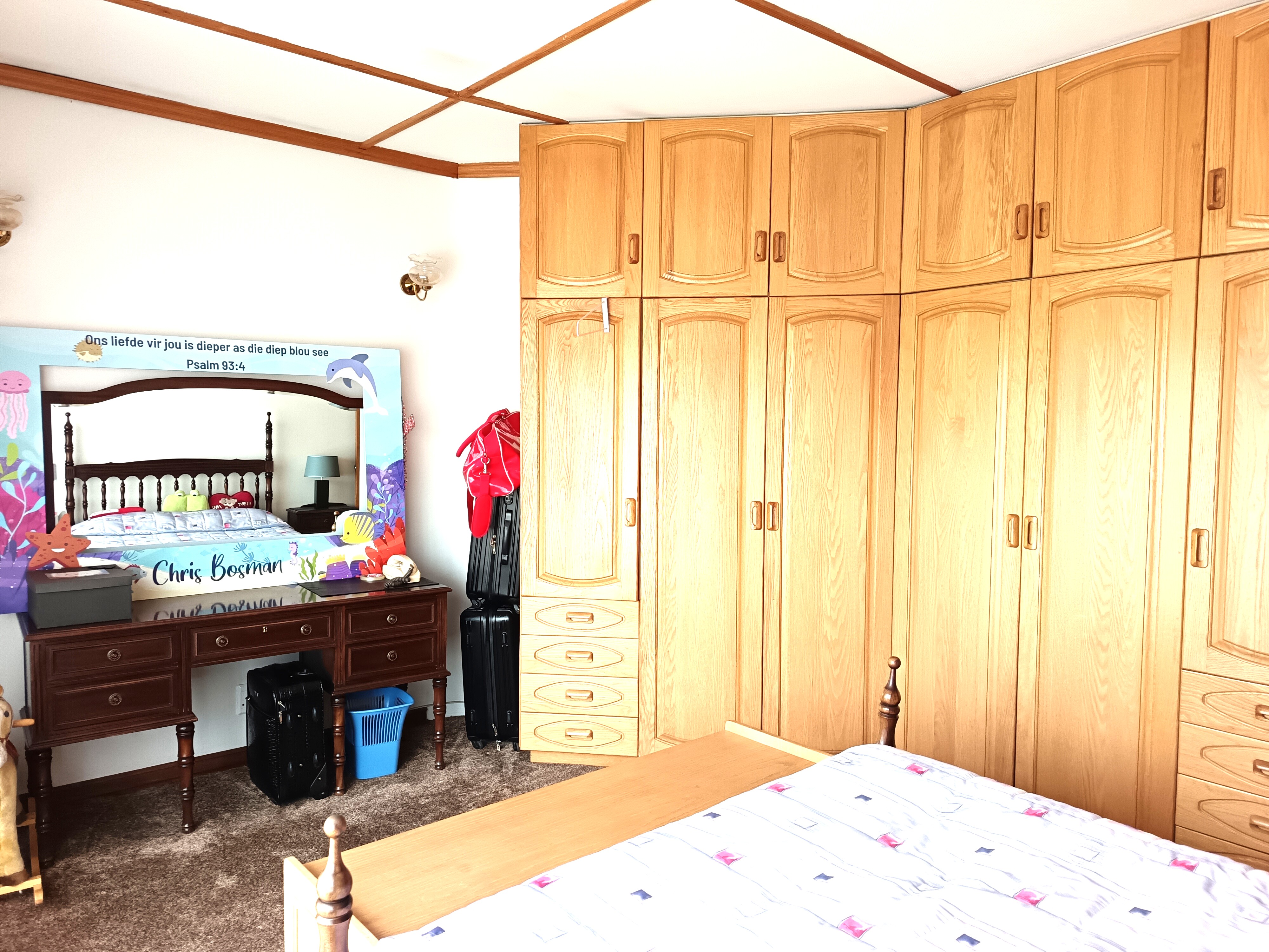 Elegant wood finishes throughout, including Meranti ceilings and solid oak built-in cupboards