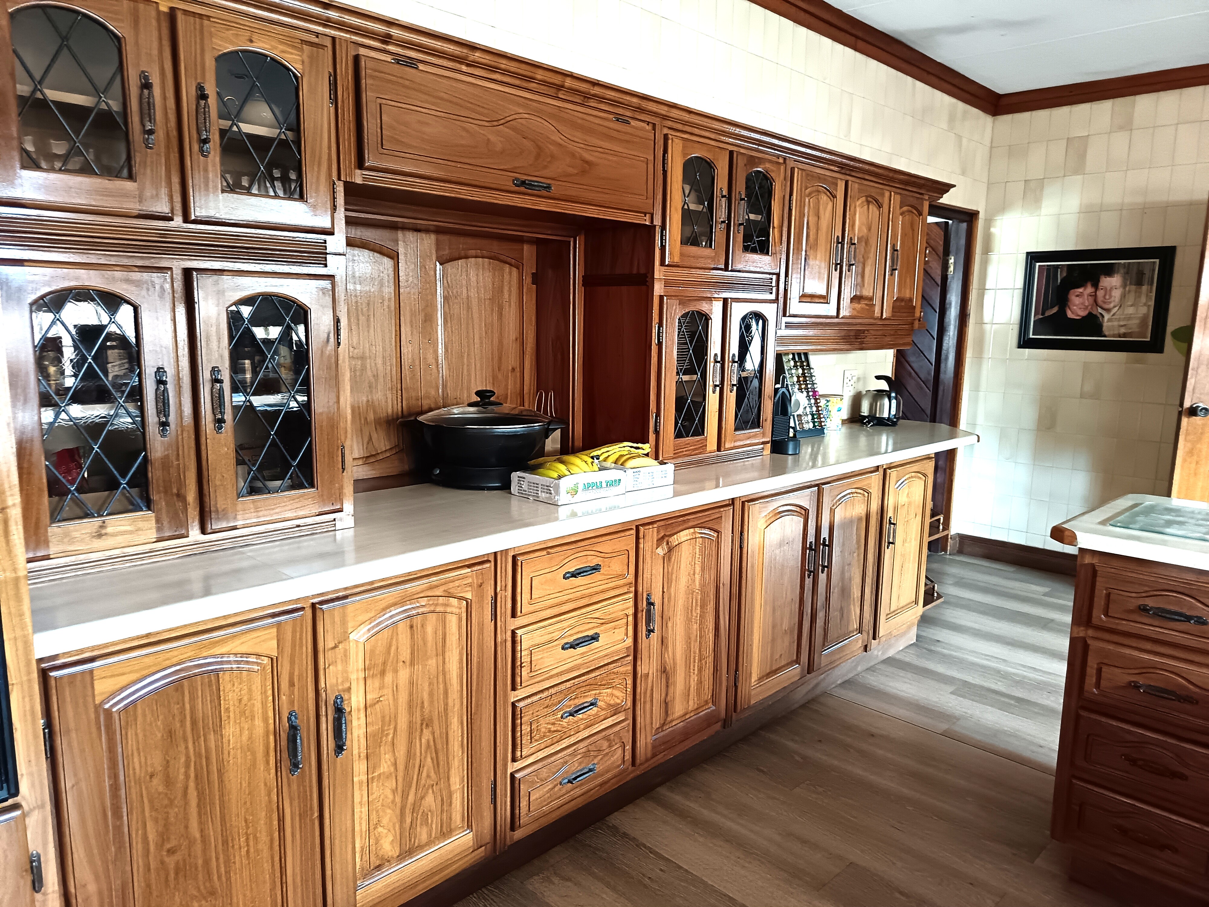 Abundant solid oak cupboards