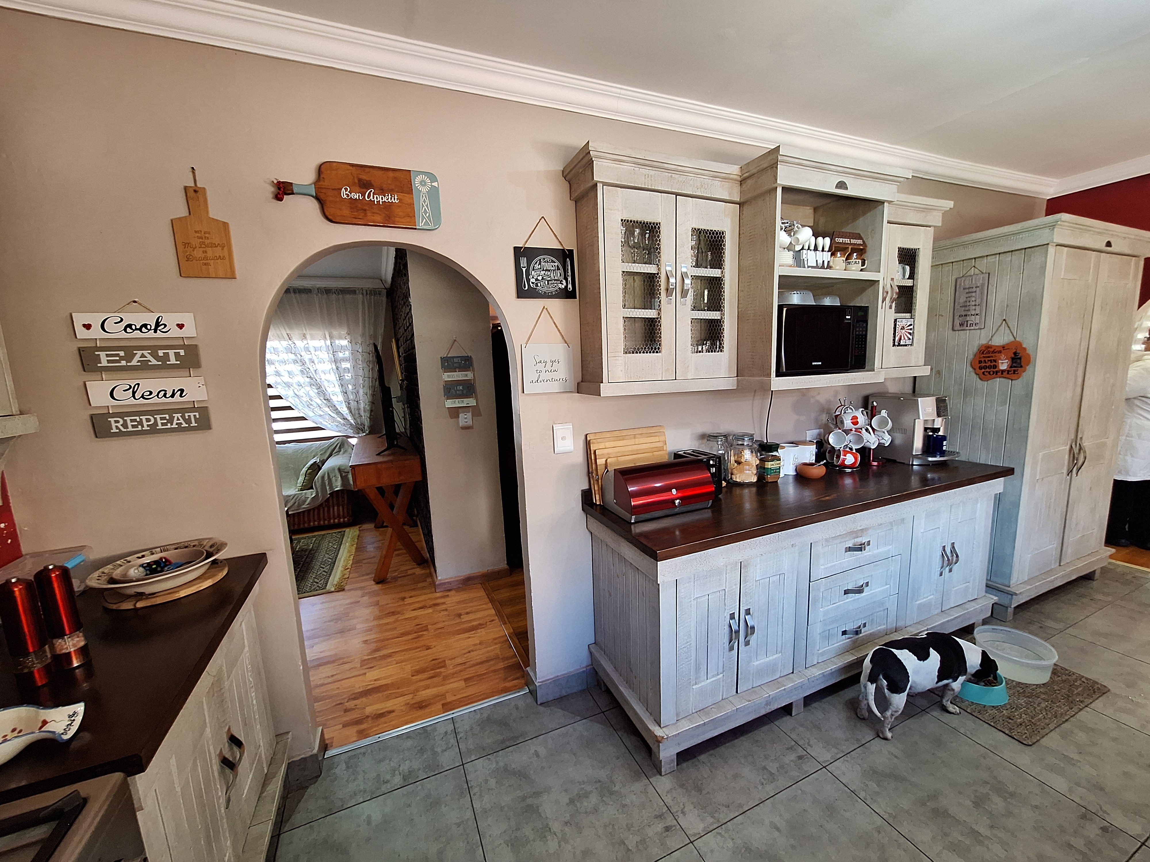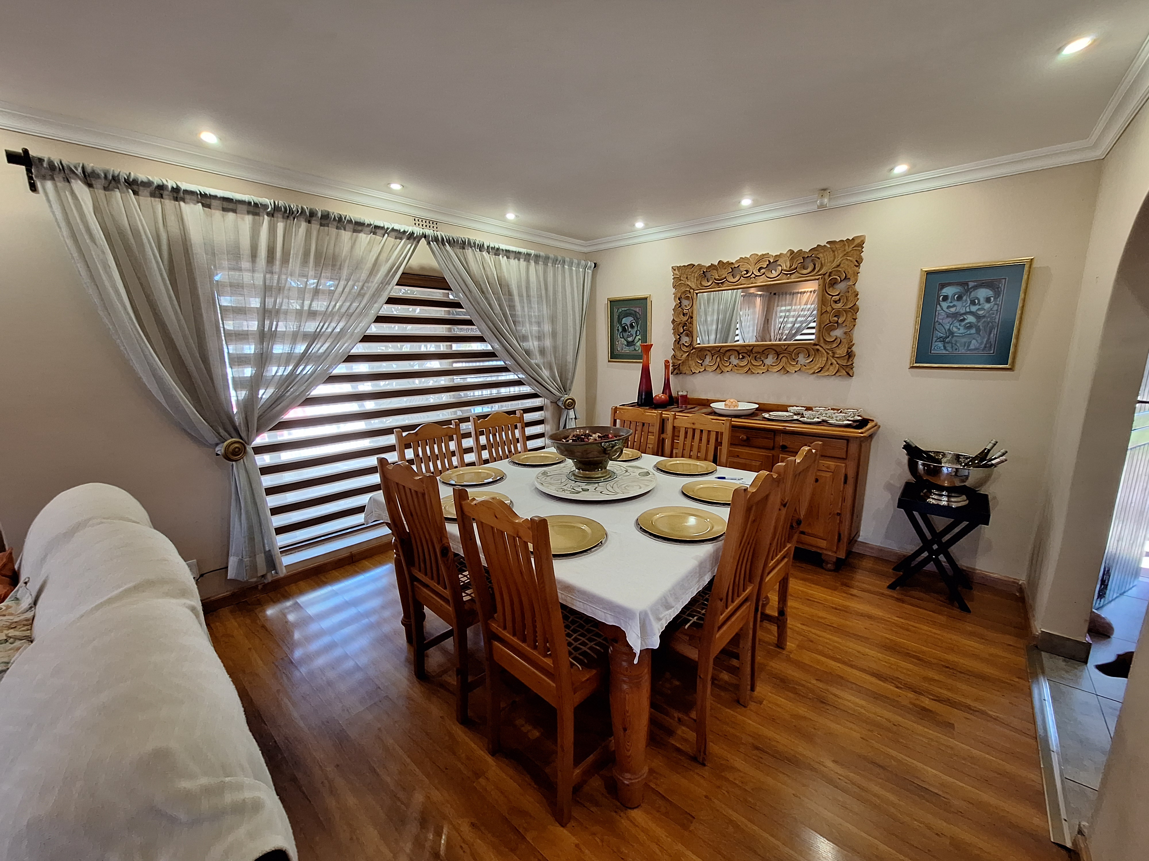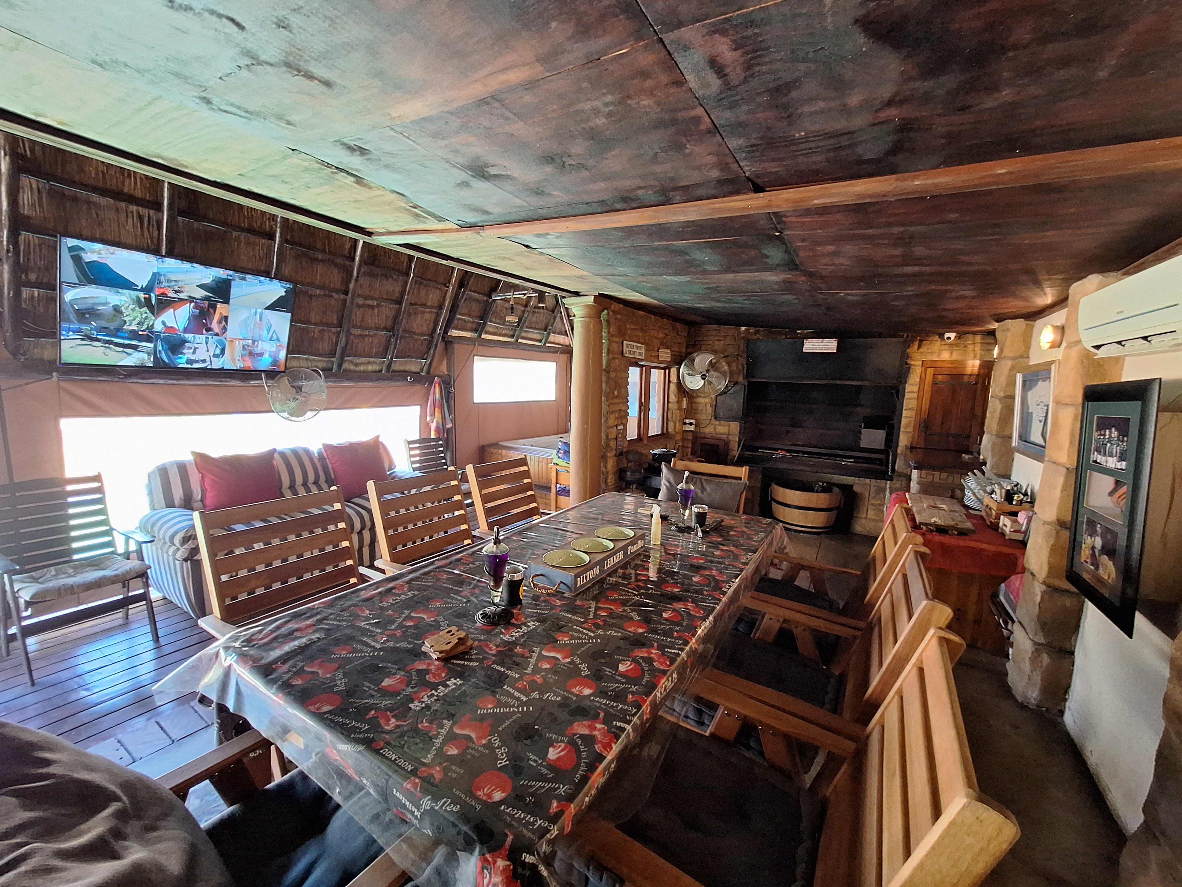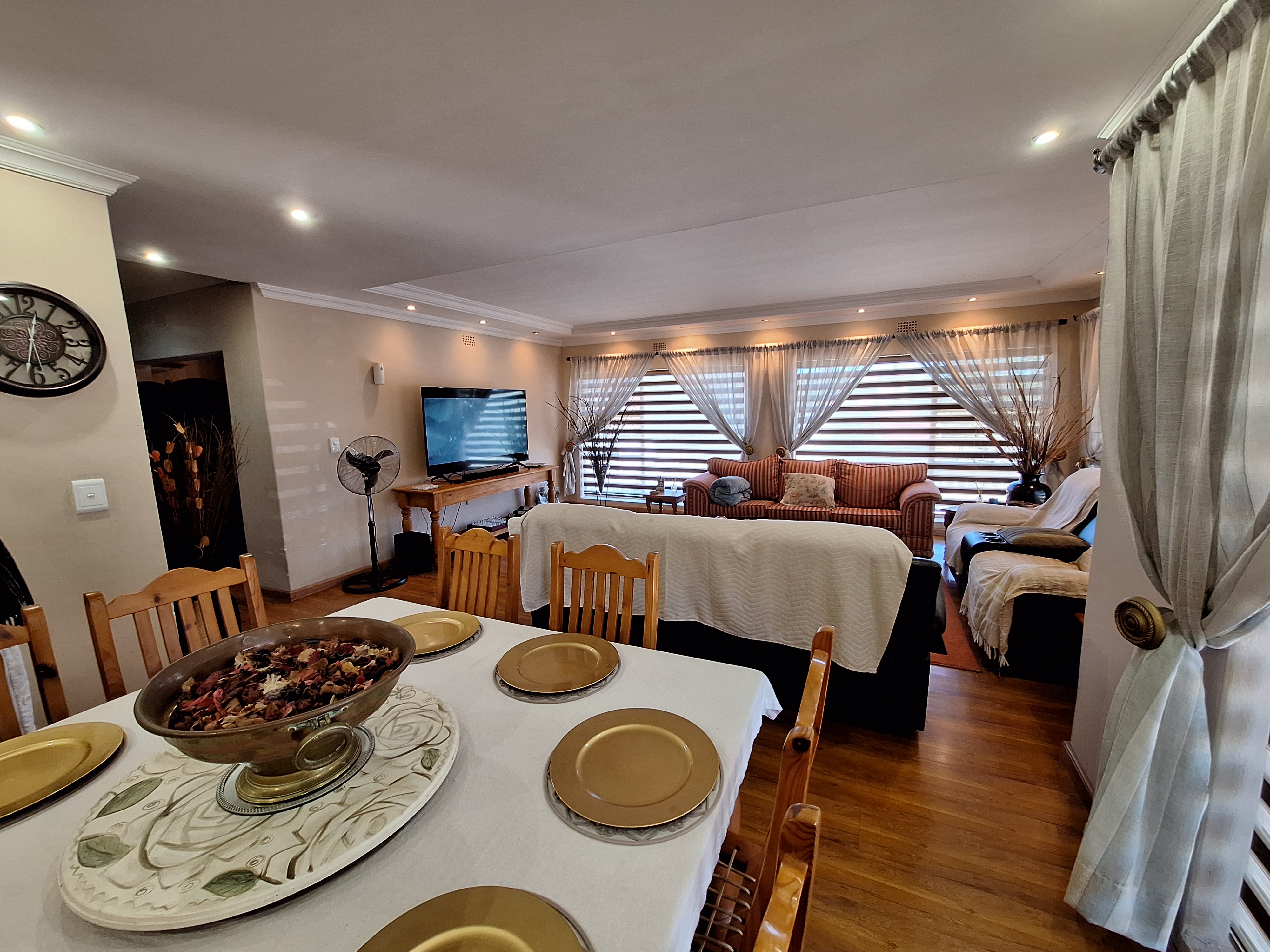 Welcome to this spacious and inviting family home, designed with comfort and functionality in mind. Step onto a generous, covered thatch patio that sets the tone for what’s to come. The home opens into a large entrance hall that flows effortlessly into the expansive lounge and open-plan dining area – ideal for hosting friends and family.