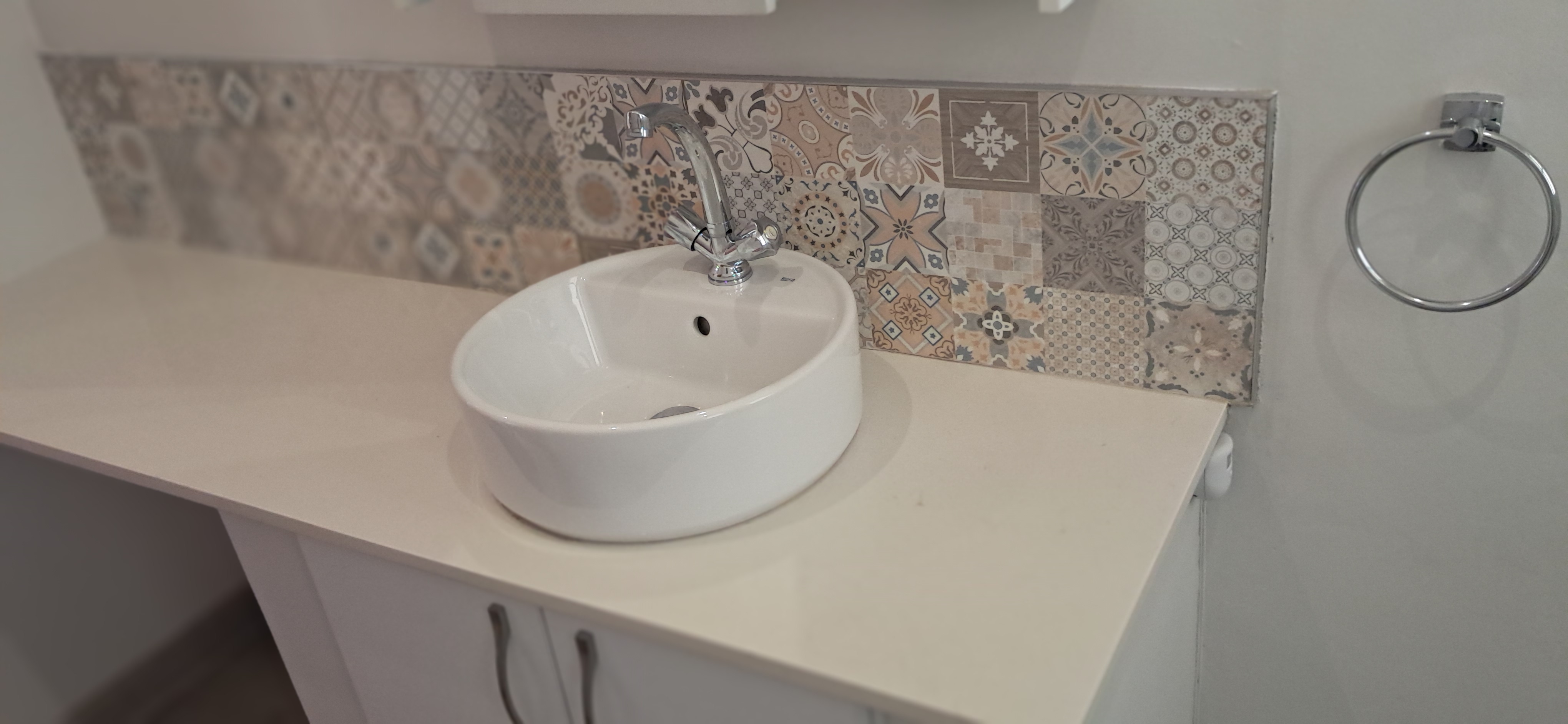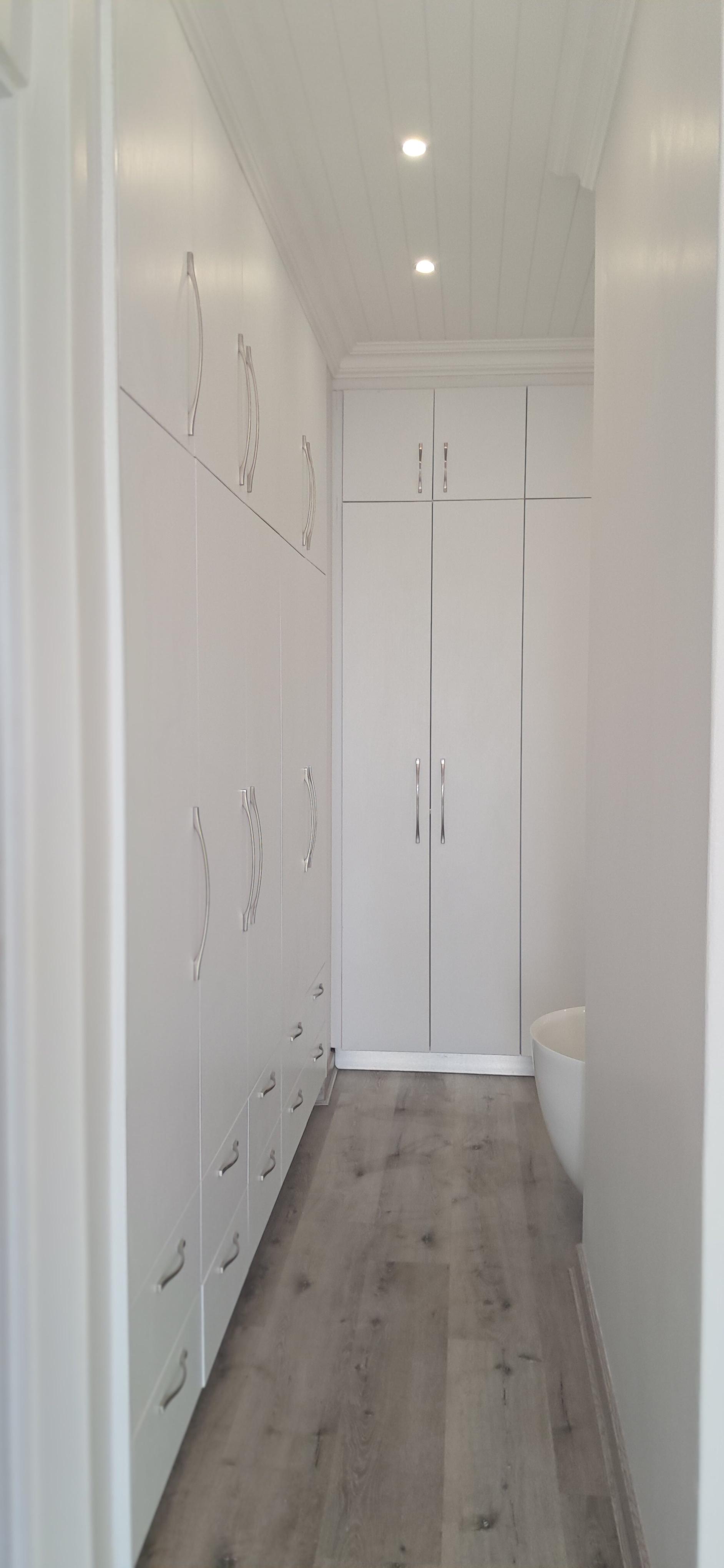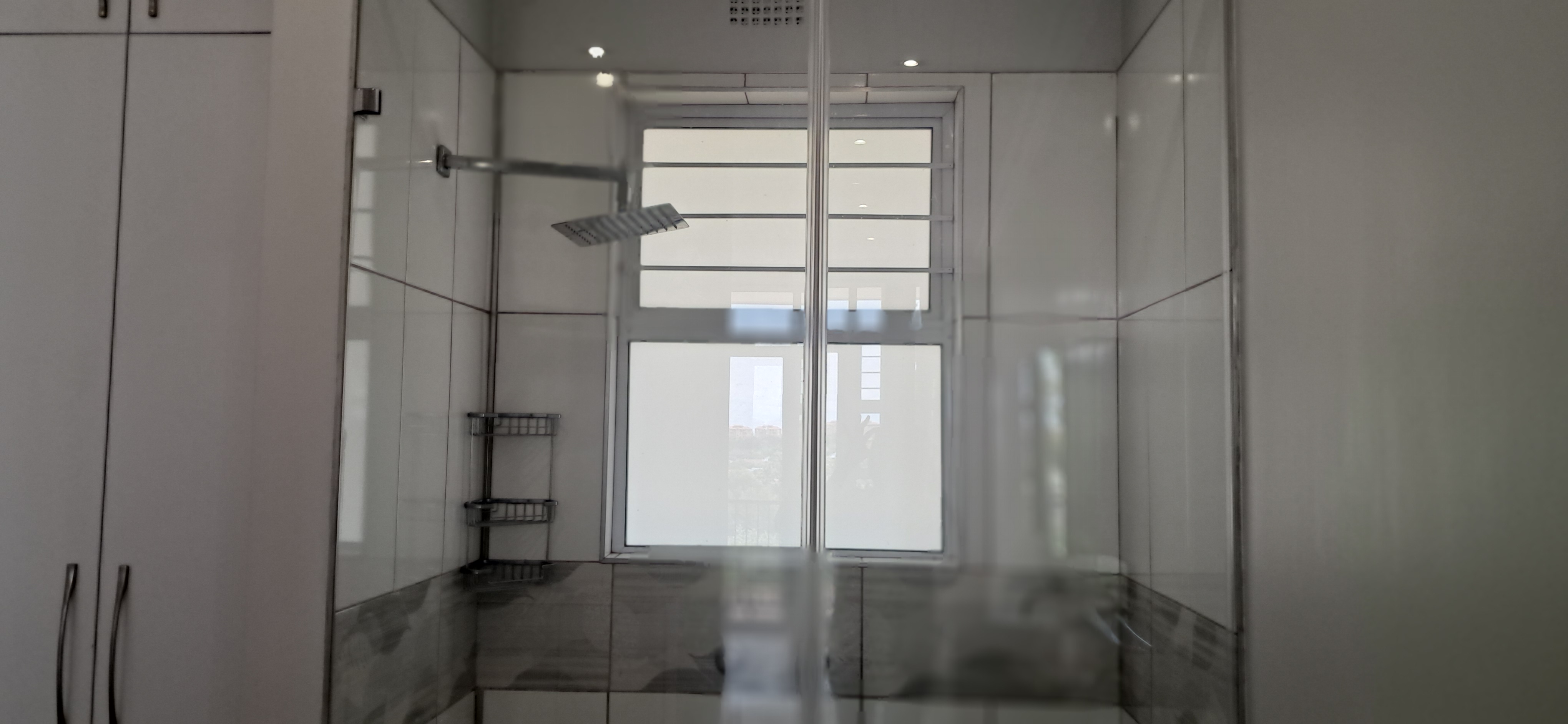 Down the passage is the first bathroom with modern finishes. The first bedroom with a door leading to the balcony can accommodate a queen size bed and offers adequate cupboard space .