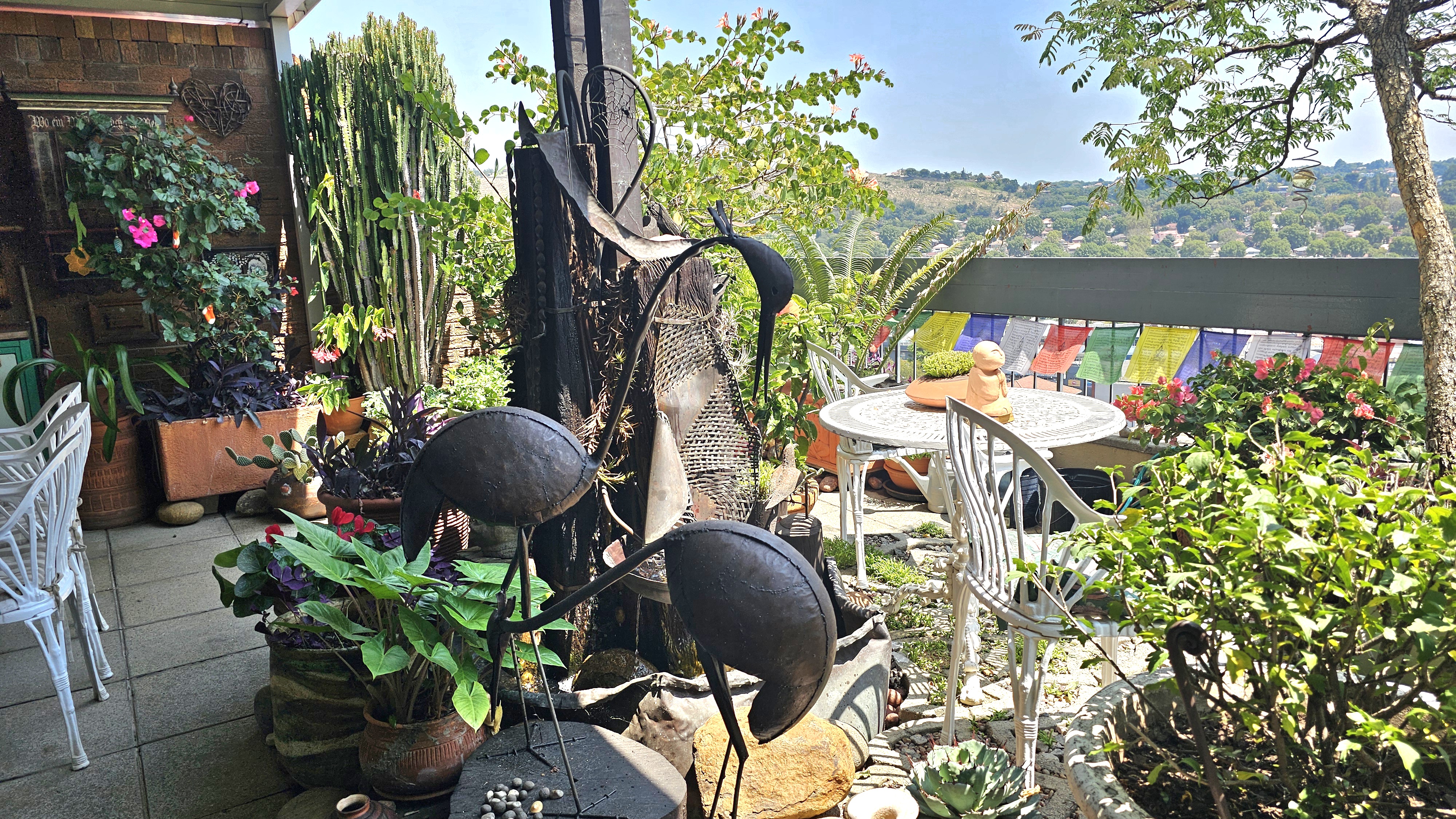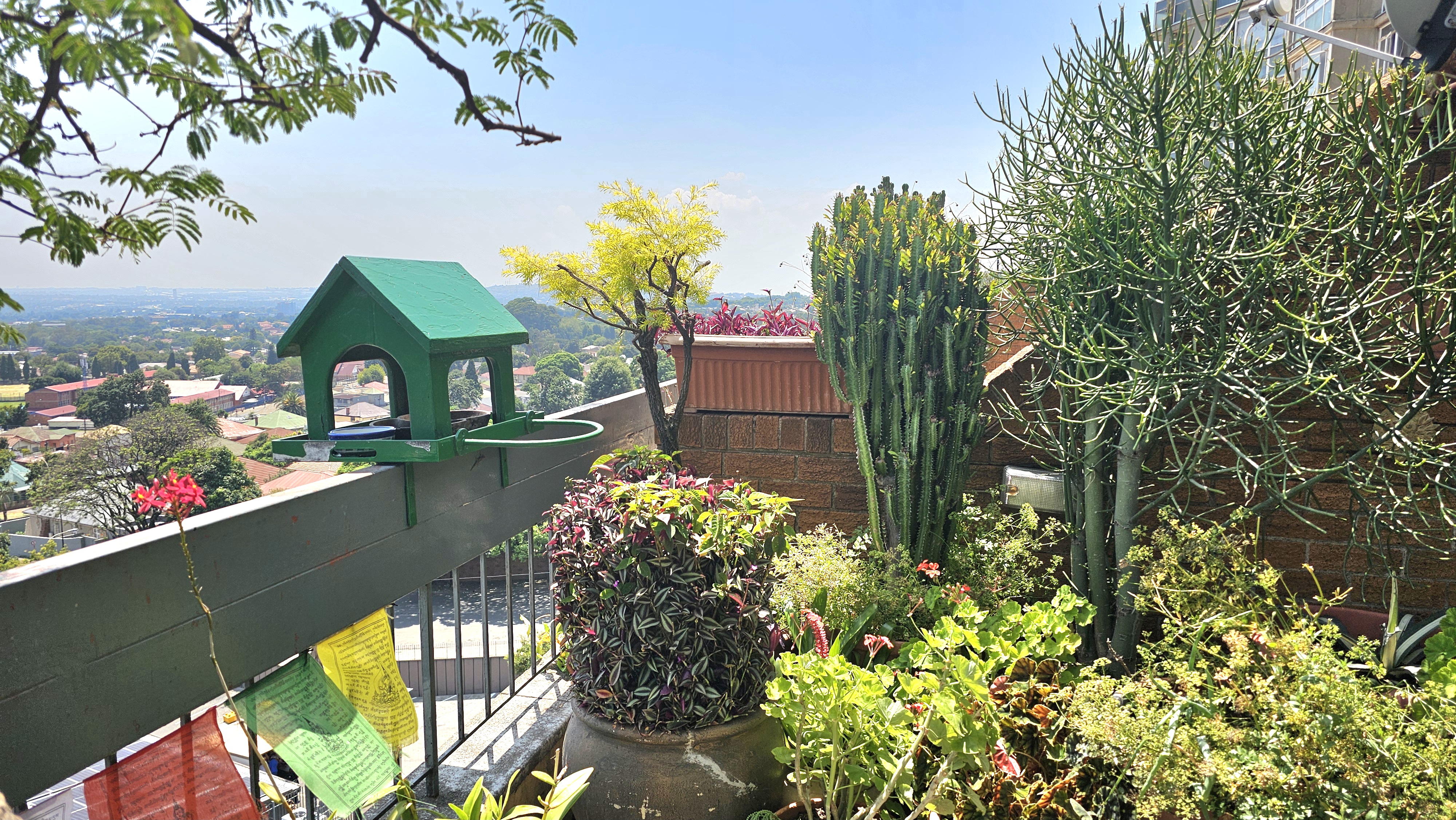Panoramic Views on Kensington from this modern gem. The flow from the indoor living space to the outdoor patio is super convenient, making it easy to move between relaxing indoors and enjoying the fresh air. One of the best parts of this home is the lovely outdoor patio. A stone throw away from Shoprite and other amenities, in the heart of Kensington. This stylish unit has a bedroom with carpets, plenty of built-in cupboards. Enclosed balcony with sliding door that open out to the patio - plus trelidoor burglar bars. Spacious lounge and dining room with a sliding door that opens out to the patio, that boasts of breathtaking views that will leave you speechless !!! With its elevated position, you'll feel like you're on top of the world, taking in the stunning panoramic views of Kensington landscape. Half of the patio has a fitted retractable awning on the balcony, perfect for alfreso dining or relaxation... perfect for the discerning buyer !! Modern kitchen with plenty of built-in cupboards, stove with extractor fan, fittings for two appliances provided. Bathroom is modern with a bath and packing space. Separate linen cupboard. Potted garden with exotic flowers, soothing water feature, beautiful wall decorations, steel table and chairs (seating 6 people). Separate 2 chairs and table at the water feature. ( Include in the price if full price is paid ) Other items may be included with sale. Excellent security, access entrance into the building, electric fence around the building. One underground parking. PLUS : Lock up storage room on the concrete roof of the building - Optional at an extra cost. - This cost is included in the levies !!! This unit is a rare find, offering the perfect blend for a retired couple or the young enthusiastic couple !!! Do not miss out !! Call for a private viewing.