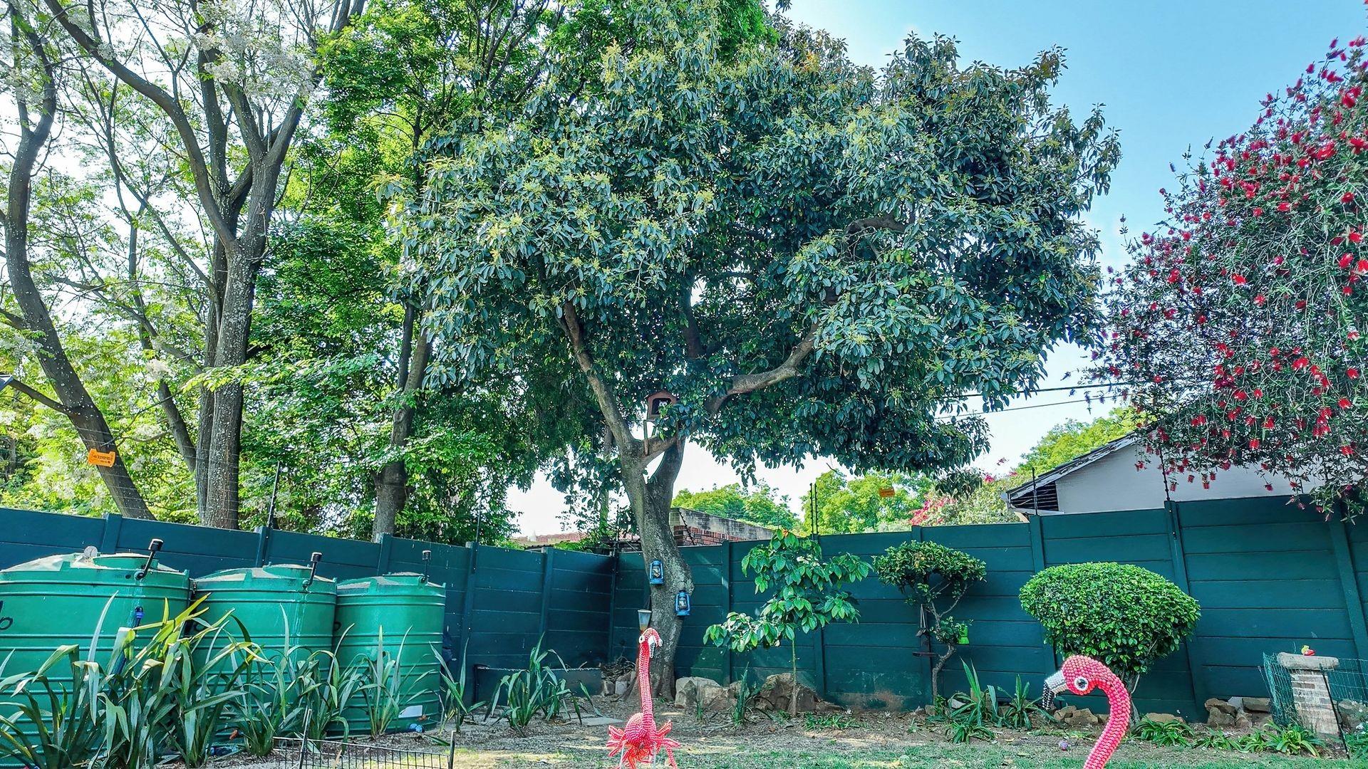 Additionally, the property is equipped with three JoJo tanks that hold 2,500 litres each of high quality water as goes through a sophisticated filtration system sourced from a newly installed borehole. Plug in system for the generator. The garden overlooks a sparkling pool and is enhanced by a thriving avocado tree that produces loads of fruit.
