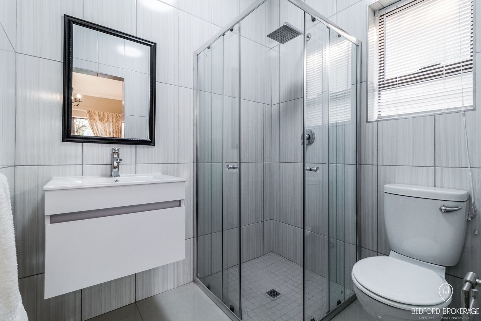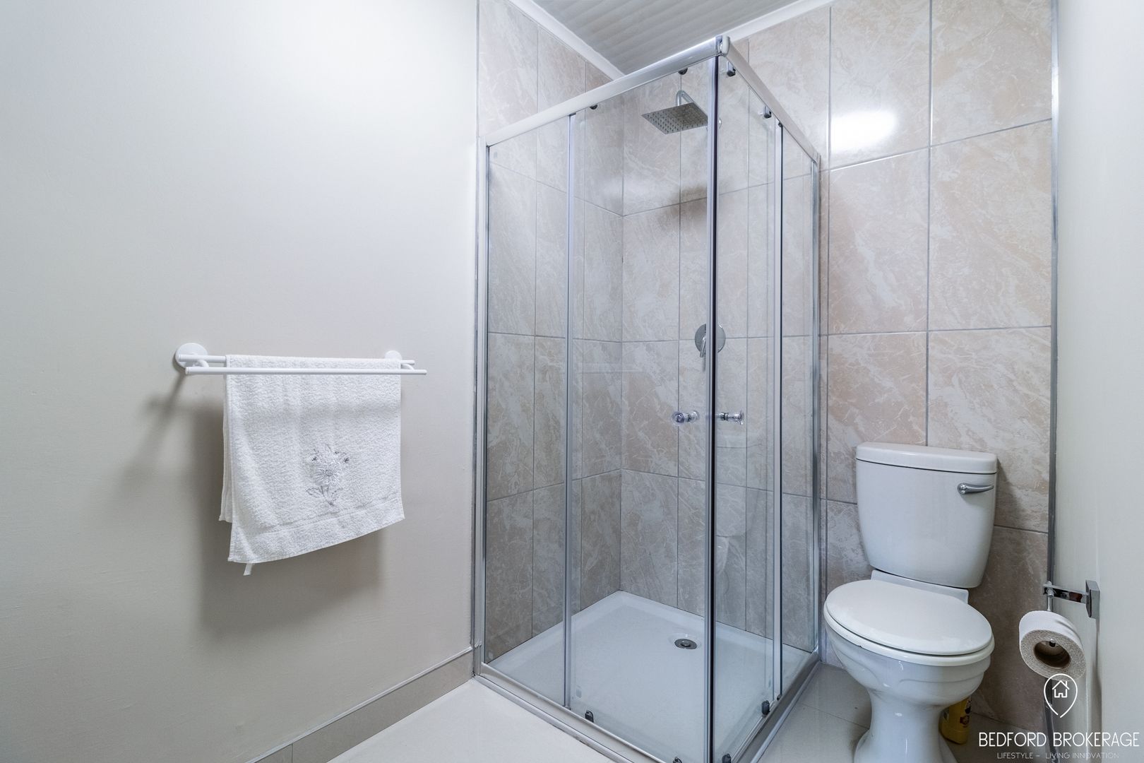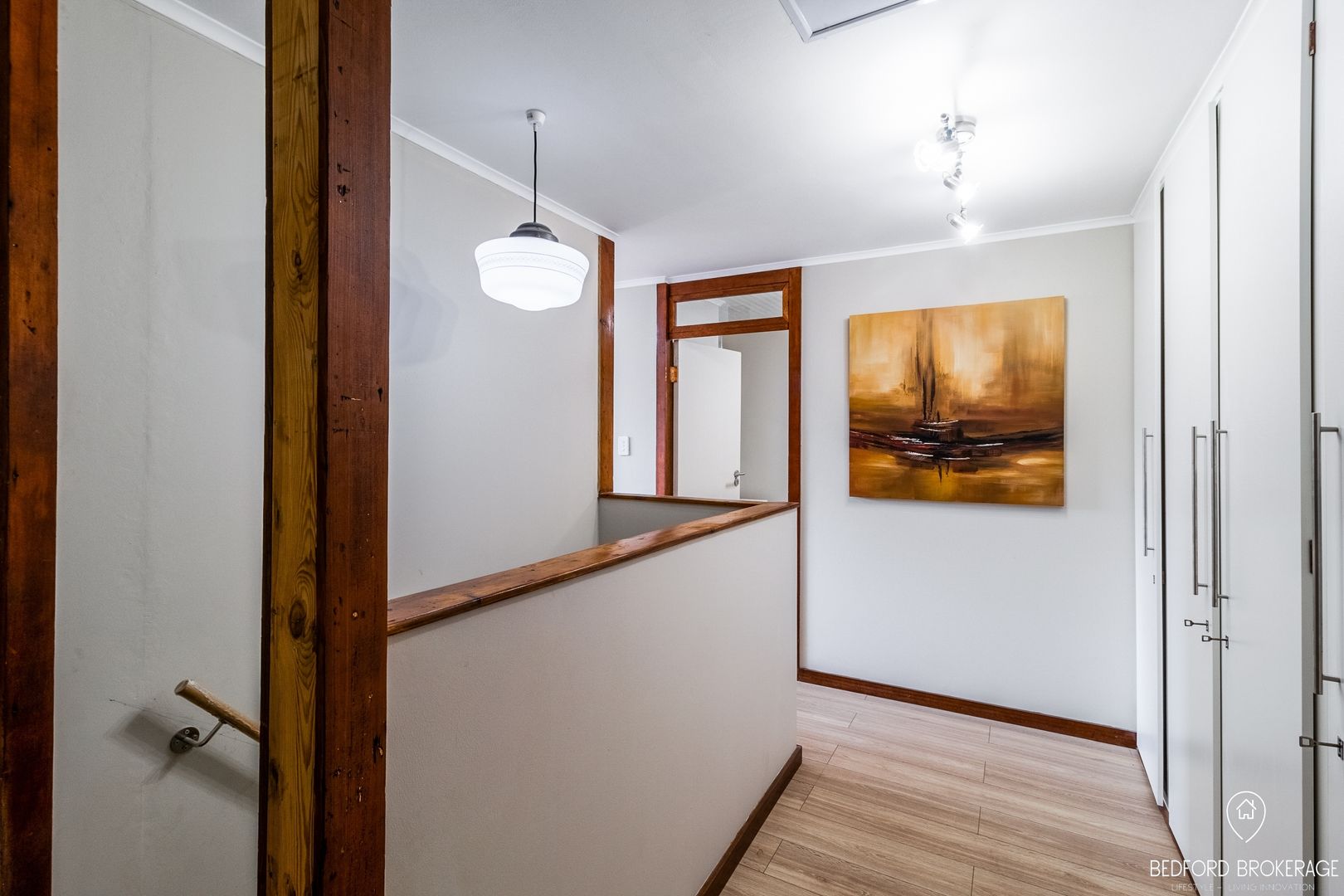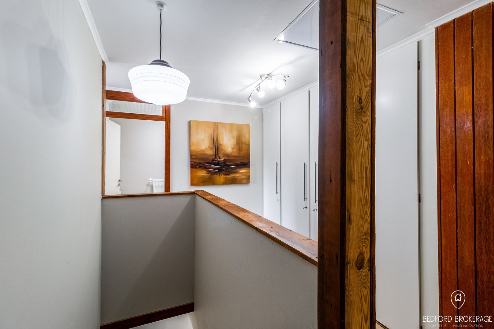 Upstairs, there are linen cupboards and additional storage, along with one en-suite bedroom with a shower. All windows have aluminum frames.