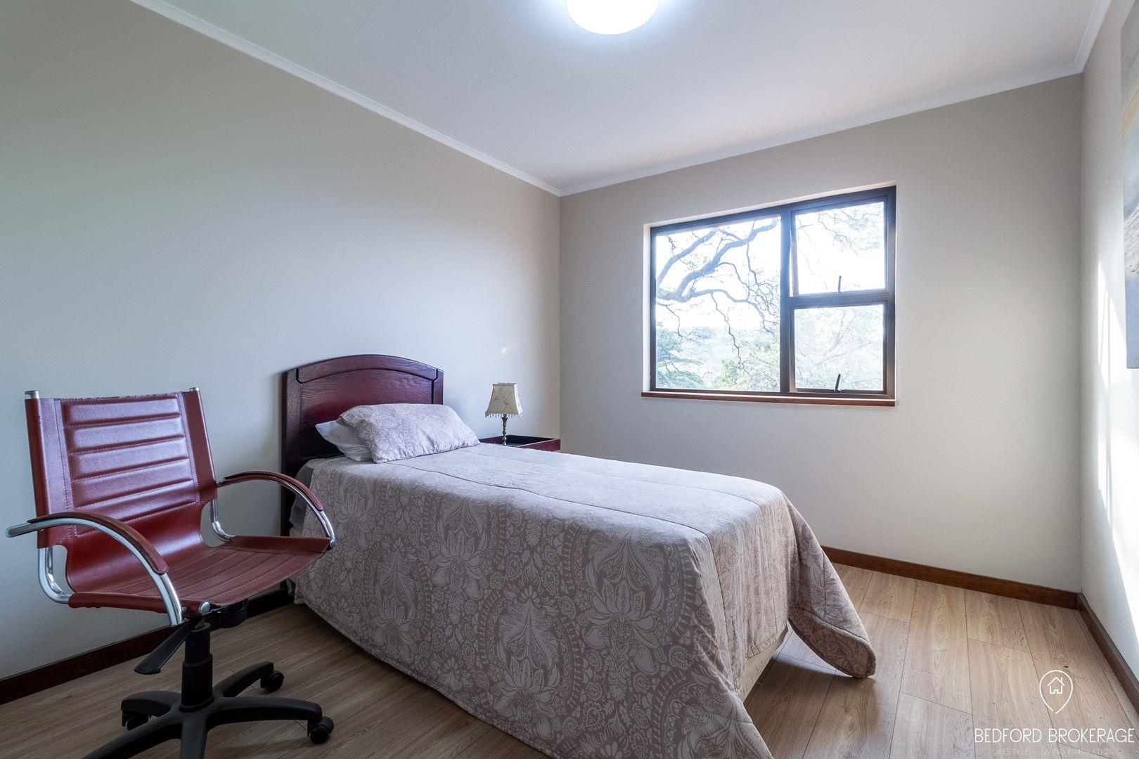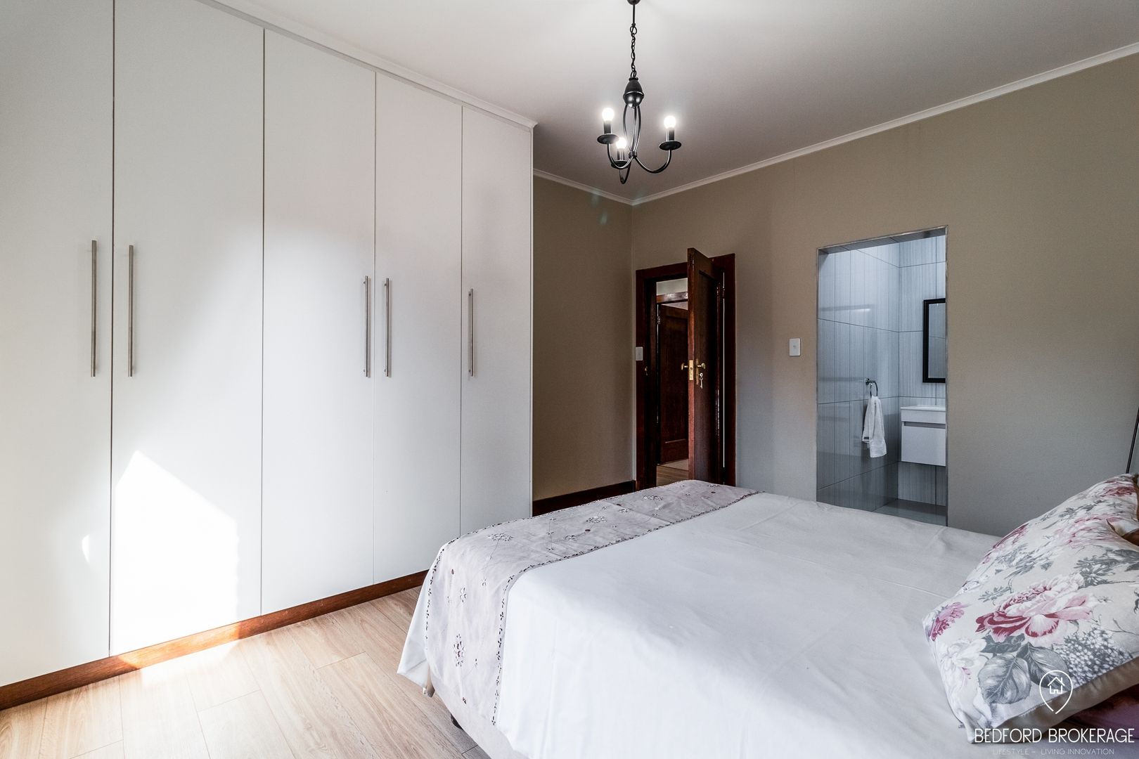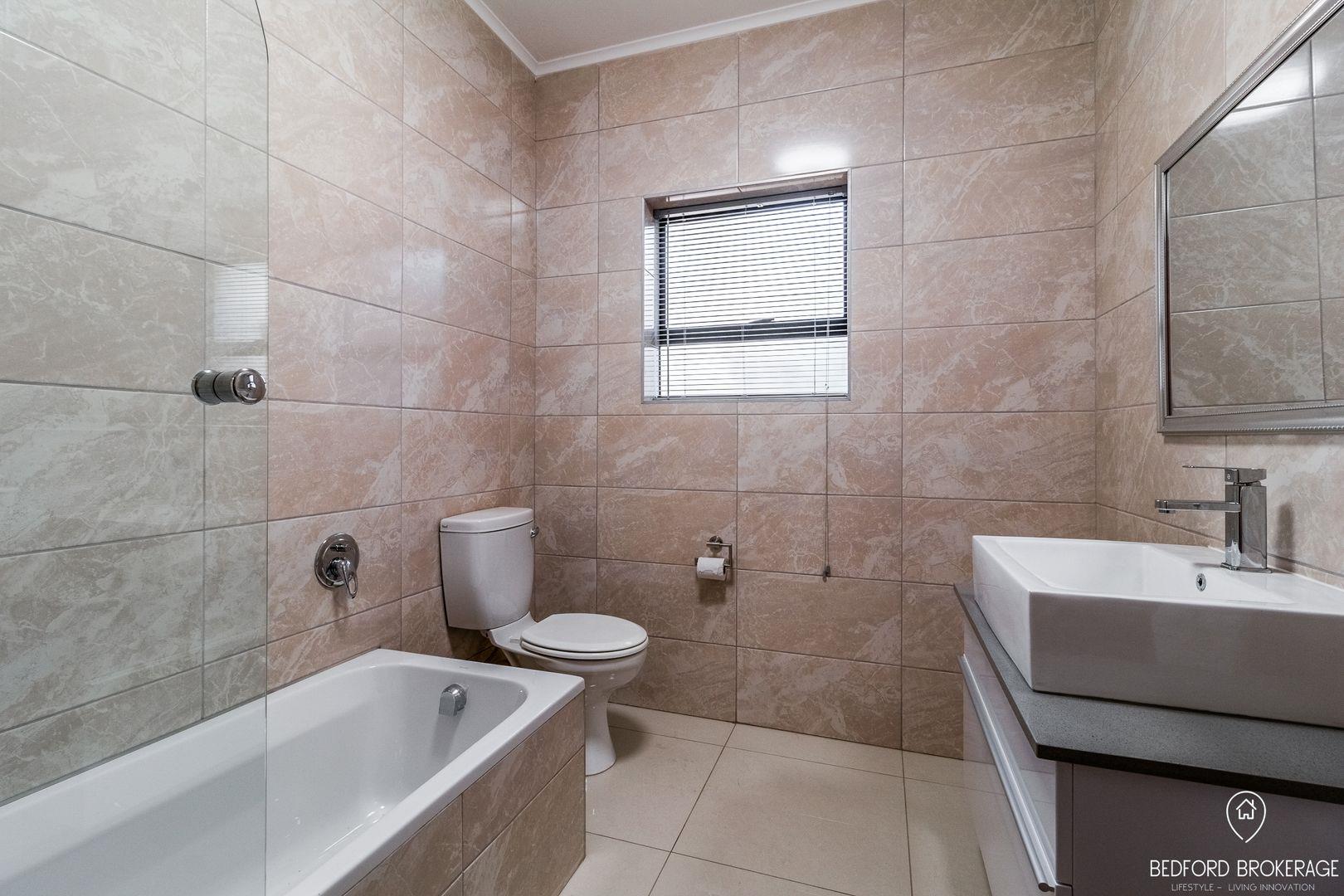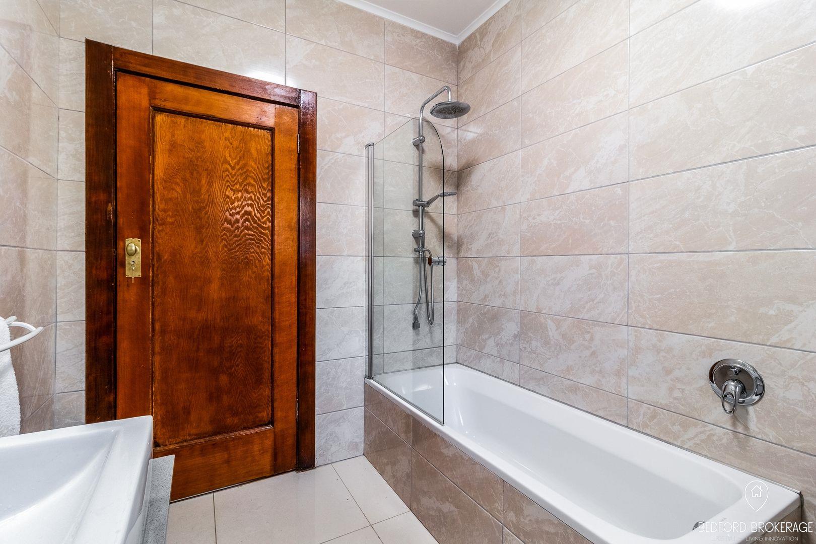 Upstairs, there are linen cupboards and additional storage, along with one en-suite bedroom with a shower. All windows have aluminum frames.