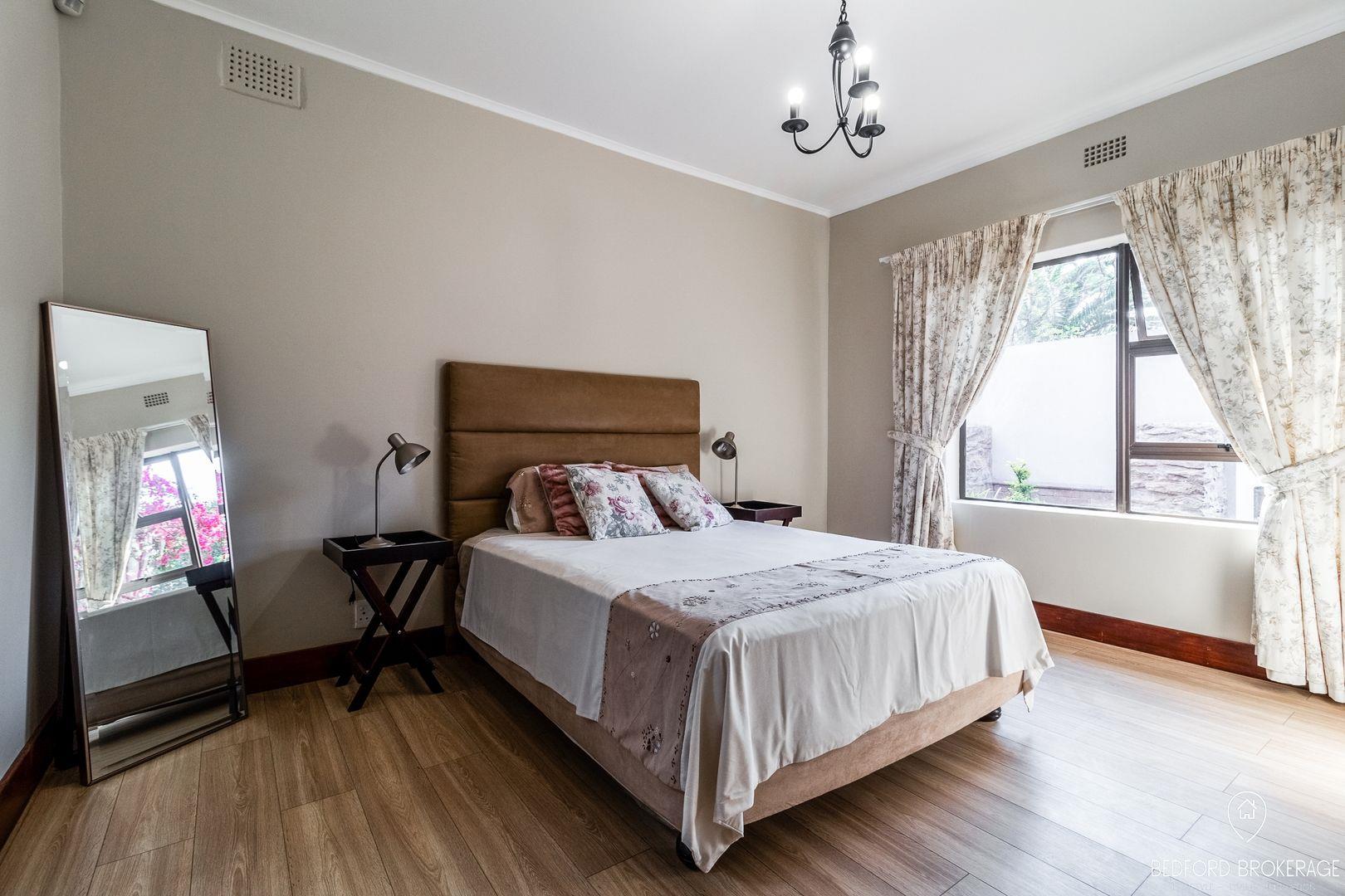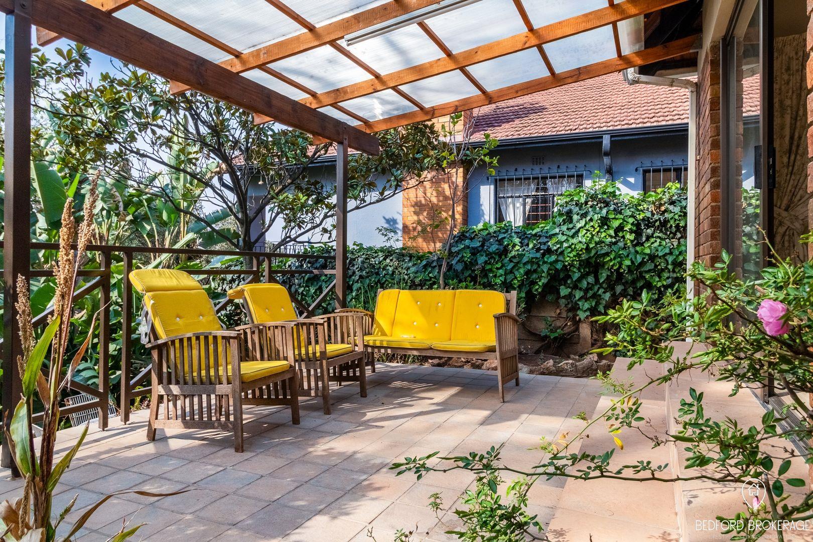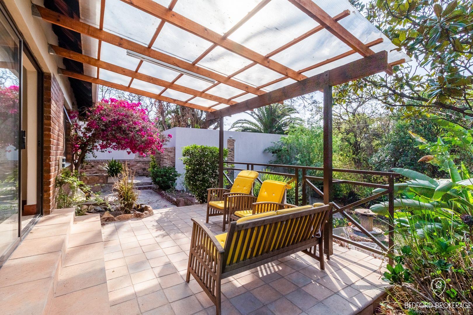 This home includes 3 bedrooms and 3 bathrooms, with 2 en-suite. The entire space boasts newly laminated flooring throughout. The spacious lounge and dining area open onto a tiled, covered patio, leading to a beautiful garden.