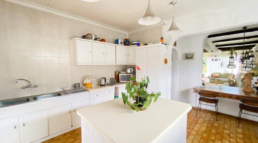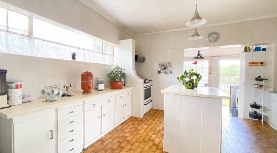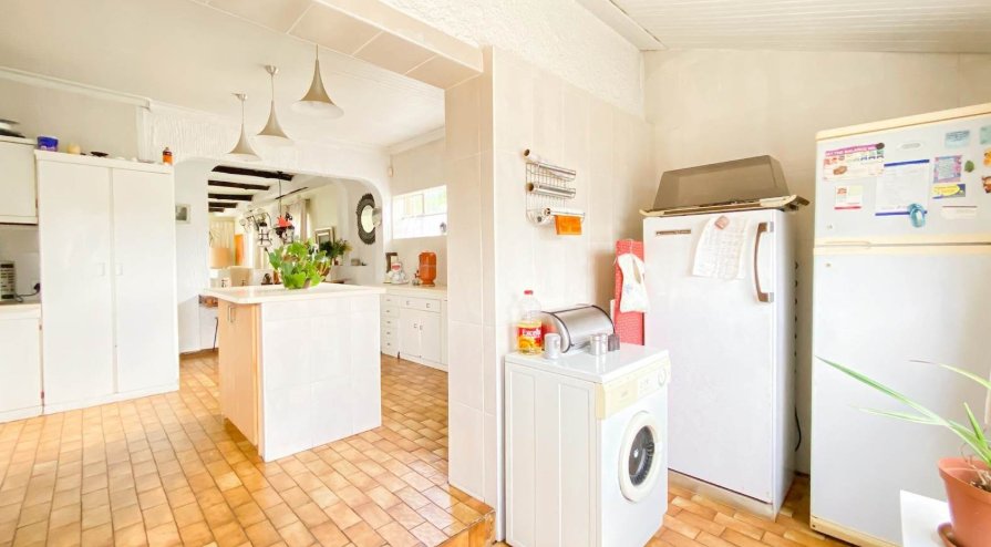Neat Kitchen: A clean and functional kitchen featuring white melamine built-in cupboards!